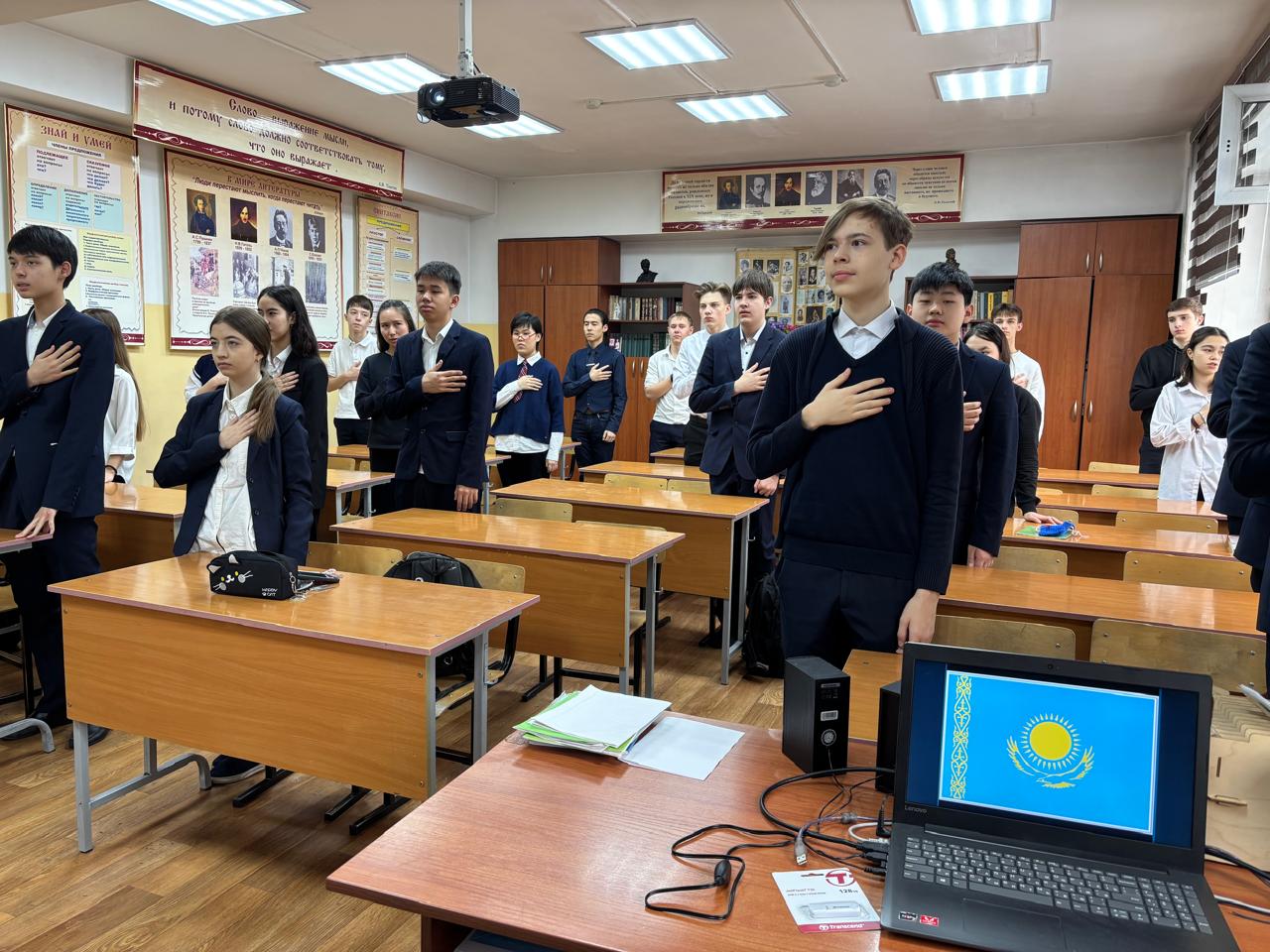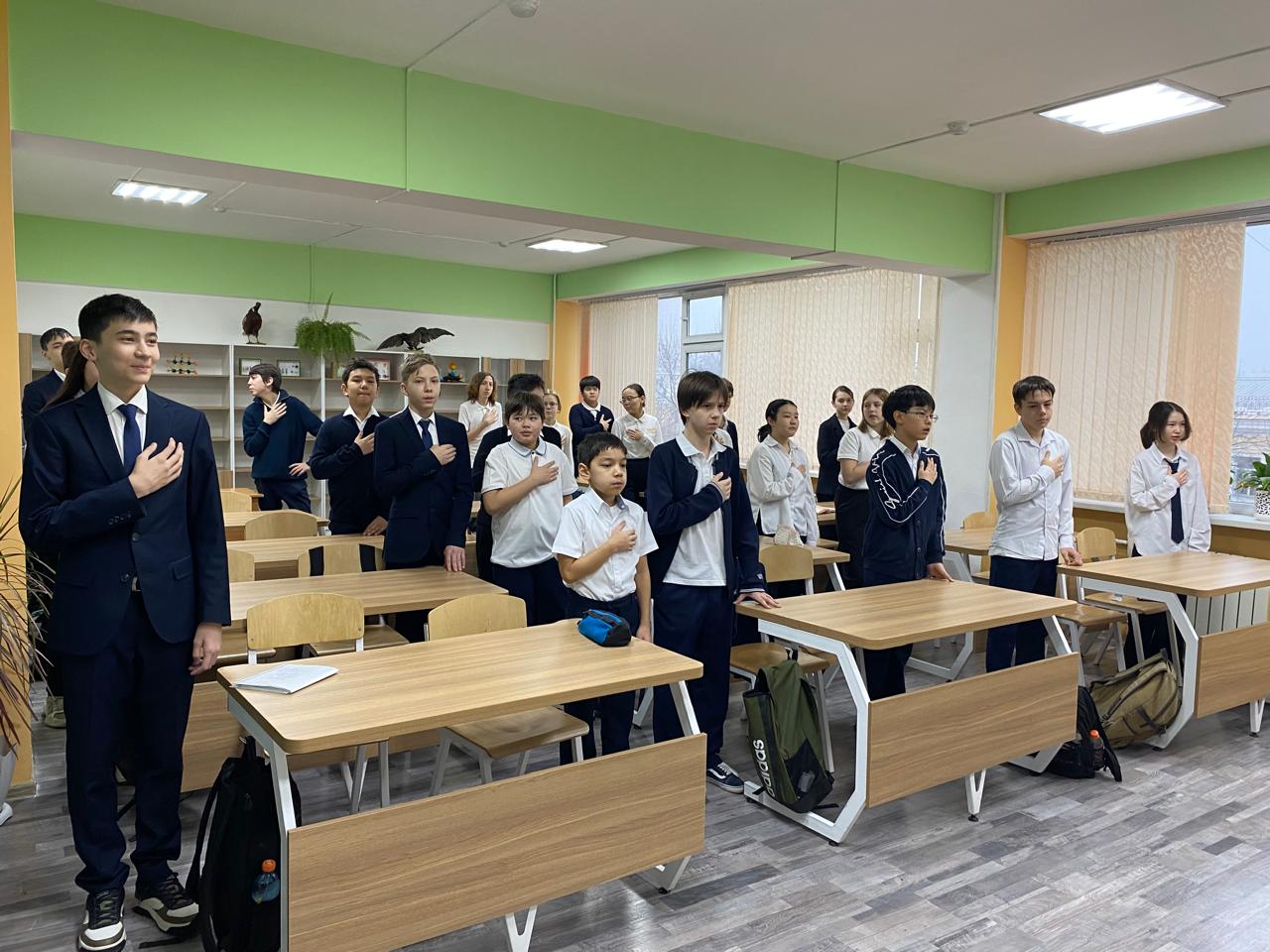 Сегодня на классном часу был спет Гимн Республики Казахстан! Это был момент единства, патриотизма и гордости за нашу страну. Мы верим, что такие моменты помогают нам не только лучше понять культуру и традиции, но и укрепляют дух сообщества. Пусть наш гимн всегда звучит в наших сердцах!