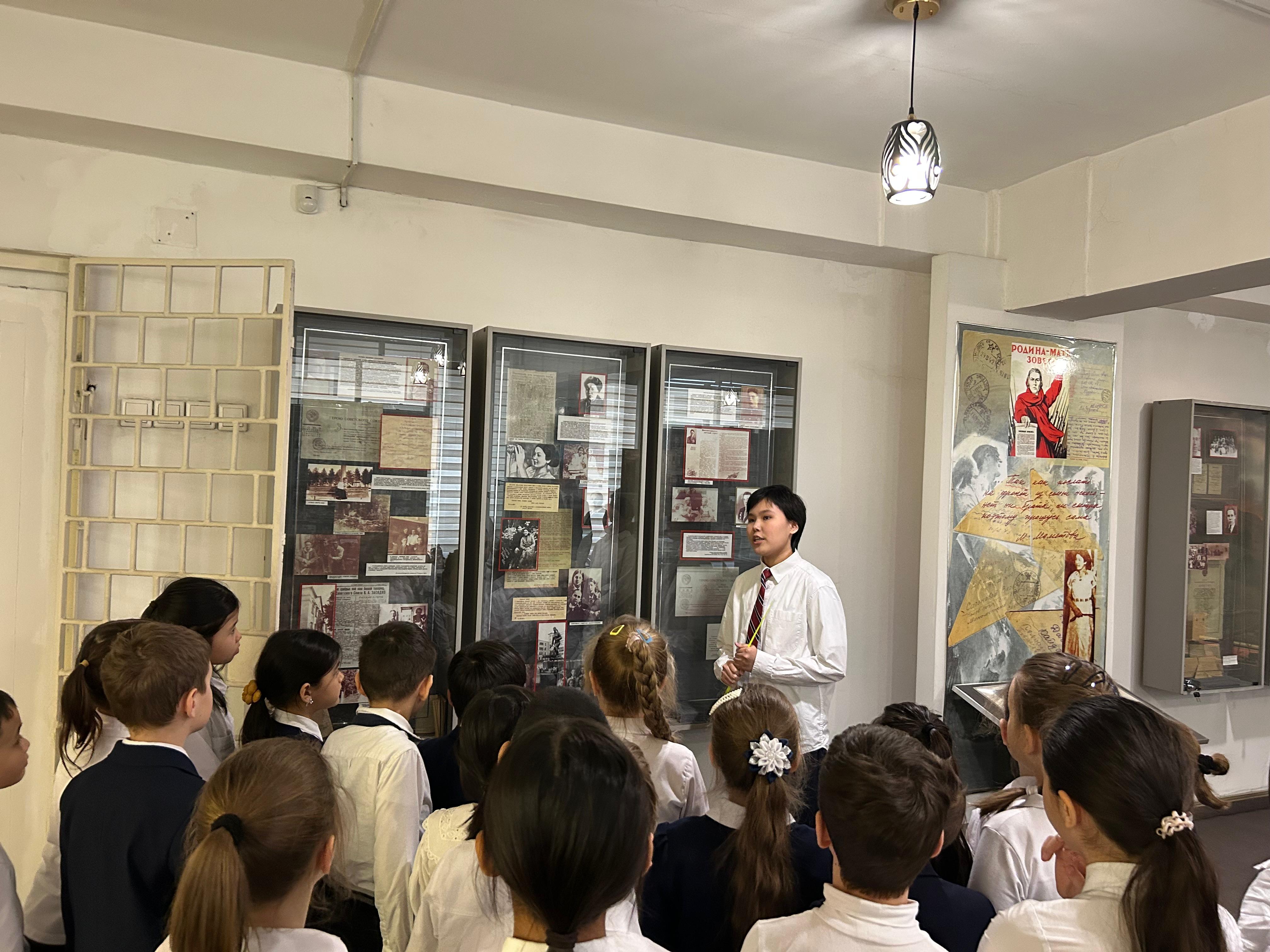 Оқушылар-экскурсия жүргізушілері блокада кезіндегі Ленинград өмірі туралы үлкен ықыласпен баяндап, Ұлы Отан соғысына қатысты экспонаттарды көрсетті. Олар блокаданың символына айналған шағын нан пайкасын да көрнекі түрде көрсетті. Олардың әңгімесінде ленинградтықтардың қайсарлығы туралы әсерлі оқиғалар мен Ладога көлінің мұзымен өткен атақты «Өмір жолы» арқылы қалаға көрсетілген көмек туралы деректер айтылды.