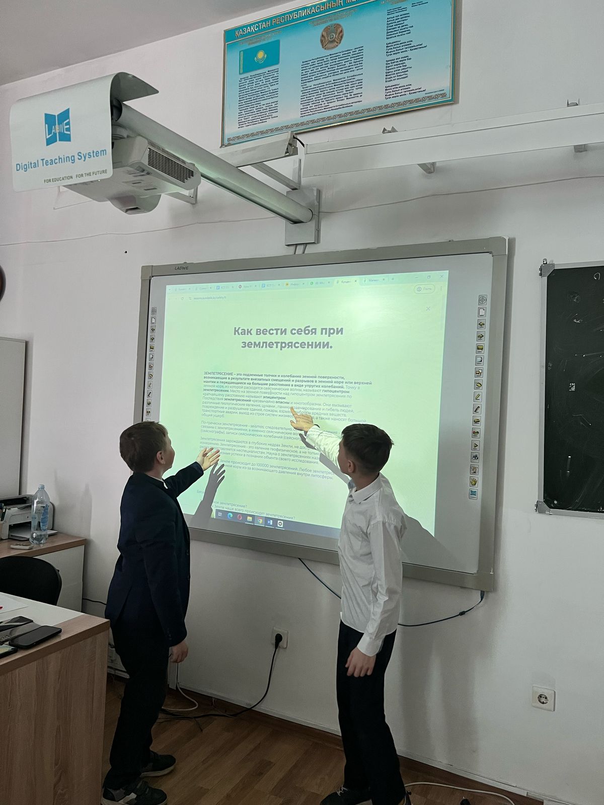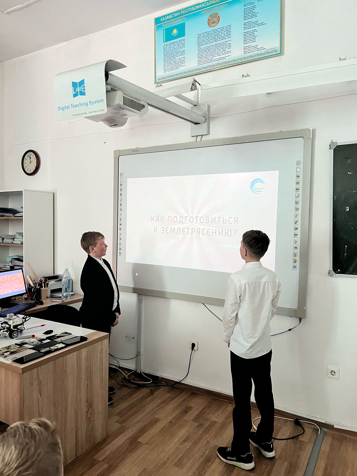 «Біртұтас тәрбие» бағдарламасы аясында 5-9 сынып оқушылары арасында «Көмек» бағдарламасы бойынша «Жер сілкінісі. Қалай дұрыс әрекет ету керек?» тақырыбында сынып сағаты өткізілді. Бұл шара оқушылардың табиғи апаттар, оның ішінде жер сілкінісі туралы хабардарлығын арттыруға, сондай-ақ қауіпсіздік ережелерін меңгеруге және төтенше жағдайларда дұрыс әрекет ету дағдыларын қалыптастыруға бағытталған. Жер сілкінісі сияқты апатты жағдайларда қалай дұрыс әрекет ету керектігін білу тәуекелдерді айтарлықтай төмендетіп, оқушылардың қауіпсіздігін қамтамасыз етеді. В рамках программы «Біртұтас тәрбие» был проведен классный час среди учащихся 5-9 классов на тему по программе "Көмек" «Землетрясение. Как нужно вести себя?». Это мероприятие направлено на повышение осведомленности школьников о природных катастрофах, таких как землетрясение, а также на обучение правилам безопасности и действиям в случае их возникновения. Знание, как правильно реагировать в чрезвычайных ситуациях, таких как землетрясение, может существенно снизить риски и повысить безопасность учащихся.