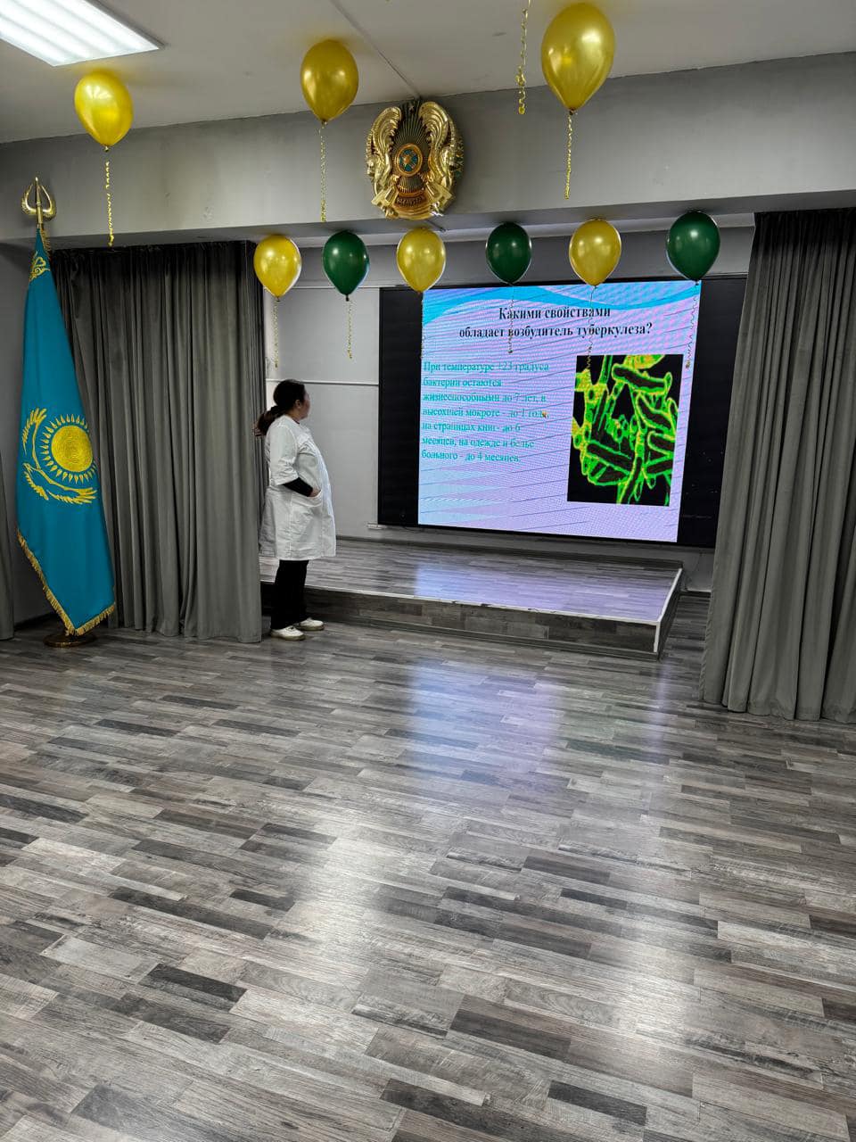 Айнұр Нүрбапақызы оқушыларға туберкулездің белгілері, алдын алу шаралары және бұл аурудың таралуын болдырмауға көмектесетін ережелер туралы айтып берді. Жасөспірімдердің өз денсаулығына дұрыс қарауды үйреніп, қажетті сақтық шараларын сақтауы — аса маңызды.