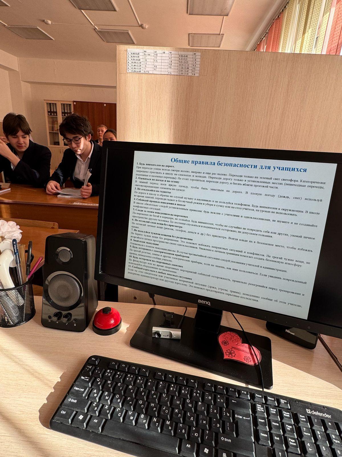 В первый учебный день 4 четверти - 2 апреля 2025г., учителя школы-лицея №28, провели для учащихся урок безопасности «Общие правила безопасности для учащихся». Учителя рассказали учащимся о необходимых мерах предосторожности в разных ситуациях. Рассмотрены основные моменты: осторожность на дороге, необходимость носить одежду по сезону на улице, соблюдать школьную форму установленного образца, не опаздывать на уроки, без причины не пропускать школьные занятия, избегать отвлечений на гаджеты, соблюдать дисциплину в школе и на переменах, а также следить за своими вещами и уважать чужие. Особое внимание уделено безопасности на спортивных занятиях, правильному использованию электрических приборов и знанию плана эвакуации. Эти правила помогут учащимся не только быть более внимательными и осторожными, но и создавать безопасную атмосферу в школе и на улице.