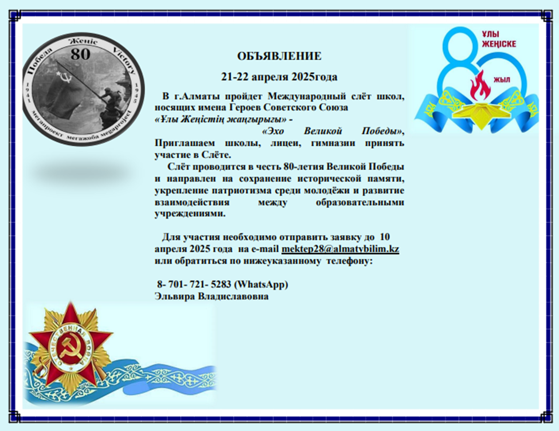 06 сәуір 2025 0 1 2 3 4 5 Международный слёт школ, носящих имена Героев Советского Союза «Ұлы Жеңістің жаңғырығы» - «Эхо Великой Победы»