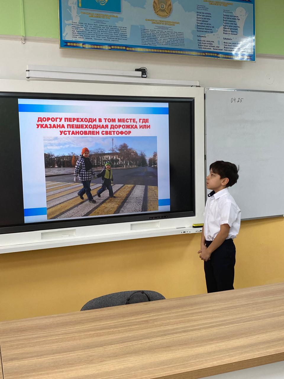 1-4 сынып оқушыларымен «Мектепке қауіпсіз маршрут» тақырыбы талқыланды. Балалар жолды қалай дұрыс өту керектігін, әрбір жаяу жүргінші білуі тиіс белгілер мен сигналдарды меңгерді, осылайша мектепке барар жолдары қауіпсіз әрі тыныш болатынына сенімді болды.