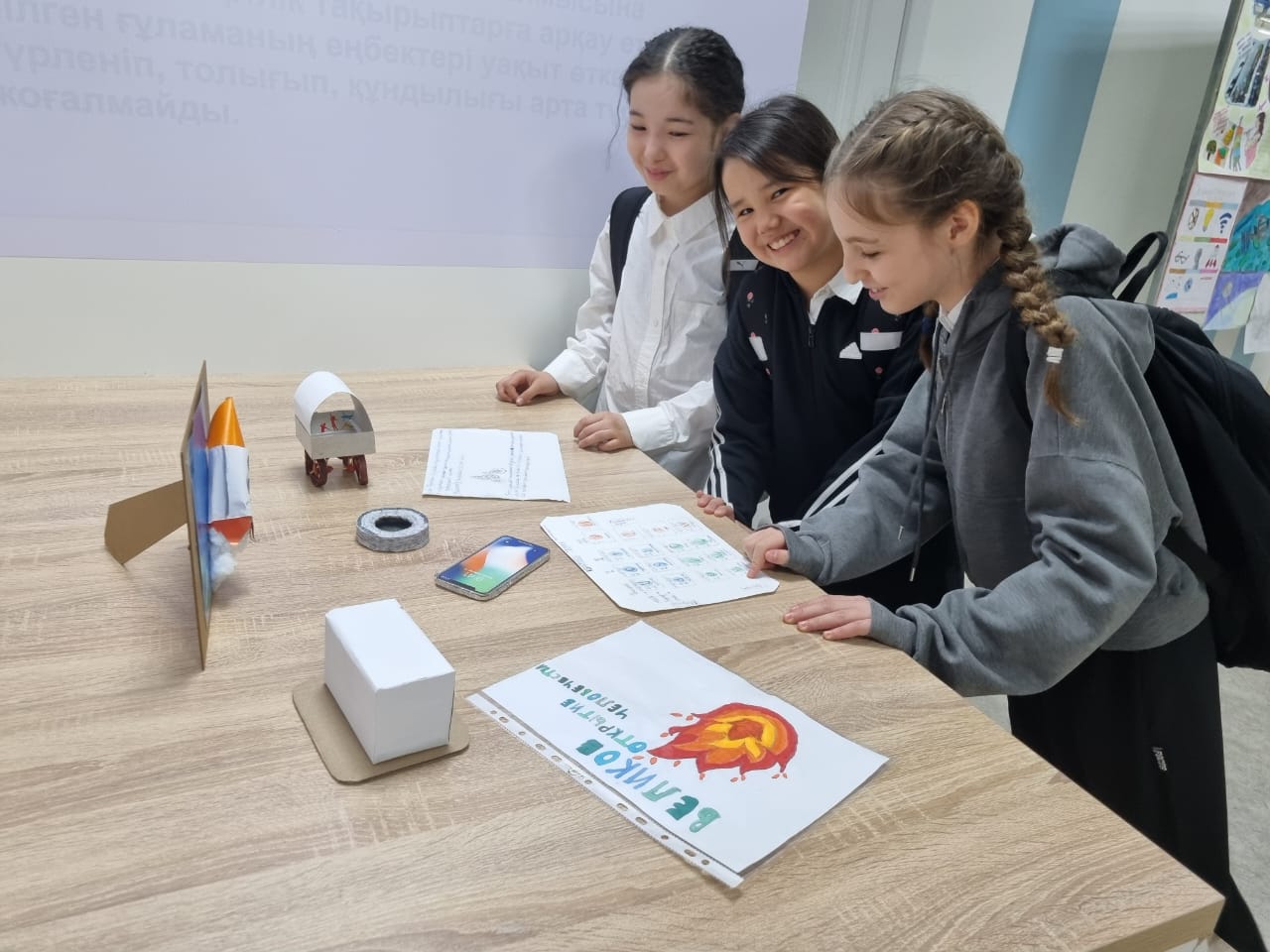 Көрме оқушылар мен ұстаздардың қызығушылығын тудырып, ғылыми прогресс арқылы уақыт кеңістігіне визуалды саяхатқа айналды.