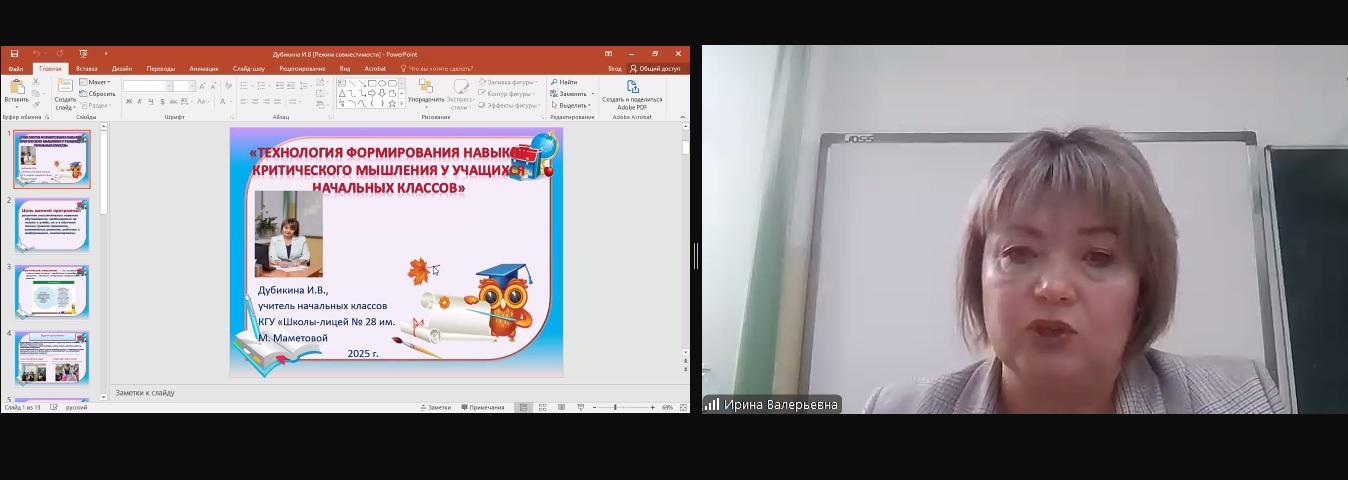 Дубикина И.В. — бастауыш сынып мұғалімі, «Бастауыш сынып оқушыларының сыни ойлау дағдыларын қалыптастыру технологиясы»;