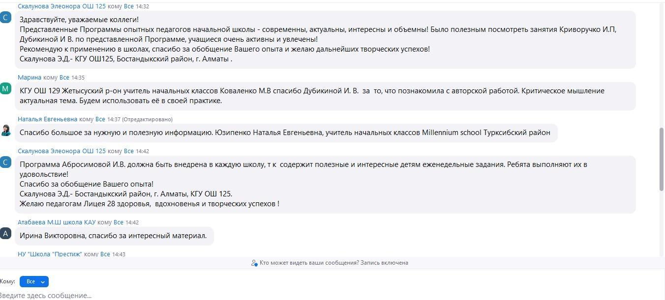 Қала деңгейіндегі озық педагогикалық тәжірибені таратуға үлес қосқан әріптестерімізге алғыс айтамыз! Сіздің авторлық бағдарламаларыңызды практикада қолданатын боламыз!