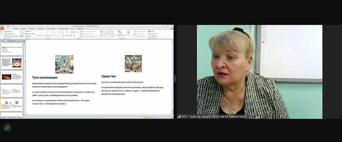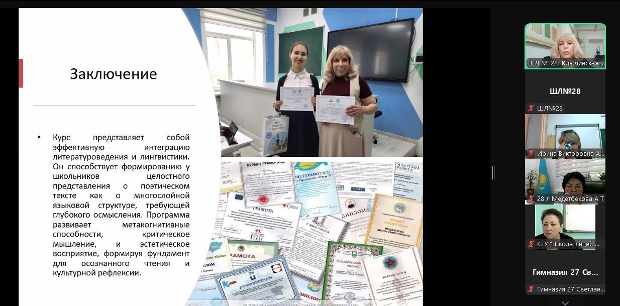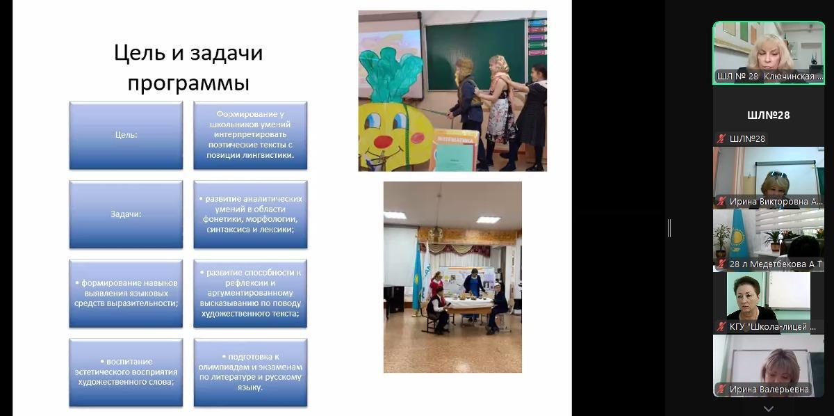 Қазақстан Республикасы мұғалімдерін аттестациялау ережелері мен шарттары аясында 2025 жылғы 23 сәуірде М.Мәметова атындағы №28 мектеп-лицейінің мұғалімдерінің авторлық бағдарламалары негізінде тәжірибе трансляциясы бойынша Республикалық онлайн-конференция өтті.