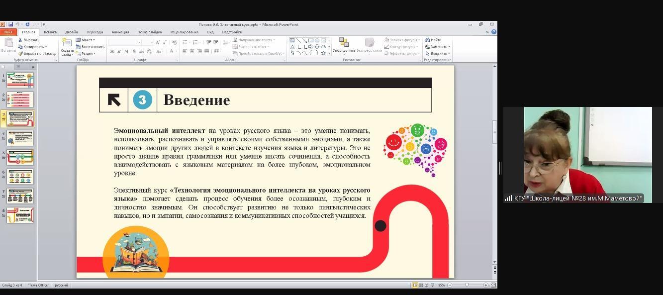 Попова Э.Л. — орыс тілі мен әдебиеті мұғалімі, «Орыс тілі сабақтарында эмоциялық интеллект технологиясы».