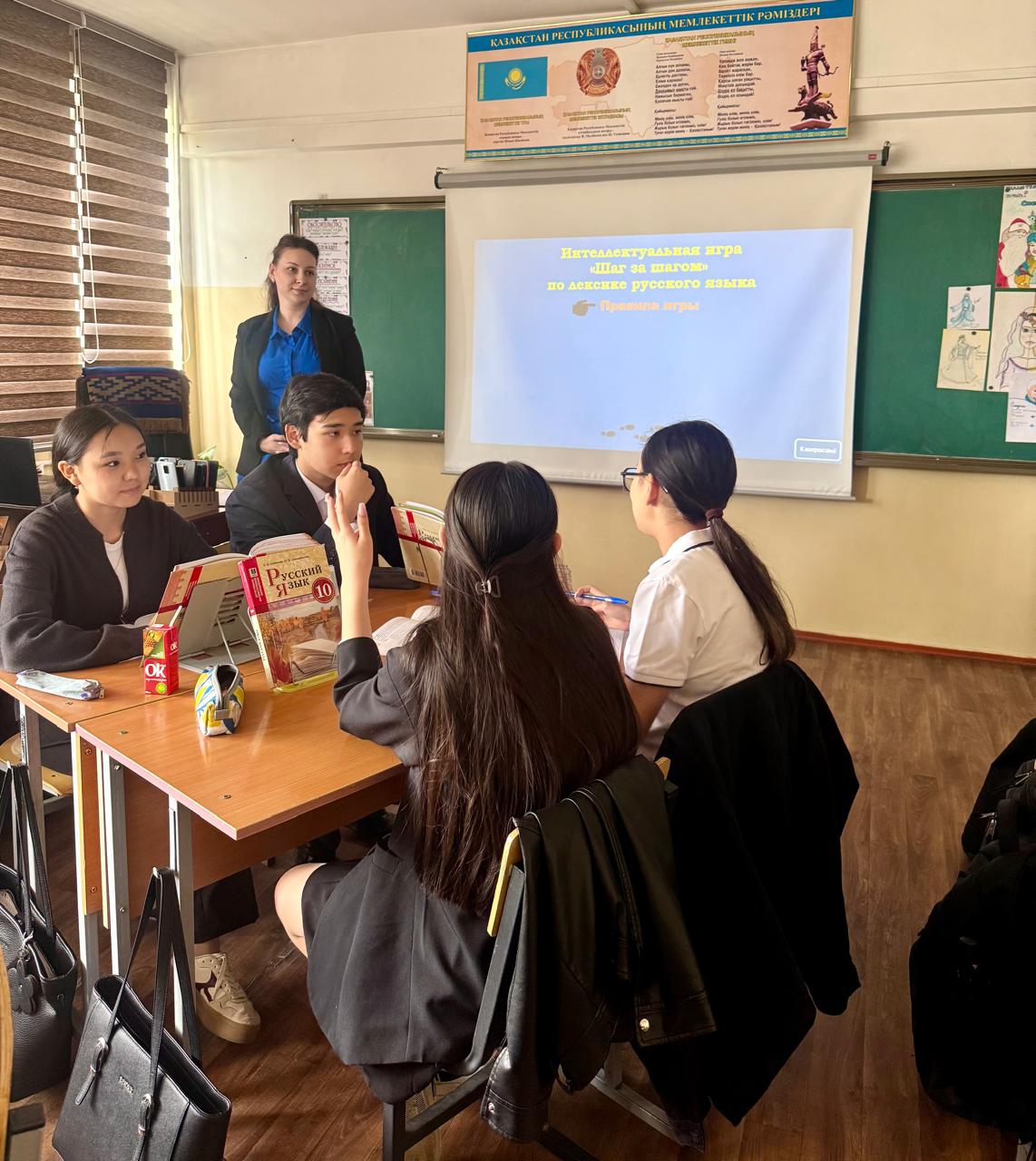 Бұл танымдық ойын орыс тілі лексикасына арналды және жоғары сынып оқушыларының эрудициясын, логикалық ойлауын және тілдік сезімін сынақтан өткізді.