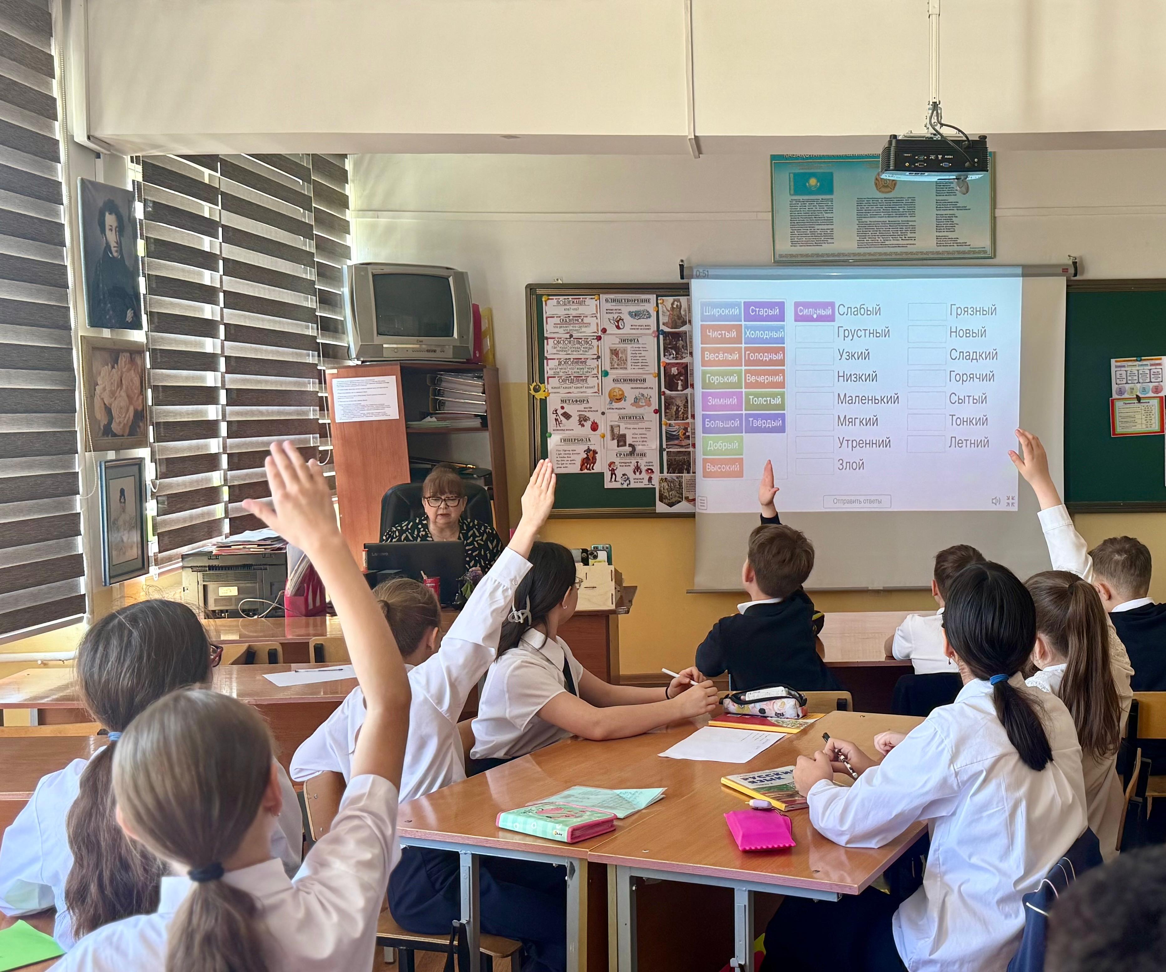 Урок начался с динамичной разминки, которая помогла учащимся быстро включиться в рабочий процесс. Ребята с энтузиазмом подбирали антонимы к словам, демонстрируя знание лексики, а также продолжали пословицы, добавляя глаголы с частицей «не», что позволило актуализировать грамматические знания и творческое мышление.