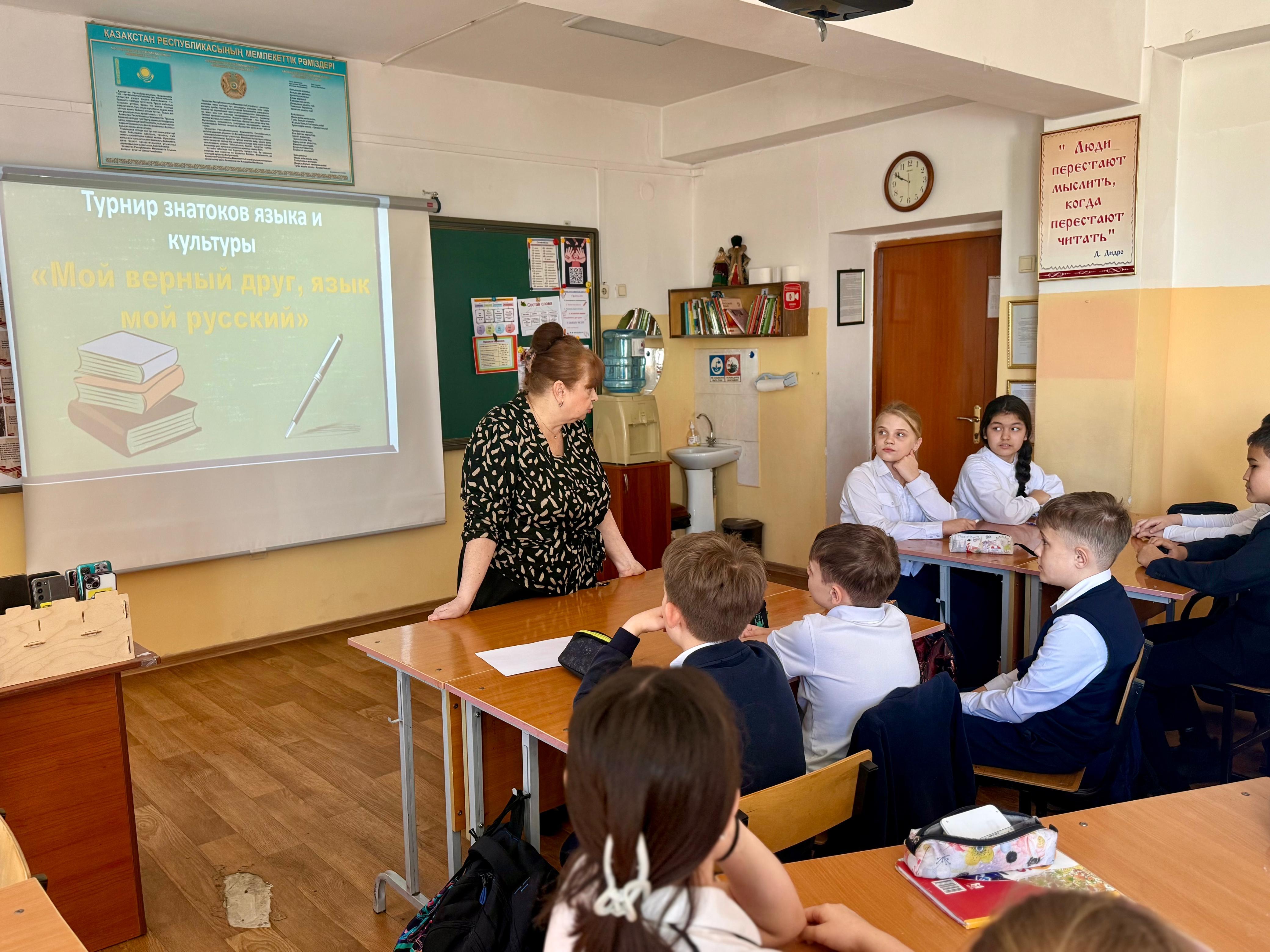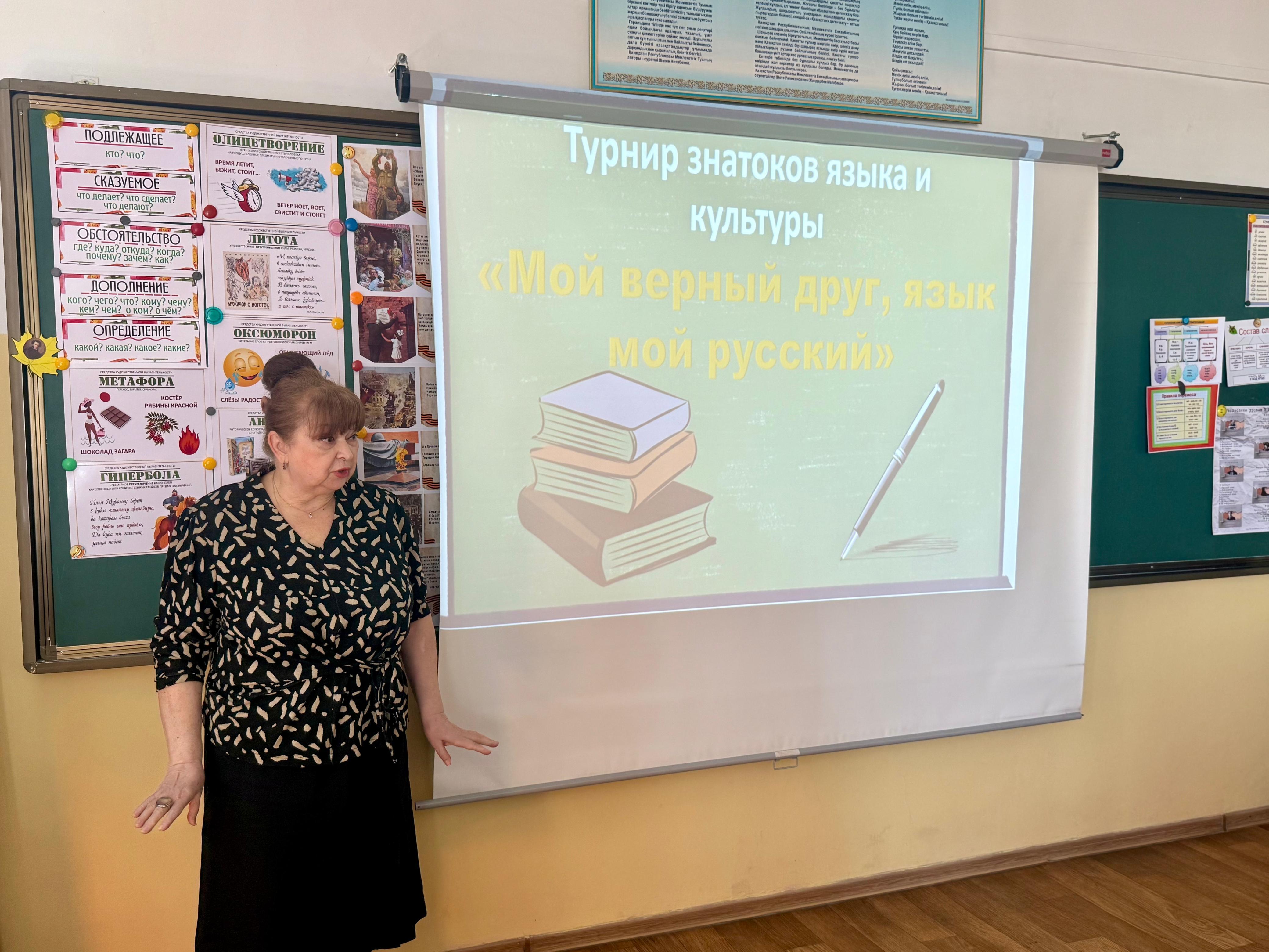 В рамках Декады Науки и Творчества 25 апреля 2025 года, учитель русского языка и литературы – Попова Элла Алексеевна, провела для учащихся 5-х классов турнир знатоков языка и культуры: «Мой верный друг, язык мой русский». Мероприятие было направлено на развитие интереса к языку, углубление знаний и формирование устойчивой мотивации к изучению культуры речи.