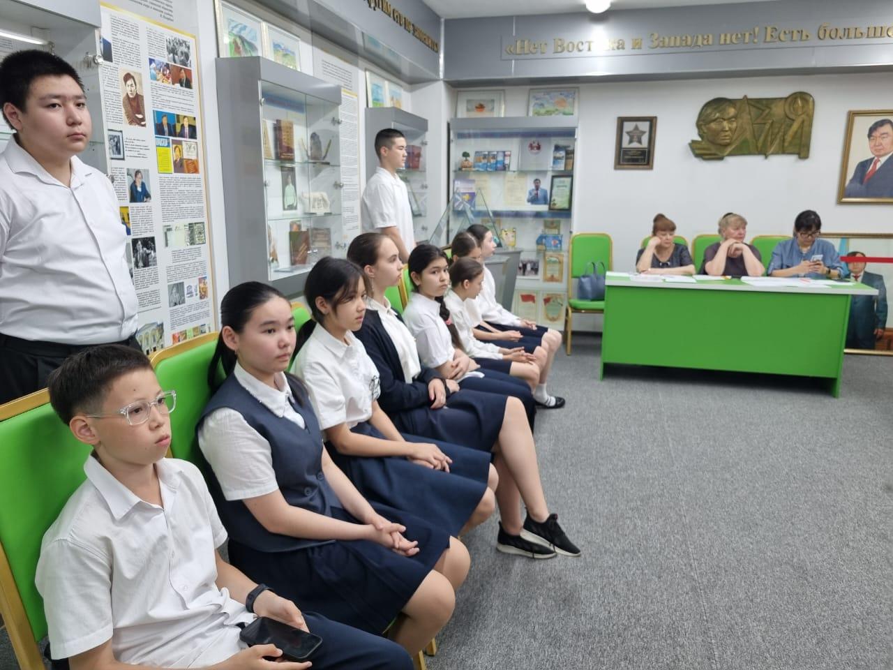 «Олжас Сүлейменов және бейнелеу өнері» бағыты бойынша ақын өмірі мен шығармашылығының маңызды кезеңдерін бейнелейтін шығармашылық сурет жұмыстары ұсынылды.