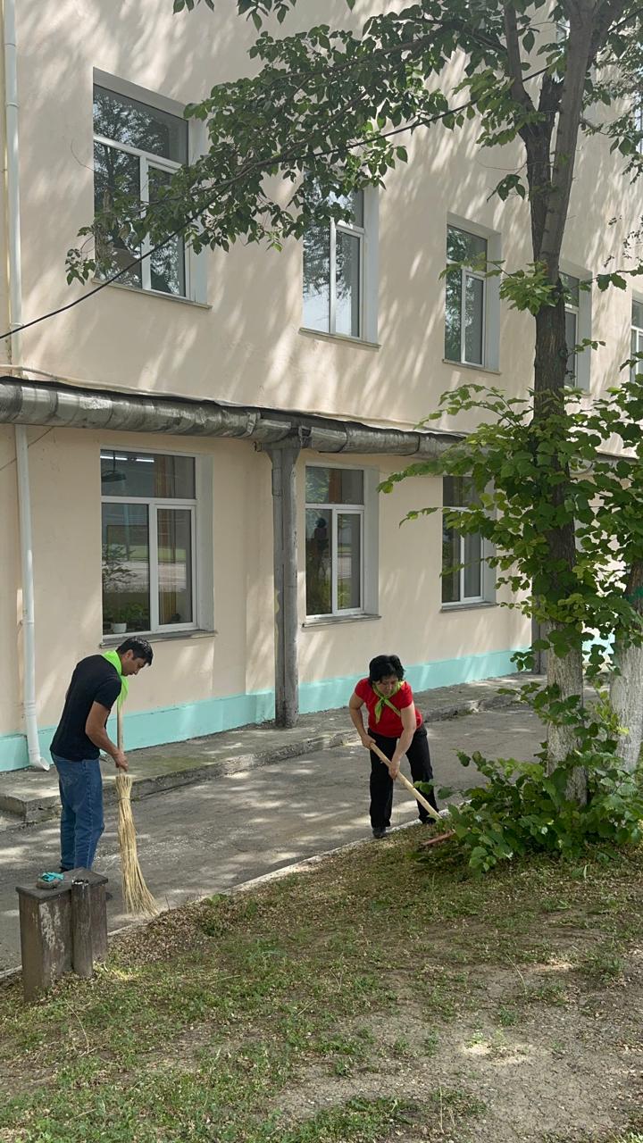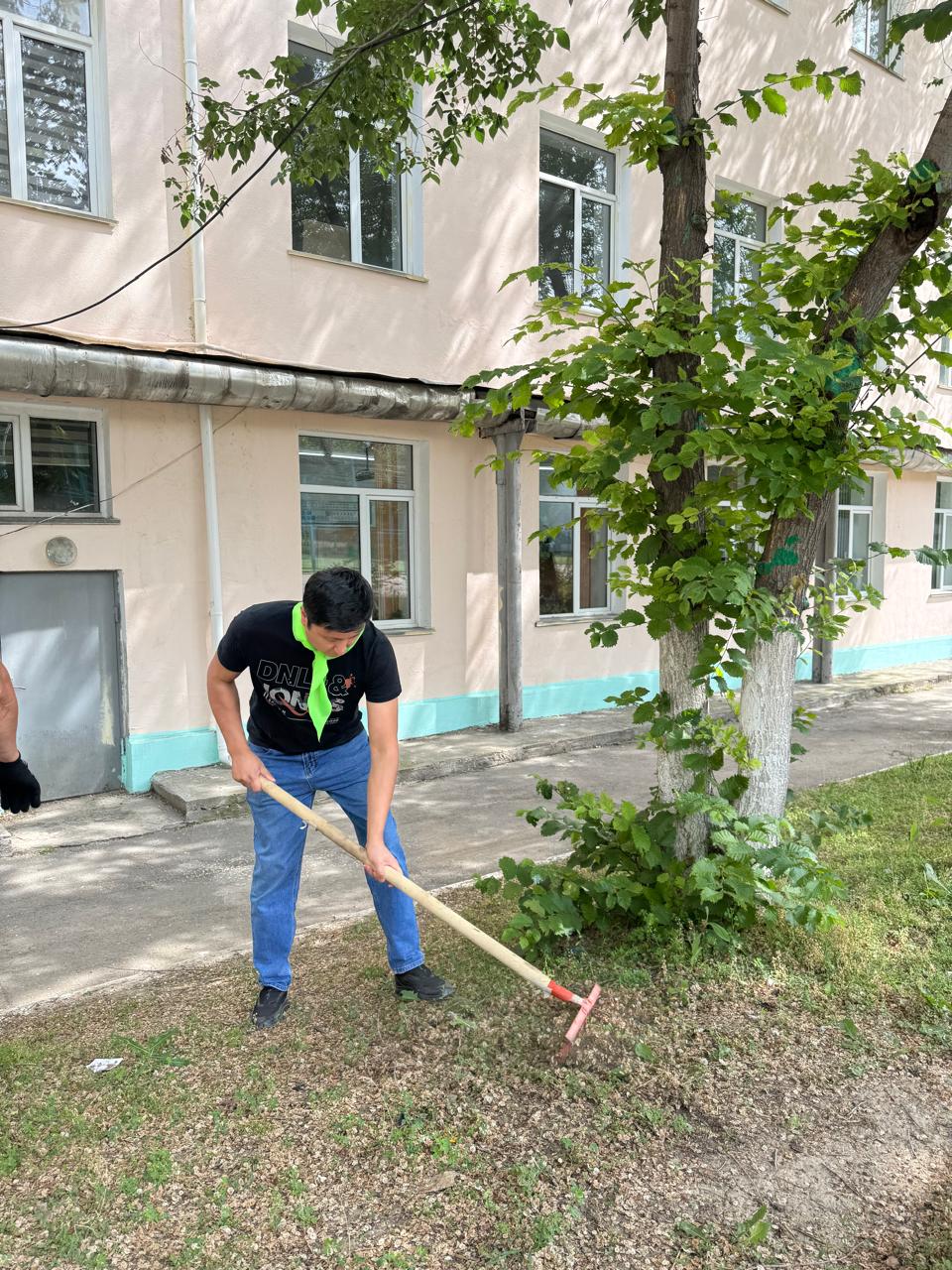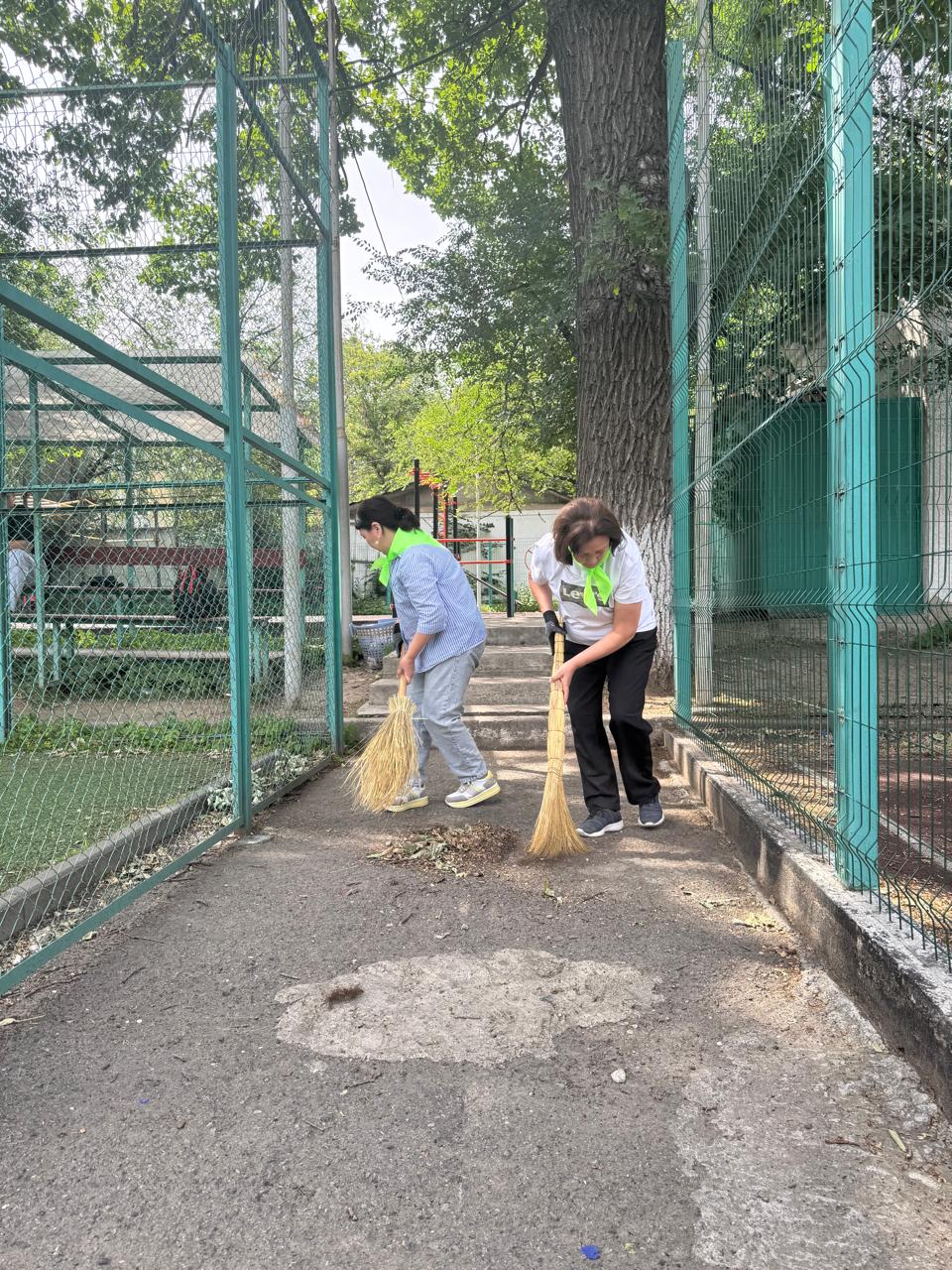 Жалпы күшпен мектеп ауласы тазартылып, жасыл аймақтар ретке келтірілді, қоқыстар жиналды.