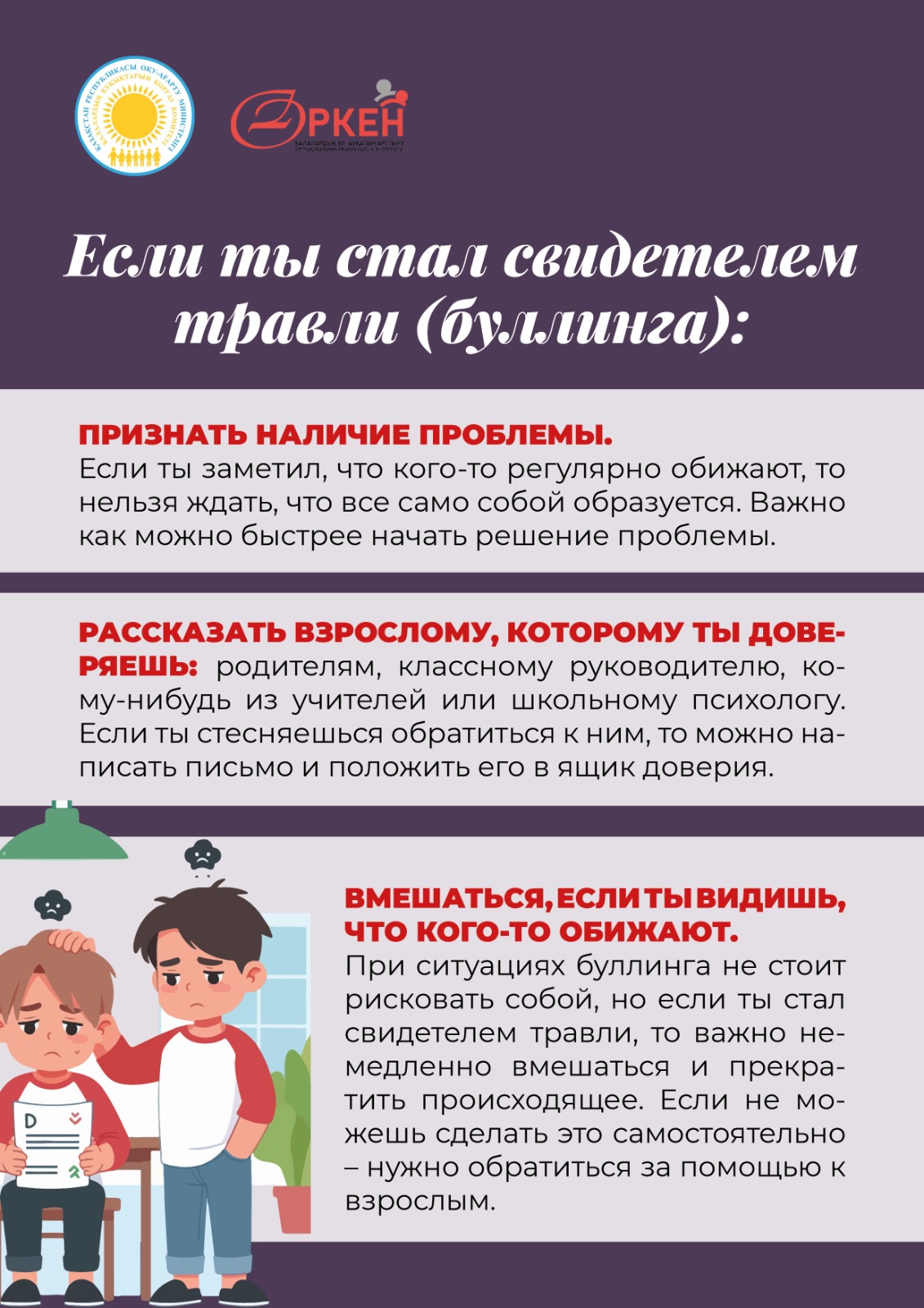 балалар мен жасөспірімдер арасындағы буллингтің алдын алу;