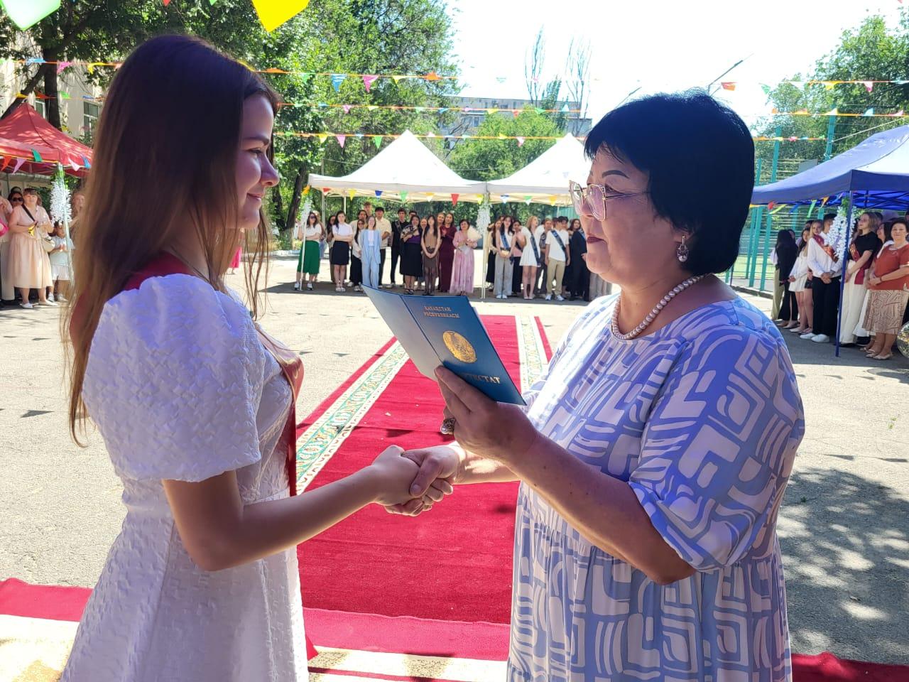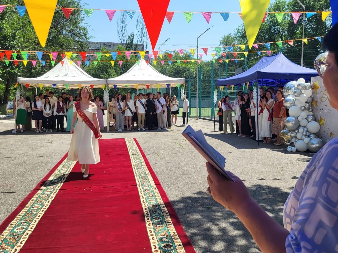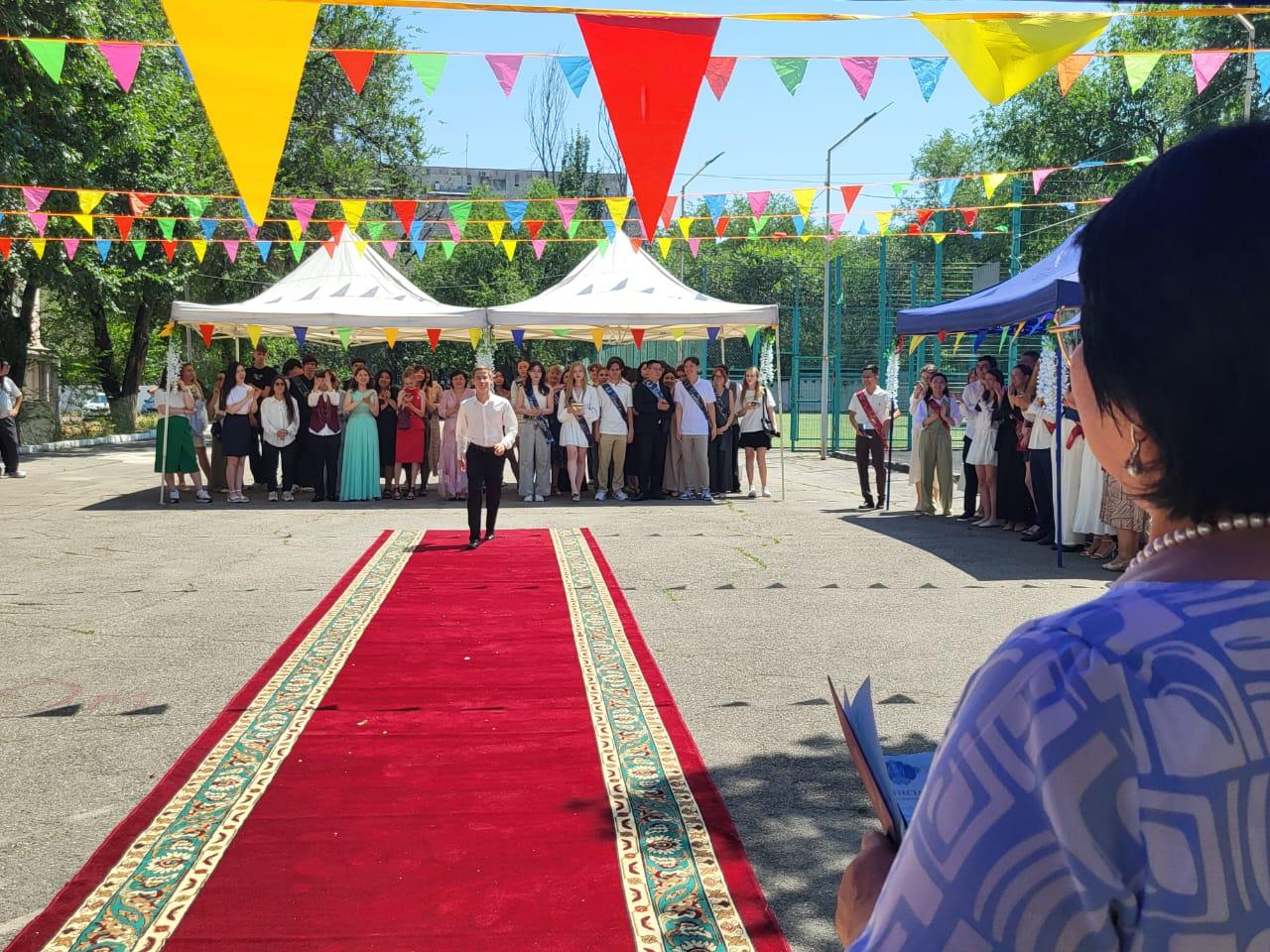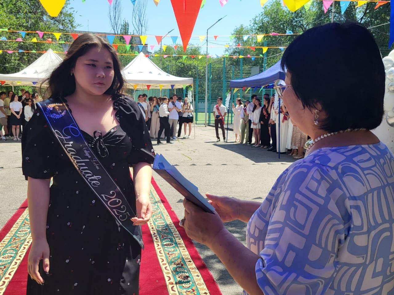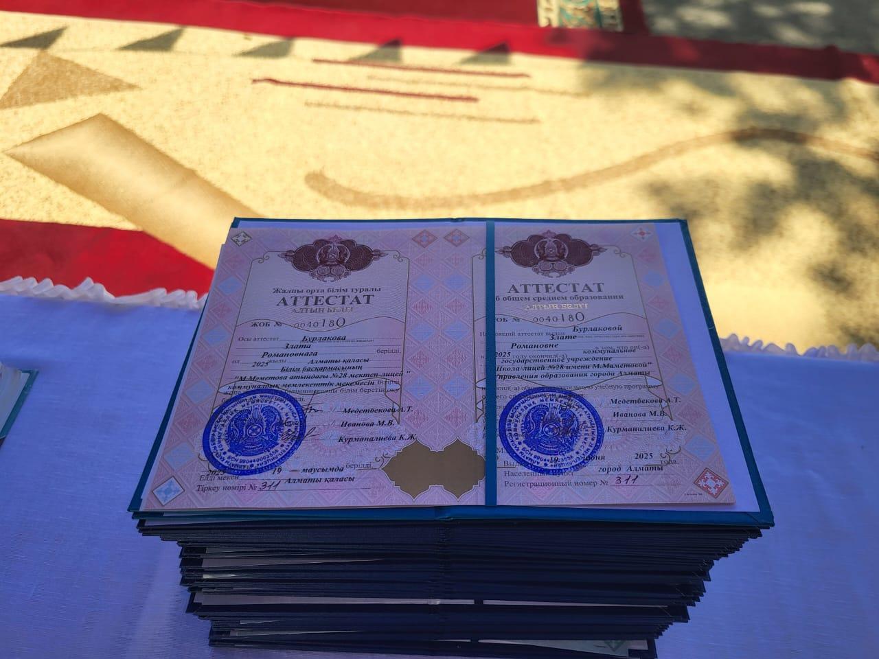 19 июня 2025 года в КГУ «Школа-лицей №28 им.М.Маметовой» состоялось торжественное мероприятие, посвящённое вручению аттестатов выпускникам 2025 года. Этот день – итог огромного пути, наполненного знаниями, трудами, победами и открытиями. Мы с гордостью провожаем наших учеников в новую, взрослую жизнь. Позади школьные годы, впереди – большие мечты, университеты, профессии и новые горизонты! С поздравительным словом к выпускникам обратилась директор Медетбекова А.Т.: «Құрметті мектеп бітіруші түлектер, қадірлі ата-аналар, ұстаздар, қонақтар! Бүгін ерекше салтанатты күн! Сіздерді үлкен өмірге шығарып салғалы отырмыз. Сегодня – особенный день, торжественный и волнительный. Мы провожаем в большую, самостоятельную жизнь наших выпускников – сильных, умных, талантливых и уже таких взрослых. Этот день – не просто итог ещё одного учебного года. Это завершение важного этапа в жизни каждого из вас, дорогие выпускники. За плечами — годы, наполненные трудами, открытиями, победами и, конечно, поддержкой близких. Мы вместе с вами проходили через трудности и радовались успехам. И сегодня вы стоите здесь — уверенные, с горящими глазами, готовые к новому пути. Позади осталась школьная пора – время, когда вы учились не только математике, физике и литературе, но и дружбе, взаимопомощи, ответственности.