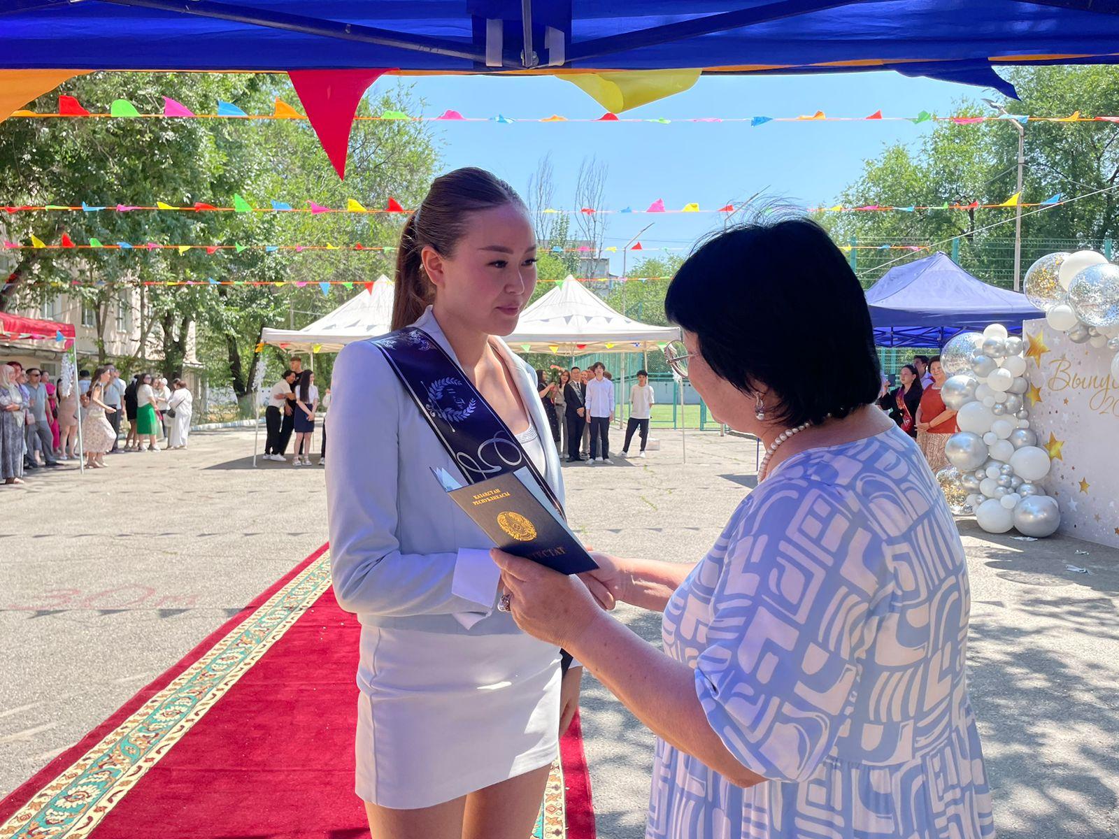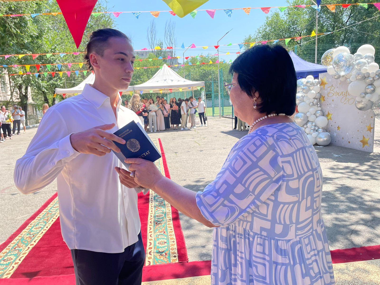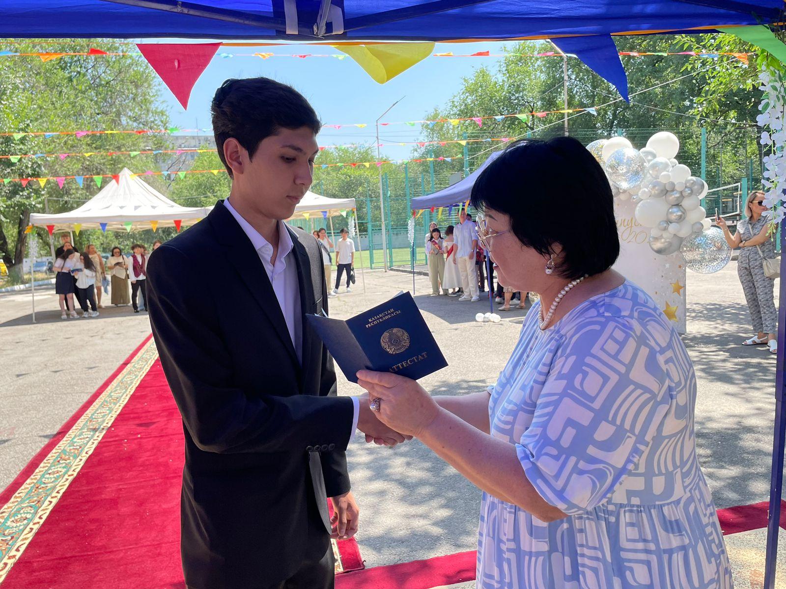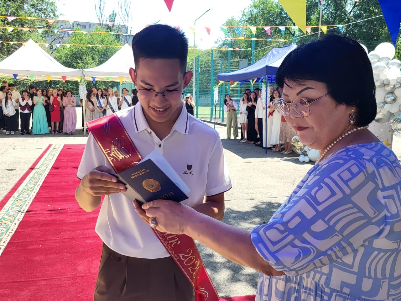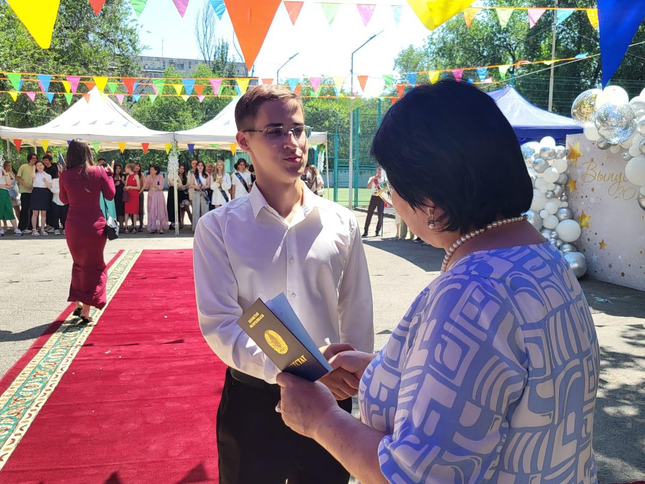 19 июня 2025 года в КГУ «Школа-лицей №28 им.М.Маметовой» состоялось торжественное мероприятие, посвящённое вручению аттестатов выпускникам 2025 года. Этот день – итог огромного пути, наполненного знаниями, трудами, победами и открытиями. Мы с гордостью провожаем наших учеников в новую, взрослую жизнь. Позади школьные годы, впереди – большие мечты, университеты, профессии и новые горизонты! С поздравительным словом к выпускникам обратилась директор Медетбекова А.Т.: «Құрметті мектеп бітіруші түлектер, қадірлі ата-аналар, ұстаздар, қонақтар! Бүгін ерекше салтанатты күн! Сіздерді үлкен өмірге шығарып салғалы отырмыз. Сегодня – особенный день, торжественный и волнительный. Мы провожаем в большую, самостоятельную жизнь наших выпускников – сильных, умных, талантливых и уже таких взрослых. Этот день – не просто итог ещё одного учебного года. Это завершение важного этапа в жизни каждого из вас, дорогие выпускники. За плечами — годы, наполненные трудами, открытиями, победами и, конечно, поддержкой близких. Мы вместе с вами проходили через трудности и радовались успехам. И сегодня вы стоите здесь — уверенные, с горящими глазами, готовые к новому пути. Позади осталась школьная пора – время, когда вы учились не только математике, физике и литературе, но и дружбе, взаимопомощи, ответственности.