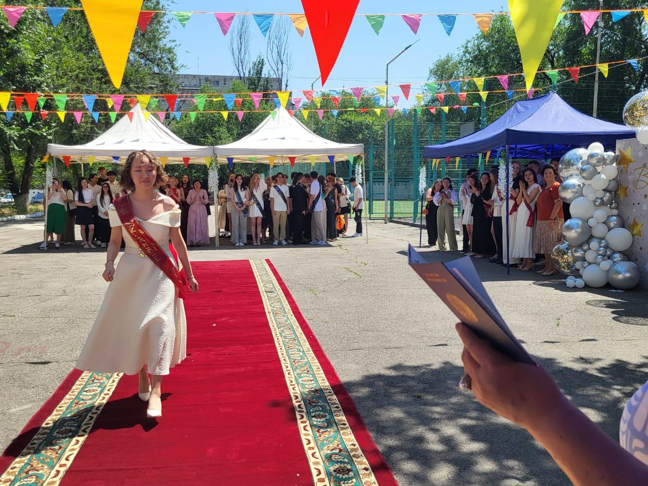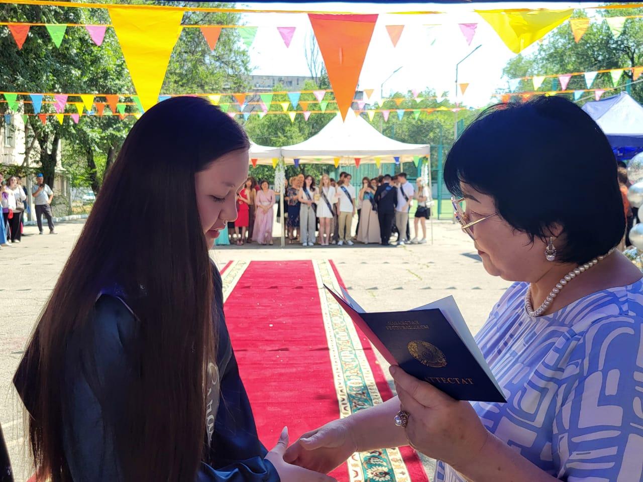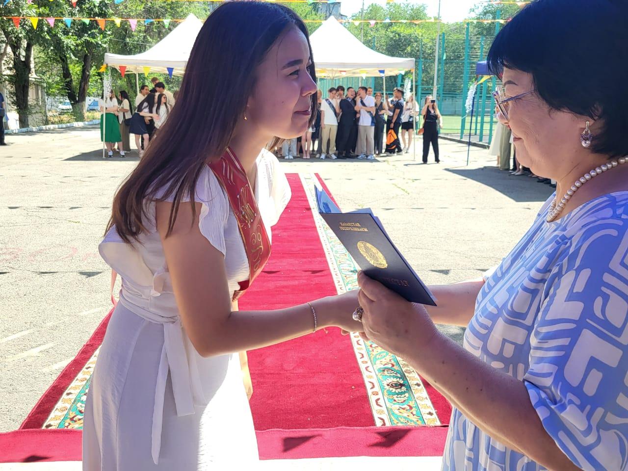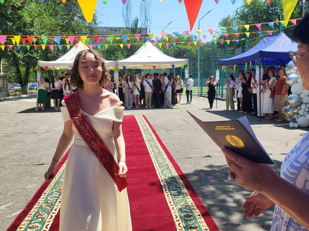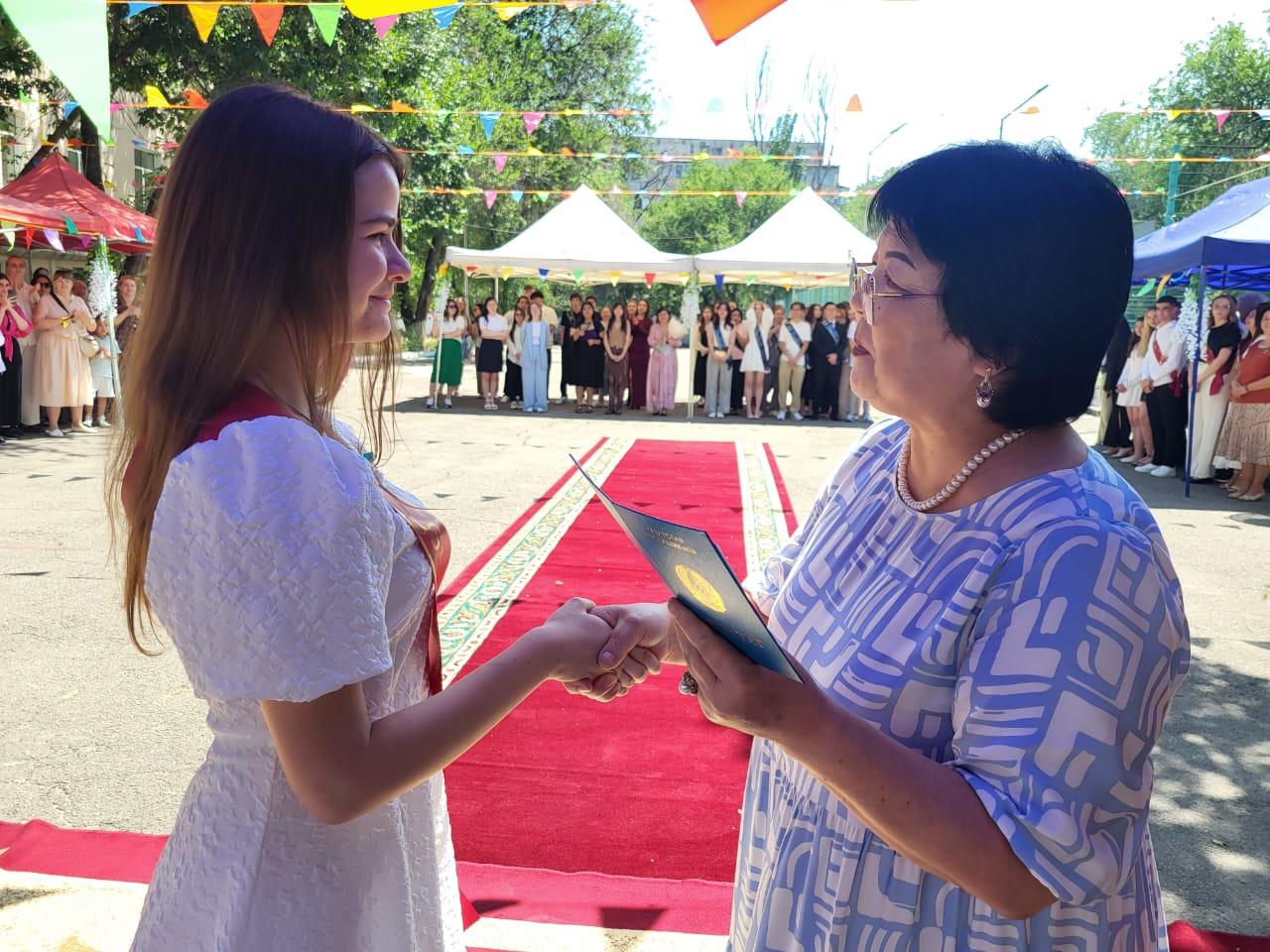 19 июня 2025 года в КГУ «Школа-лицей №28 им.М.Маметовой» состоялось торжественное мероприятие, посвящённое вручению аттестатов выпускникам 2025 года. Этот день – итог огромного пути, наполненного знаниями, трудами, победами и открытиями. Мы с гордостью провожаем наших учеников в новую, взрослую жизнь. Позади школьные годы, впереди – большие мечты, университеты, профессии и новые горизонты! С поздравительным словом к выпускникам обратилась директор Медетбекова А.Т.: «Құрметті мектеп бітіруші түлектер, қадірлі ата-аналар, ұстаздар, қонақтар! Бүгін ерекше салтанатты күн! Сіздерді үлкен өмірге шығарып салғалы отырмыз. Сегодня – особенный день, торжественный и волнительный. Мы провожаем в большую, самостоятельную жизнь наших выпускников – сильных, умных, талантливых и уже таких взрослых. Этот день – не просто итог ещё одного учебного года. Это завершение важного этапа в жизни каждого из вас, дорогие выпускники. За плечами — годы, наполненные трудами, открытиями, победами и, конечно, поддержкой близких. Мы вместе с вами проходили через трудности и радовались успехам. И сегодня вы стоите здесь — уверенные, с горящими глазами, готовые к новому пути. Позади осталась школьная пора – время, когда вы учились не только математике, физике и литературе, но и дружбе, взаимопомощи, ответственности.