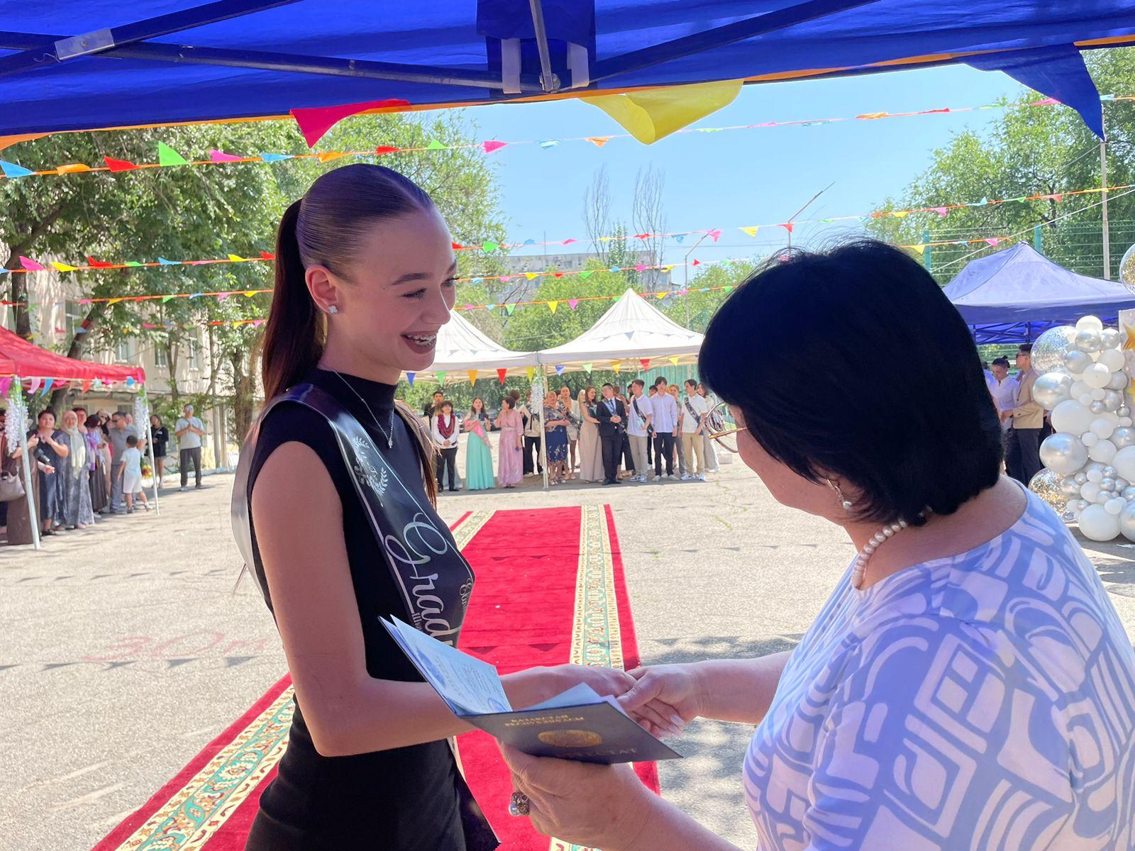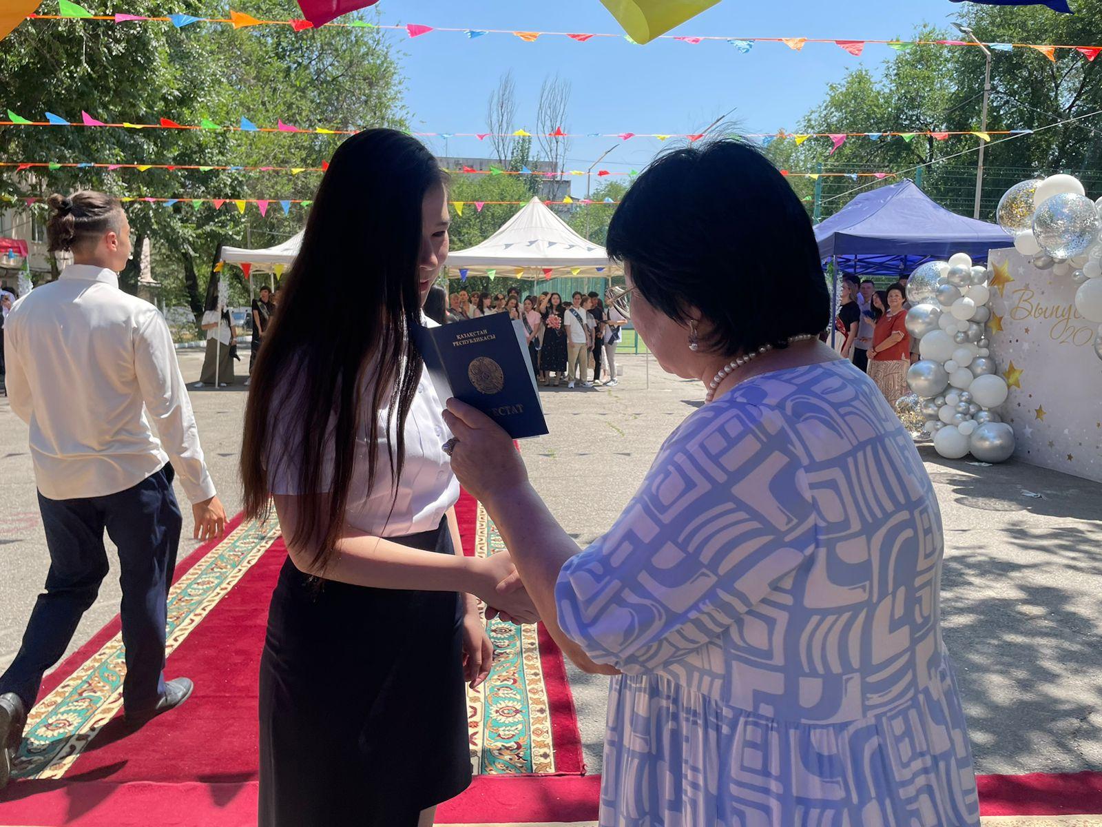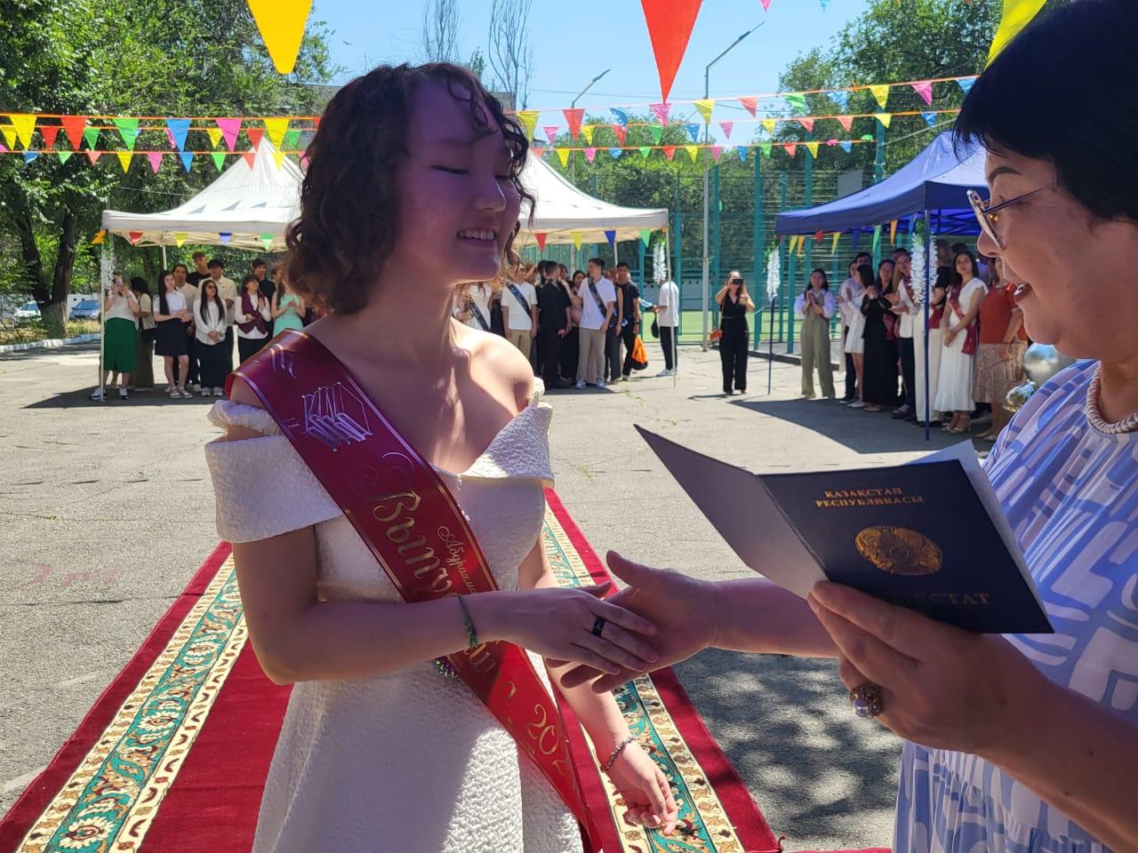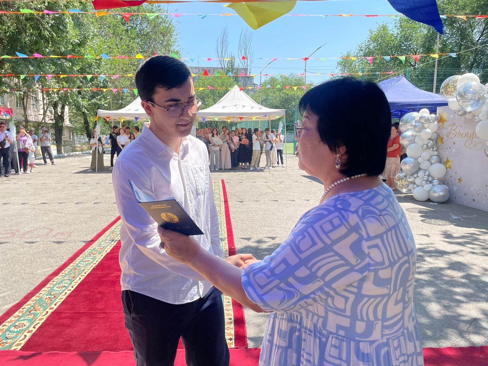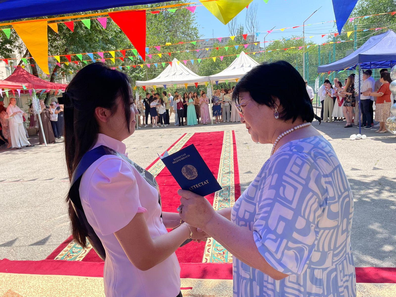 19 июня 2025 года в КГУ «Школа-лицей №28 им.М.Маметовой» состоялось торжественное мероприятие, посвящённое вручению аттестатов выпускникам 2025 года. Этот день – итог огромного пути, наполненного знаниями, трудами, победами и открытиями. Мы с гордостью провожаем наших учеников в новую, взрослую жизнь. Позади школьные годы, впереди – большие мечты, университеты, профессии и новые горизонты! С поздравительным словом к выпускникам обратилась директор Медетбекова А.Т.: «Құрметті мектеп бітіруші түлектер, қадірлі ата-аналар, ұстаздар, қонақтар! Бүгін ерекше салтанатты күн! Сіздерді үлкен өмірге шығарып салғалы отырмыз. Сегодня – особенный день, торжественный и волнительный. Мы провожаем в большую, самостоятельную жизнь наших выпускников – сильных, умных, талантливых и уже таких взрослых. Этот день – не просто итог ещё одного учебного года. Это завершение важного этапа в жизни каждого из вас, дорогие выпускники. За плечами — годы, наполненные трудами, открытиями, победами и, конечно, поддержкой близких. Мы вместе с вами проходили через трудности и радовались успехам. И сегодня вы стоите здесь — уверенные, с горящими глазами, готовые к новому пути. Позади осталась школьная пора – время, когда вы учились не только математике, физике и литературе, но и дружбе, взаимопомощи, ответственности.