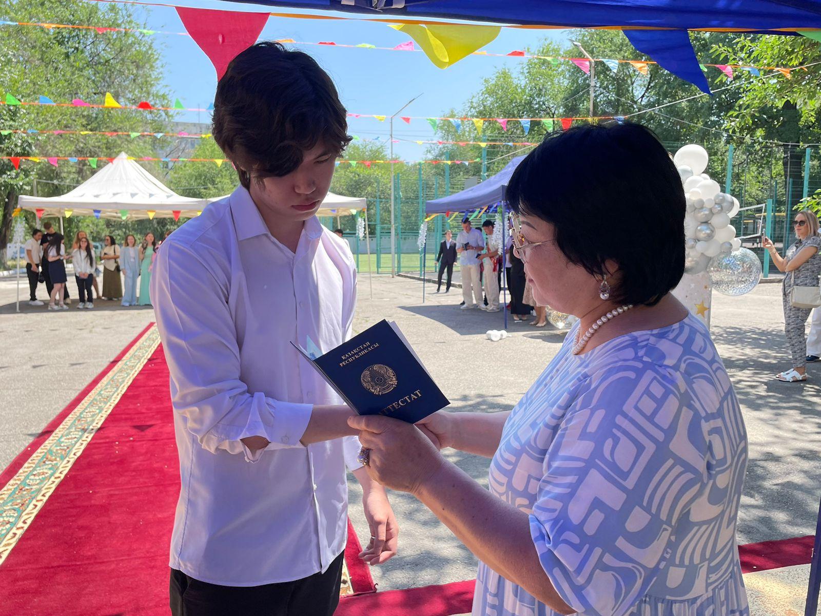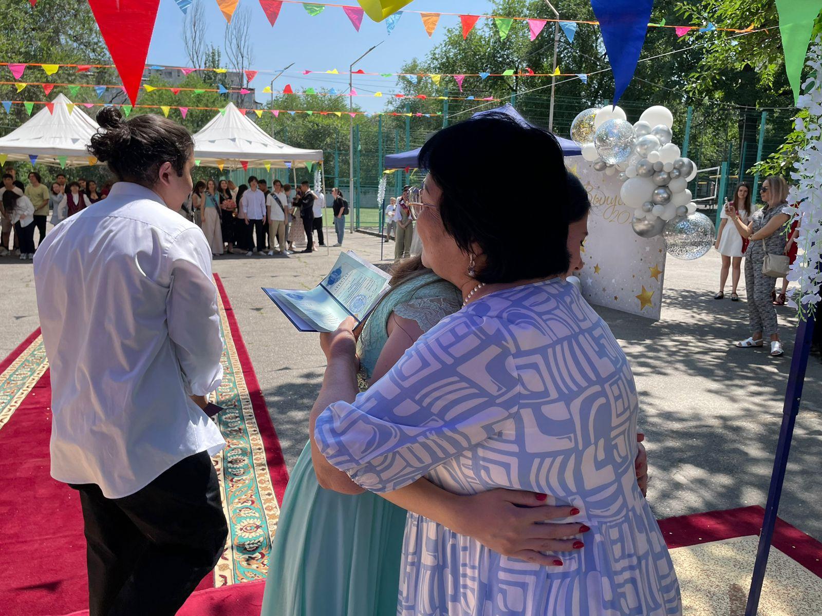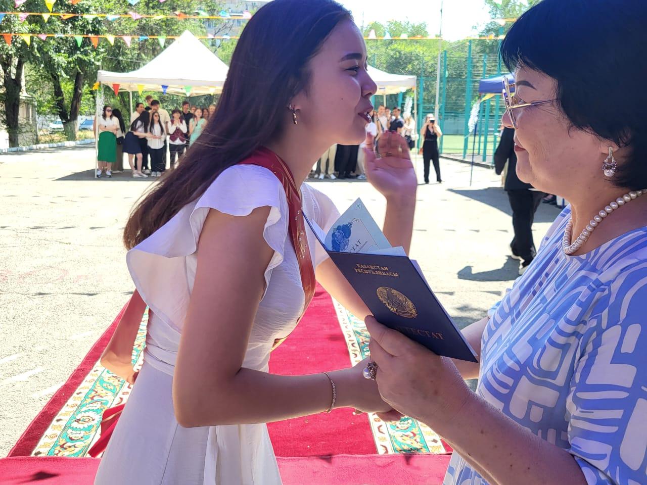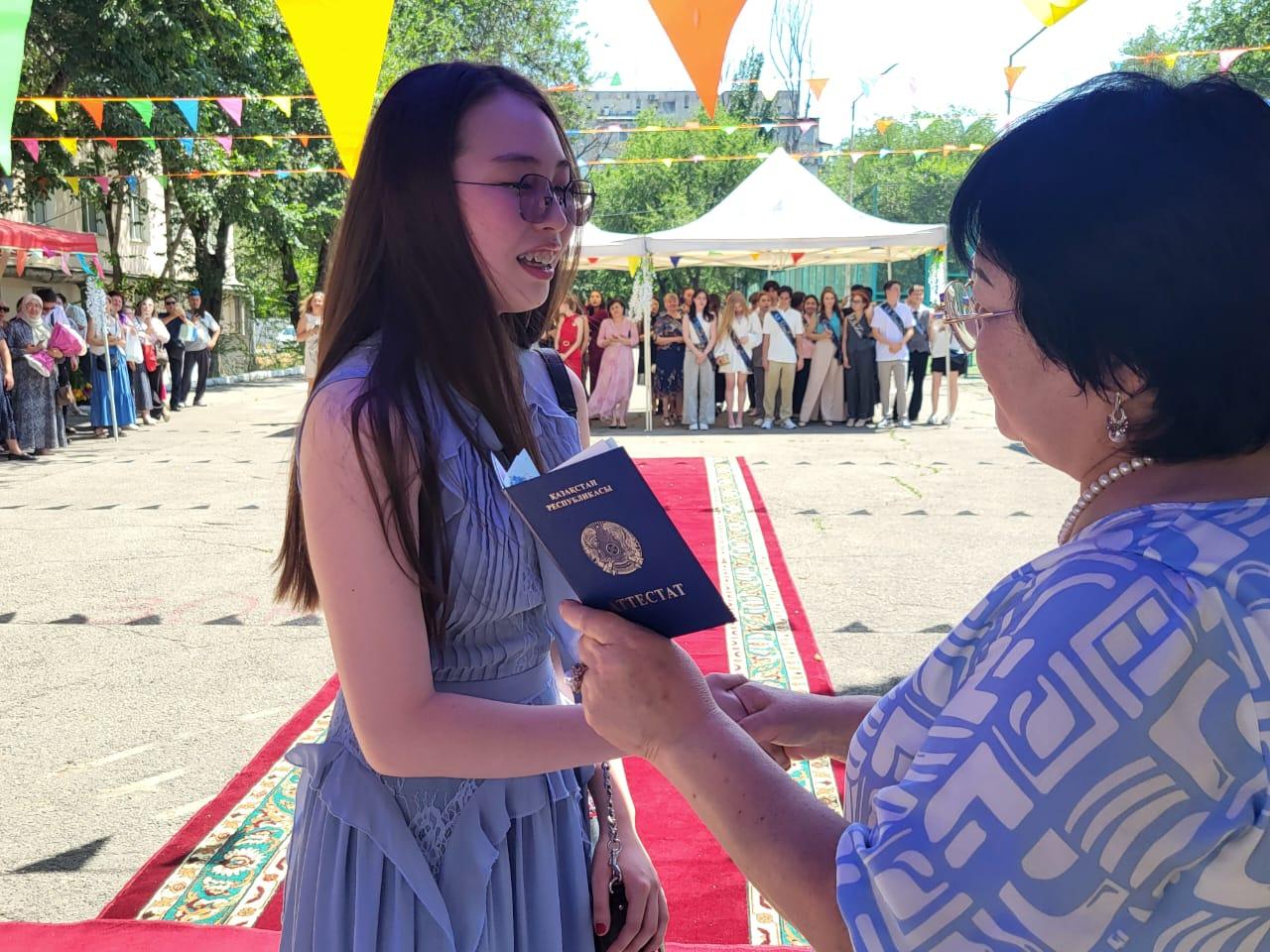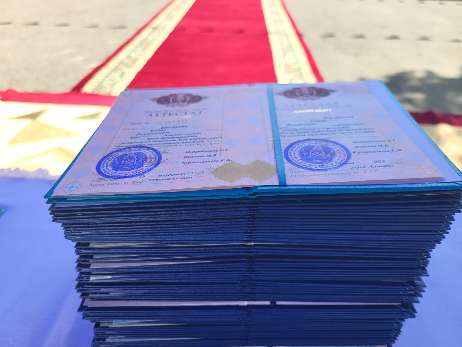 19 июня 2025 года в КГУ «Школа-лицей №28 им.М.Маметовой» состоялось торжественное мероприятие, посвящённое вручению аттестатов выпускникам 2025 года. Этот день – итог огромного пути, наполненного знаниями, трудами, победами и открытиями. Мы с гордостью провожаем наших учеников в новую, взрослую жизнь. Позади школьные годы, впереди – большие мечты, университеты, профессии и новые горизонты! С поздравительным словом к выпускникам обратилась директор Медетбекова А.Т.: «Құрметті мектеп бітіруші түлектер, қадірлі ата-аналар, ұстаздар, қонақтар! Бүгін ерекше салтанатты күн! Сіздерді үлкен өмірге шығарып салғалы отырмыз. Сегодня – особенный день, торжественный и волнительный. Мы провожаем в большую, самостоятельную жизнь наших выпускников – сильных, умных, талантливых и уже таких взрослых. Этот день – не просто итог ещё одного учебного года. Это завершение важного этапа в жизни каждого из вас, дорогие выпускники. За плечами — годы, наполненные трудами, открытиями, победами и, конечно, поддержкой близких. Мы вместе с вами проходили через трудности и радовались успехам. И сегодня вы стоите здесь — уверенные, с горящими глазами, готовые к новому пути. Позади осталась школьная пора – время, когда вы учились не только математике, физике и литературе, но и дружбе, взаимопомощи, ответственности.