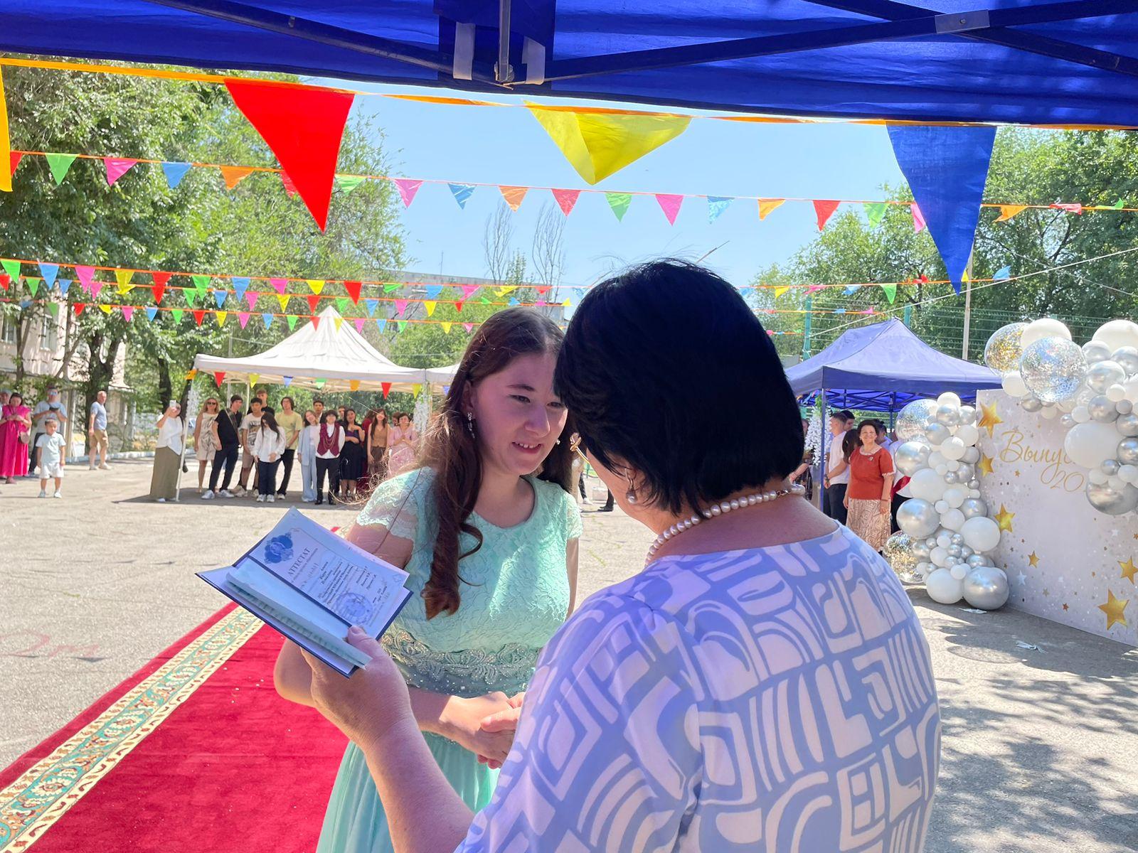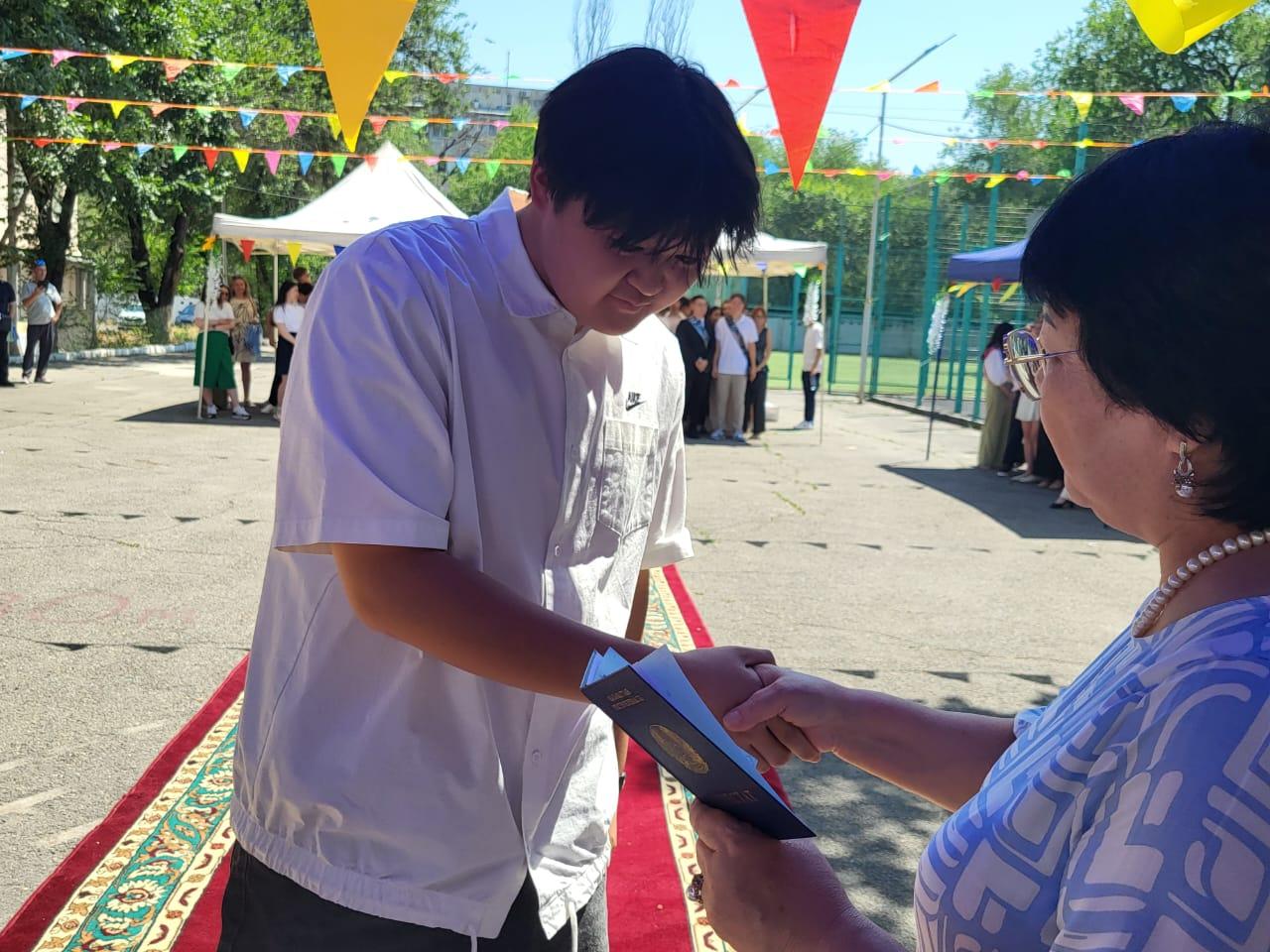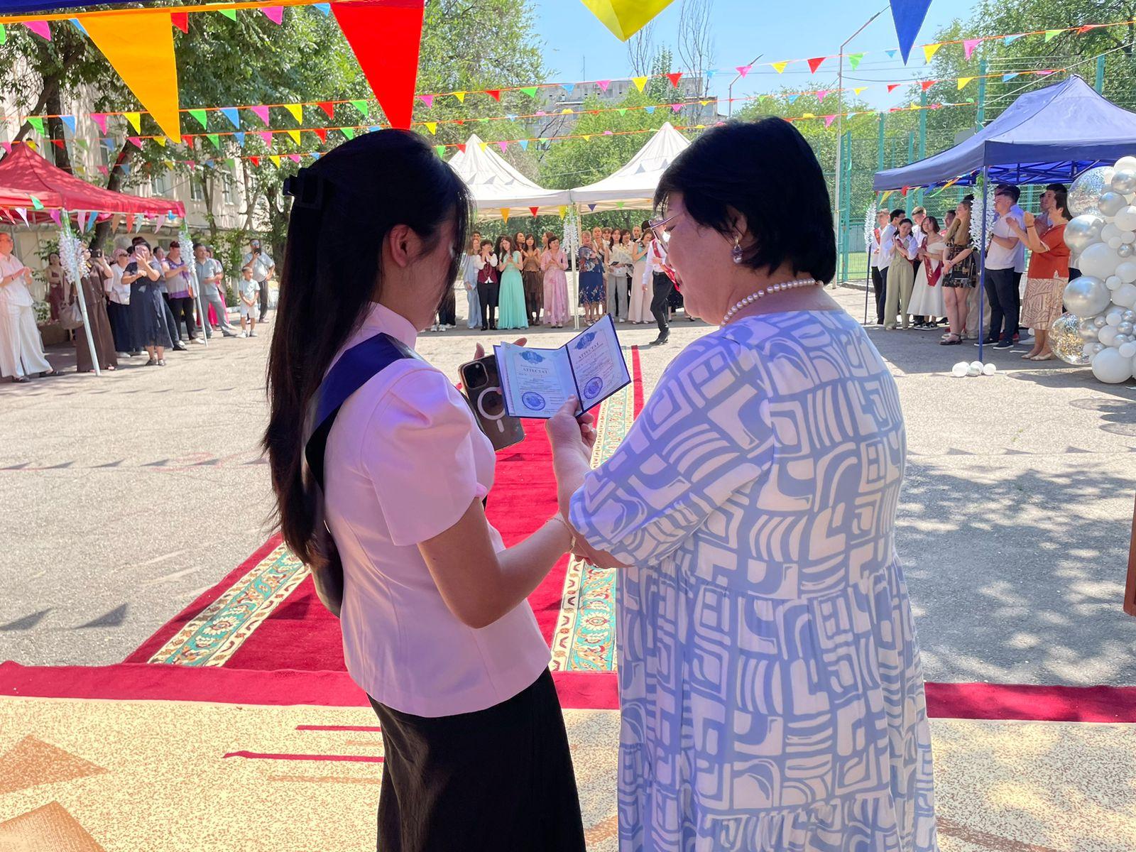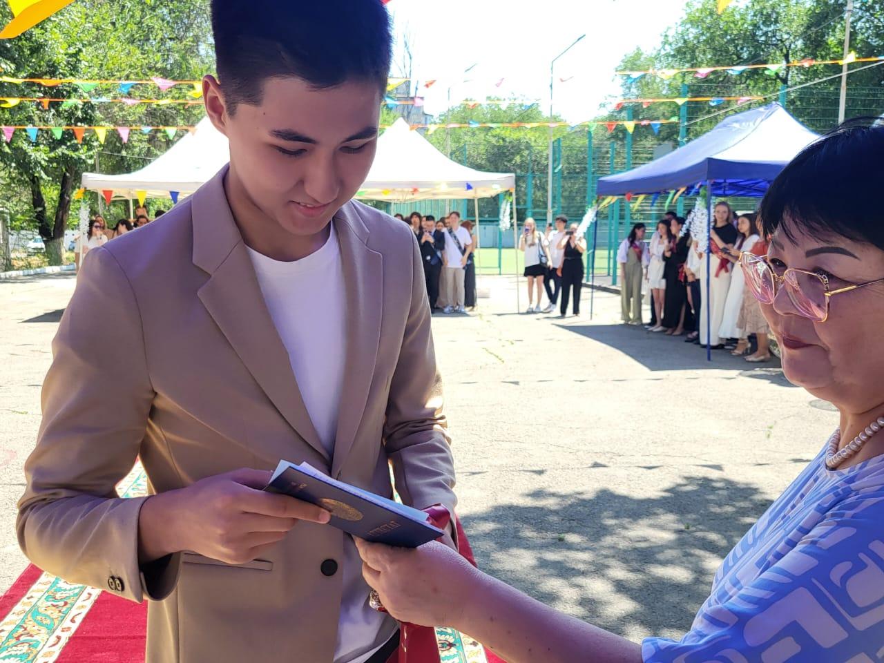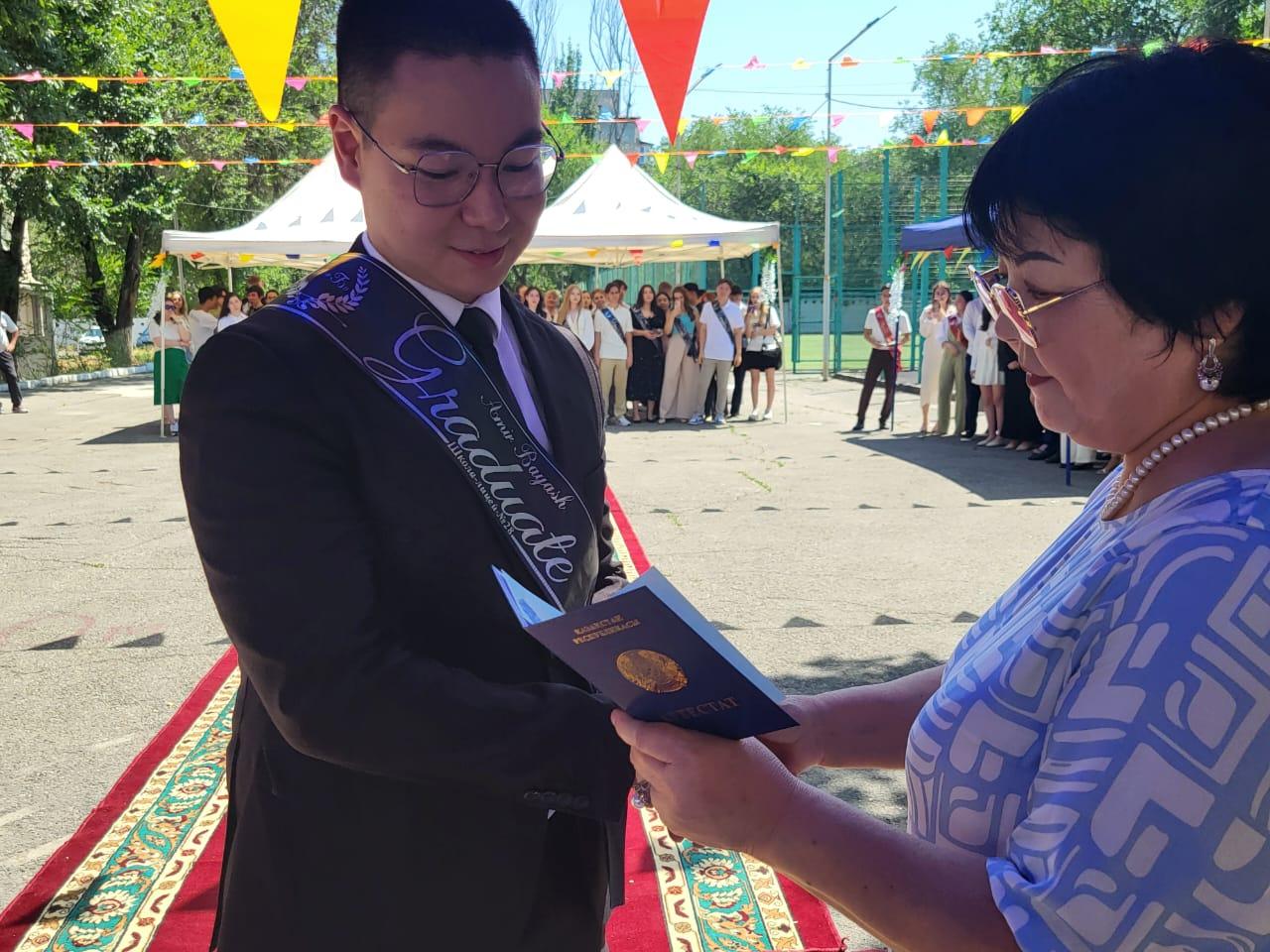 19 июня 2025 года в КГУ «Школа-лицей №28 им.М.Маметовой» состоялось торжественное мероприятие, посвящённое вручению аттестатов выпускникам 2025 года. Этот день – итог огромного пути, наполненного знаниями, трудами, победами и открытиями. Мы с гордостью провожаем наших учеников в новую, взрослую жизнь. Позади школьные годы, впереди – большие мечты, университеты, профессии и новые горизонты! С поздравительным словом к выпускникам обратилась директор Медетбекова А.Т.: «Құрметті мектеп бітіруші түлектер, қадірлі ата-аналар, ұстаздар, қонақтар! Бүгін ерекше салтанатты күн! Сіздерді үлкен өмірге шығарып салғалы отырмыз. Сегодня – особенный день, торжественный и волнительный. Мы провожаем в большую, самостоятельную жизнь наших выпускников – сильных, умных, талантливых и уже таких взрослых. Этот день – не просто итог ещё одного учебного года. Это завершение важного этапа в жизни каждого из вас, дорогие выпускники. За плечами — годы, наполненные трудами, открытиями, победами и, конечно, поддержкой близких. Мы вместе с вами проходили через трудности и радовались успехам. И сегодня вы стоите здесь — уверенные, с горящими глазами, готовые к новому пути. Позади осталась школьная пора – время, когда вы учились не только математике, физике и литературе, но и дружбе, взаимопомощи, ответственности.