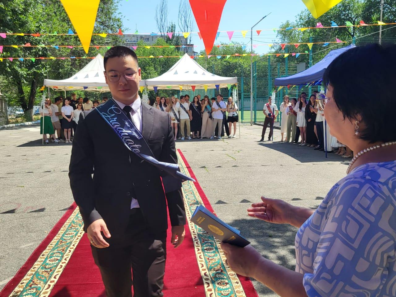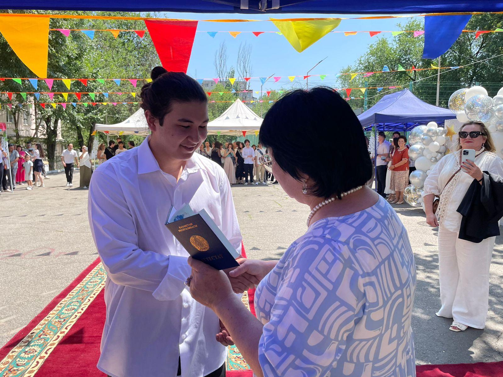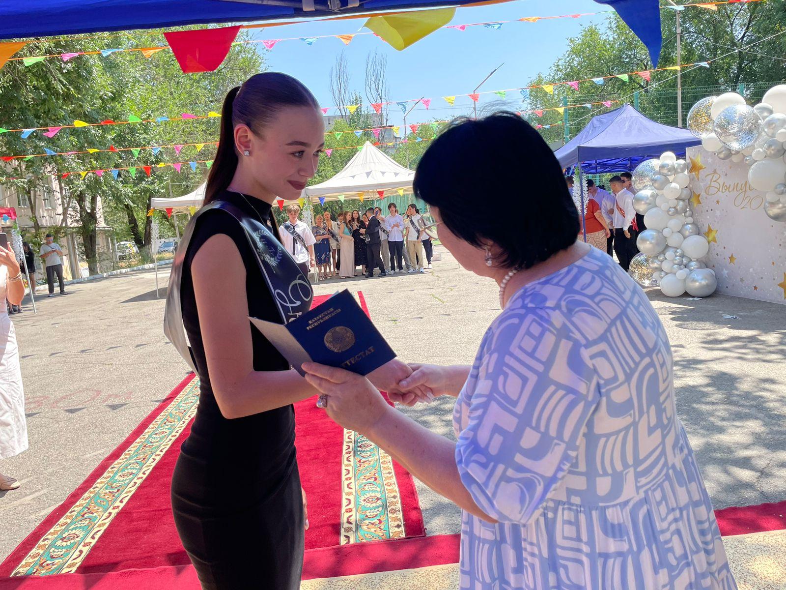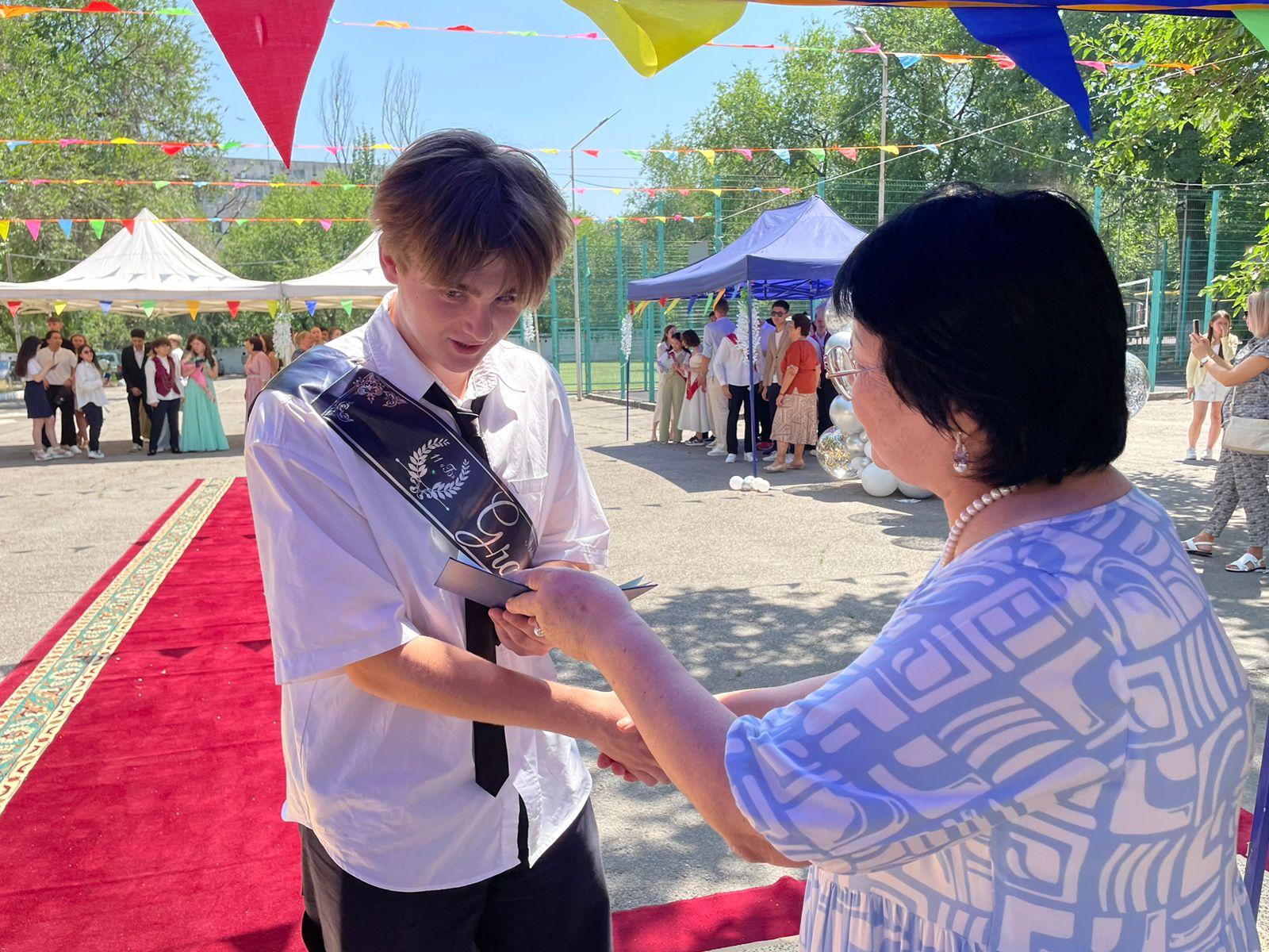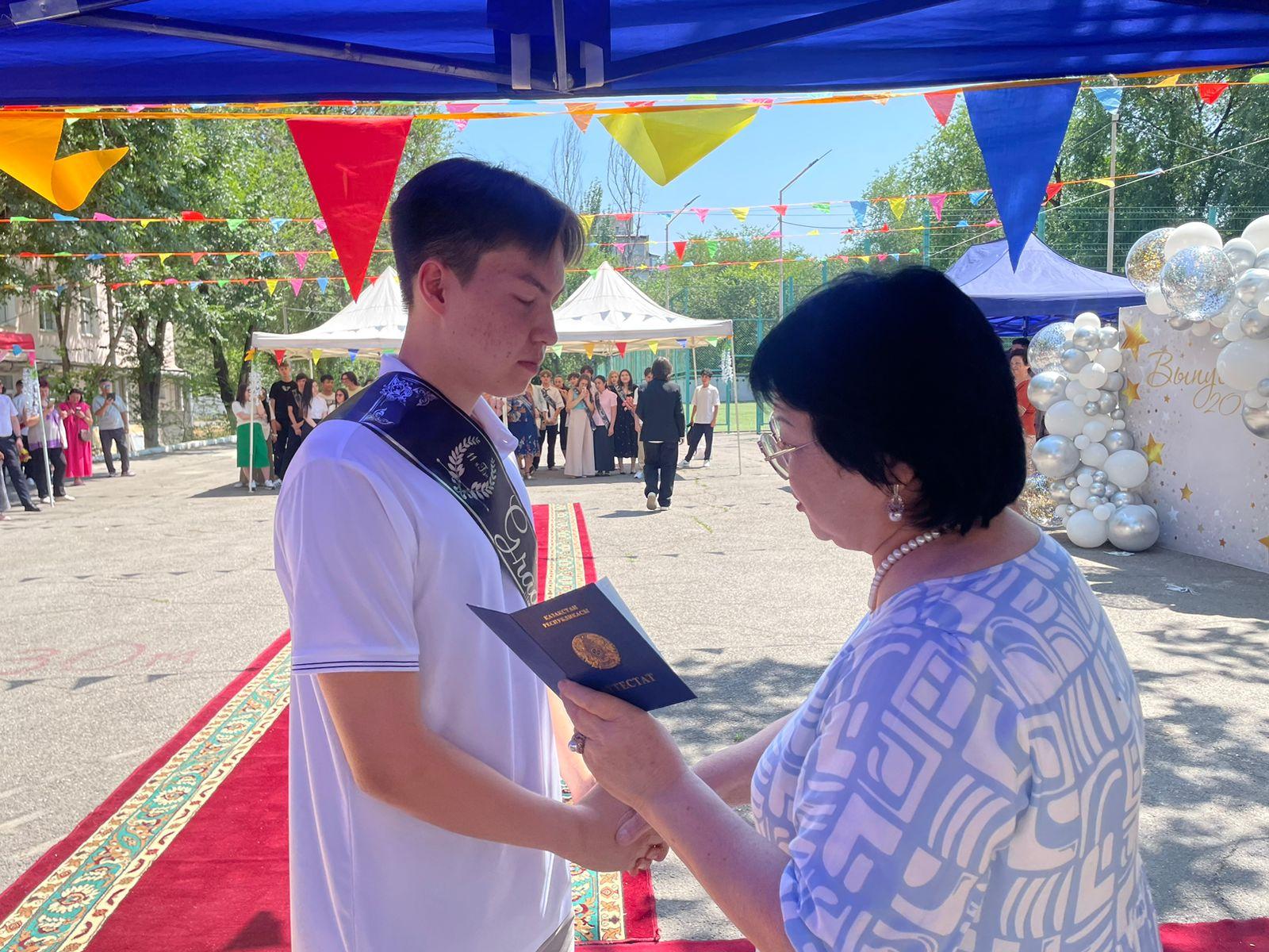 19 июня 2025 года в КГУ «Школа-лицей №28 им.М.Маметовой» состоялось торжественное мероприятие, посвящённое вручению аттестатов выпускникам 2025 года. Этот день – итог огромного пути, наполненного знаниями, трудами, победами и открытиями. Мы с гордостью провожаем наших учеников в новую, взрослую жизнь. Позади школьные годы, впереди – большие мечты, университеты, профессии и новые горизонты! С поздравительным словом к выпускникам обратилась директор Медетбекова А.Т.: «Құрметті мектеп бітіруші түлектер, қадірлі ата-аналар, ұстаздар, қонақтар! Бүгін ерекше салтанатты күн! Сіздерді үлкен өмірге шығарып салғалы отырмыз. Сегодня – особенный день, торжественный и волнительный. Мы провожаем в большую, самостоятельную жизнь наших выпускников – сильных, умных, талантливых и уже таких взрослых. Этот день – не просто итог ещё одного учебного года. Это завершение важного этапа в жизни каждого из вас, дорогие выпускники. За плечами — годы, наполненные трудами, открытиями, победами и, конечно, поддержкой близких. Мы вместе с вами проходили через трудности и радовались успехам. И сегодня вы стоите здесь — уверенные, с горящими глазами, готовые к новому пути. Позади осталась школьная пора – время, когда вы учились не только математике, физике и литературе, но и дружбе, взаимопомощи, ответственности.