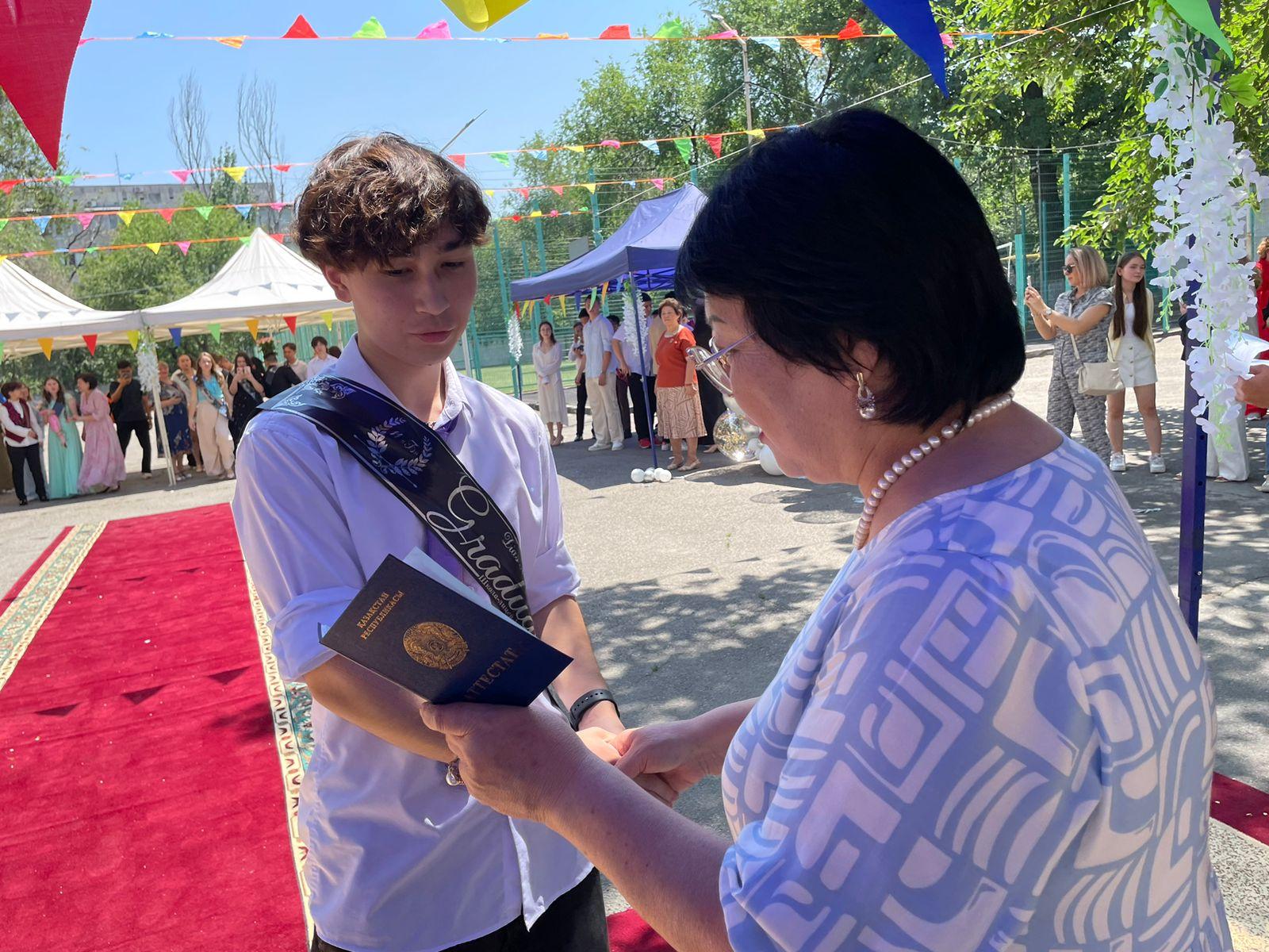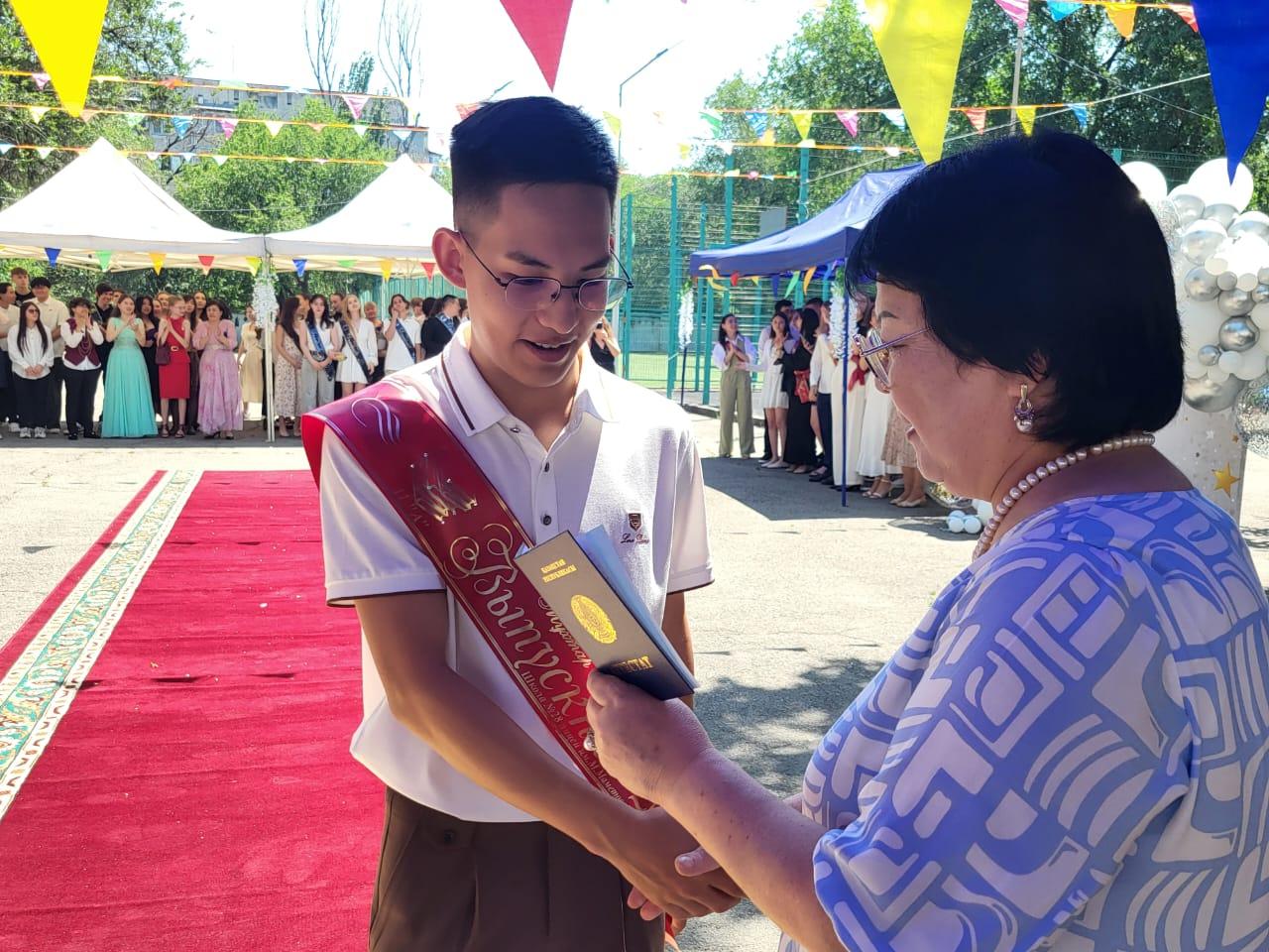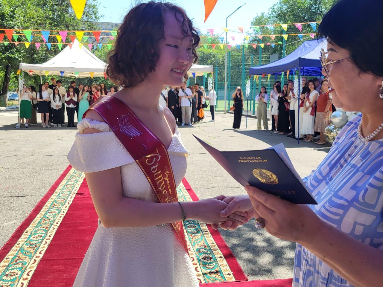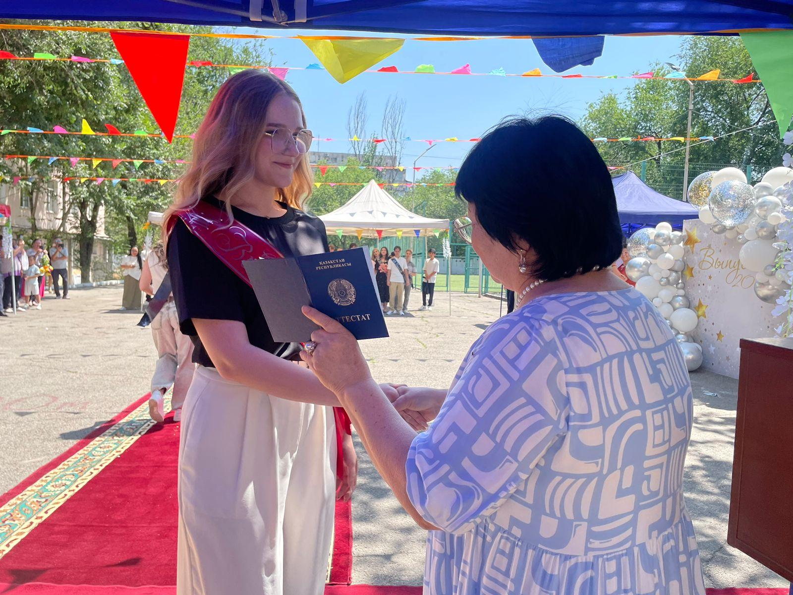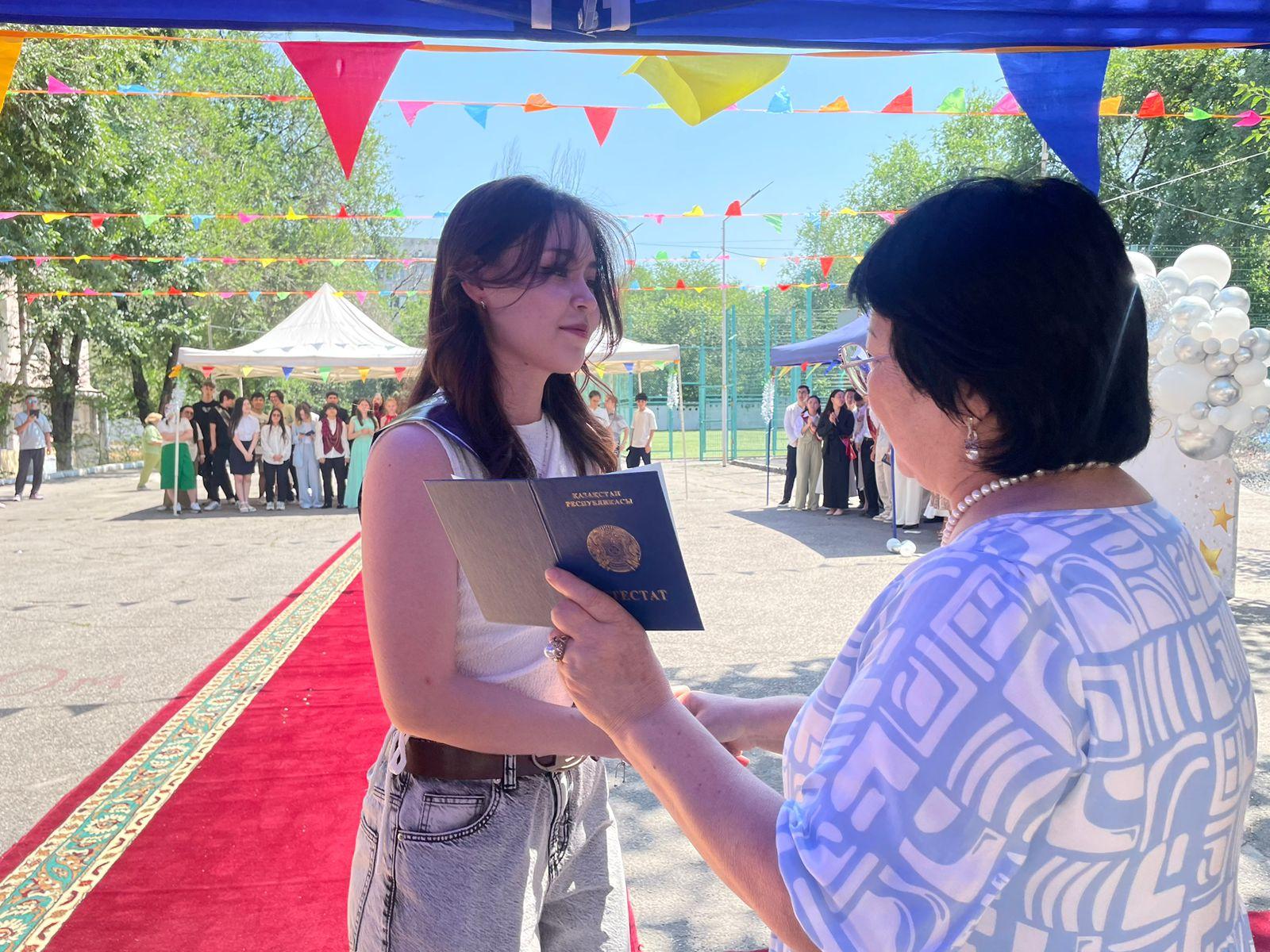 19 июня 2025 года в КГУ «Школа-лицей №28 им.М.Маметовой» состоялось торжественное мероприятие, посвящённое вручению аттестатов выпускникам 2025 года. Этот день – итог огромного пути, наполненного знаниями, трудами, победами и открытиями. Мы с гордостью провожаем наших учеников в новую, взрослую жизнь. Позади школьные годы, впереди – большие мечты, университеты, профессии и новые горизонты! С поздравительным словом к выпускникам обратилась директор Медетбекова А.Т.: «Құрметті мектеп бітіруші түлектер, қадірлі ата-аналар, ұстаздар, қонақтар! Бүгін ерекше салтанатты күн! Сіздерді үлкен өмірге шығарып салғалы отырмыз. Сегодня – особенный день, торжественный и волнительный. Мы провожаем в большую, самостоятельную жизнь наших выпускников – сильных, умных, талантливых и уже таких взрослых. Этот день – не просто итог ещё одного учебного года. Это завершение важного этапа в жизни каждого из вас, дорогие выпускники. За плечами — годы, наполненные трудами, открытиями, победами и, конечно, поддержкой близких. Мы вместе с вами проходили через трудности и радовались успехам. И сегодня вы стоите здесь — уверенные, с горящими глазами, готовые к новому пути. Позади осталась школьная пора – время, когда вы учились не только математике, физике и литературе, но и дружбе, взаимопомощи, ответственности.