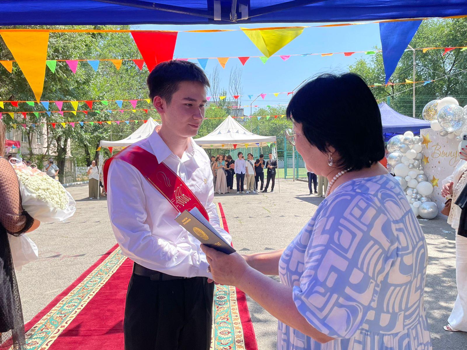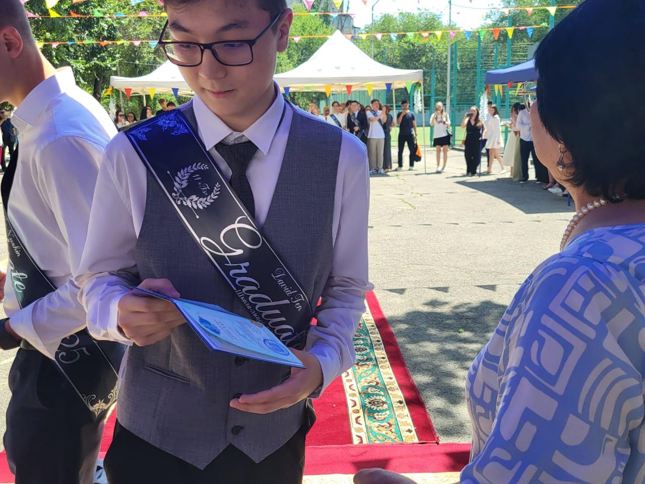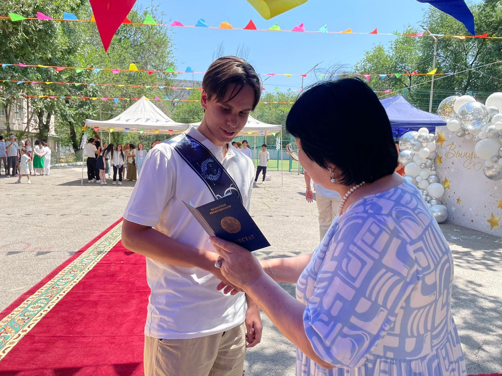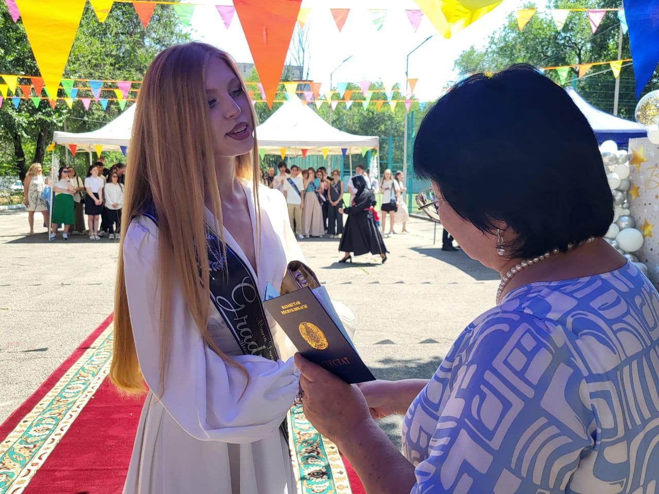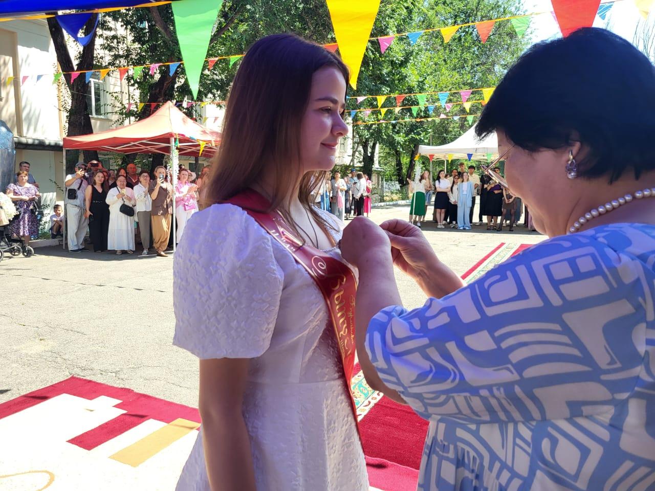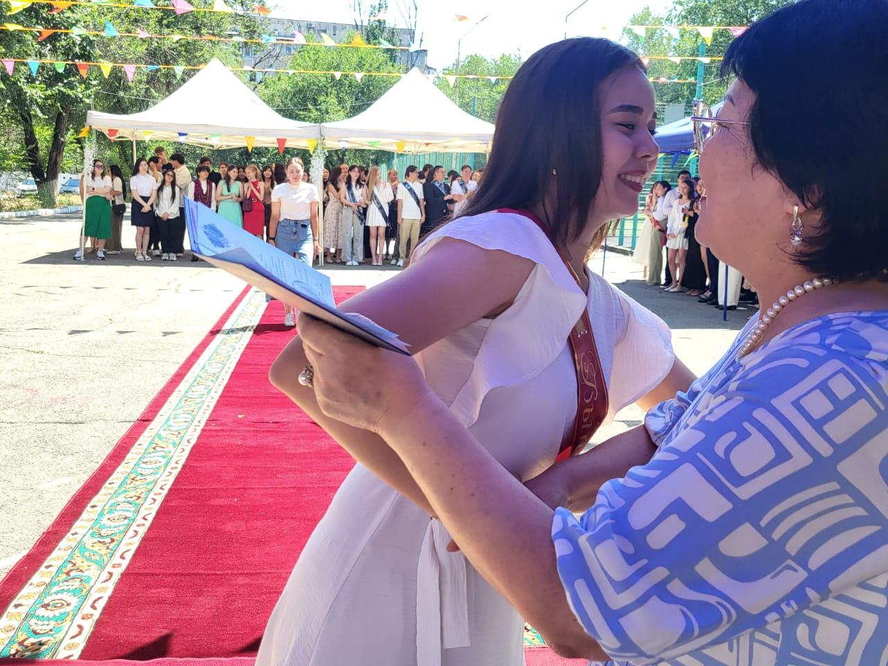 19 июня 2025 года в КГУ «Школа-лицей №28 им.М.Маметовой» состоялось торжественное мероприятие, посвящённое вручению аттестатов выпускникам 2025 года. Этот день – итог огромного пути, наполненного знаниями, трудами, победами и открытиями. Мы с гордостью провожаем наших учеников в новую, взрослую жизнь. Позади школьные годы, впереди – большие мечты, университеты, профессии и новые горизонты! С поздравительным словом к выпускникам обратилась директор Медетбекова А.Т.: «Құрметті мектеп бітіруші түлектер, қадірлі ата-аналар, ұстаздар, қонақтар! Бүгін ерекше салтанатты күн! Сіздерді үлкен өмірге шығарып салғалы отырмыз. Сегодня – особенный день, торжественный и волнительный. Мы провожаем в большую, самостоятельную жизнь наших выпускников – сильных, умных, талантливых и уже таких взрослых. Этот день – не просто итог ещё одного учебного года. Это завершение важного этапа в жизни каждого из вас, дорогие выпускники. За плечами — годы, наполненные трудами, открытиями, победами и, конечно, поддержкой близких. Мы вместе с вами проходили через трудности и радовались успехам. И сегодня вы стоите здесь — уверенные, с горящими глазами, готовые к новому пути. Позади осталась школьная пора – время, когда вы учились не только математике, физике и литературе, но и дружбе, взаимопомощи, ответственности.