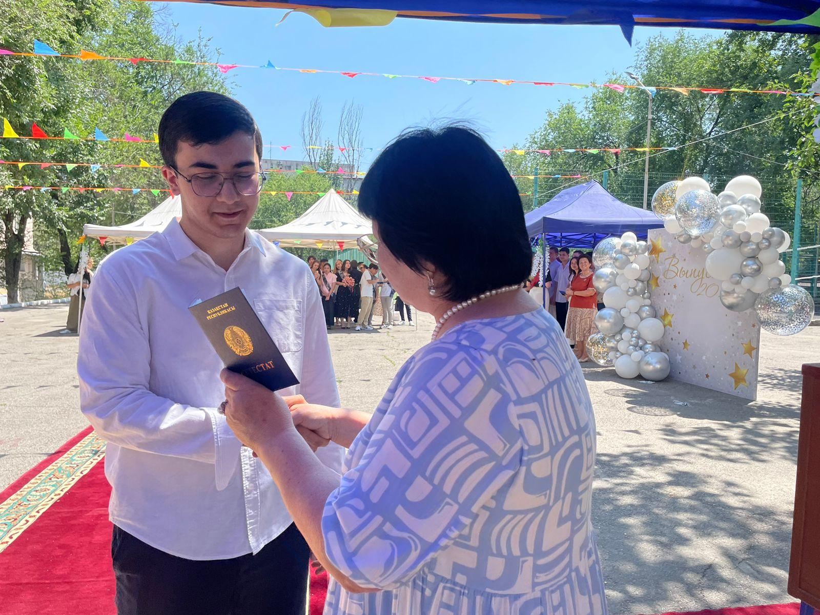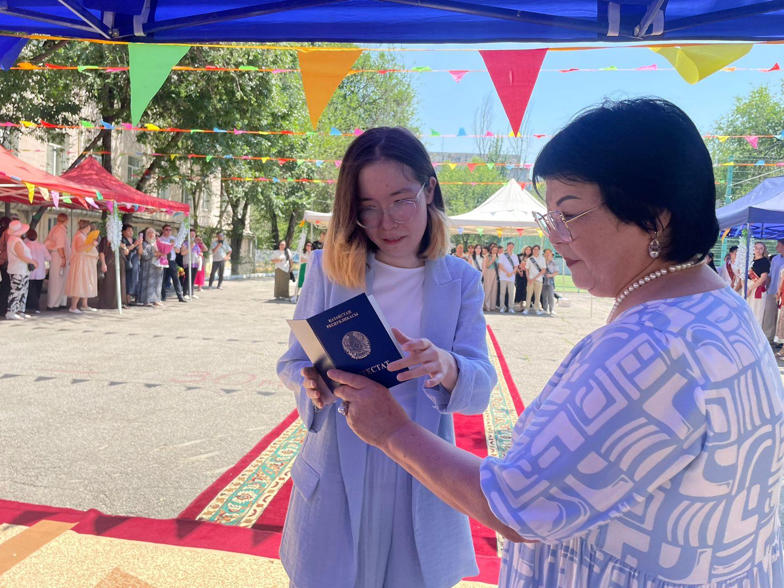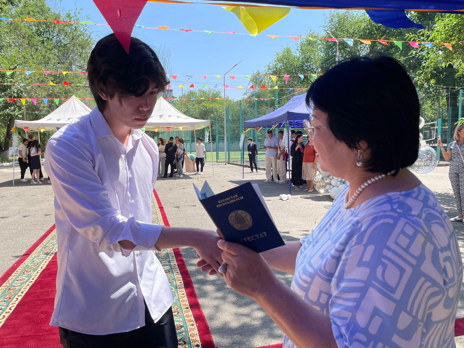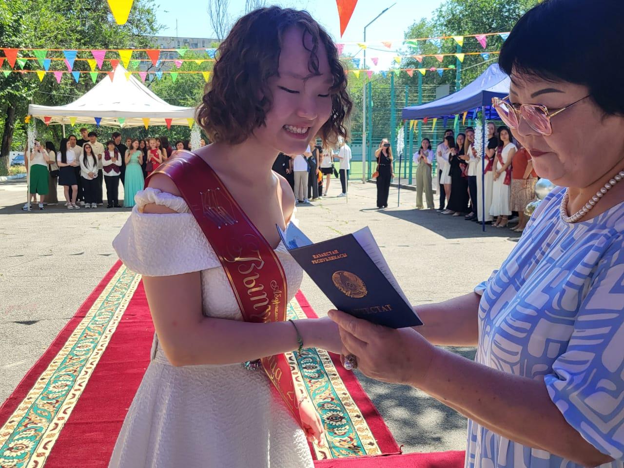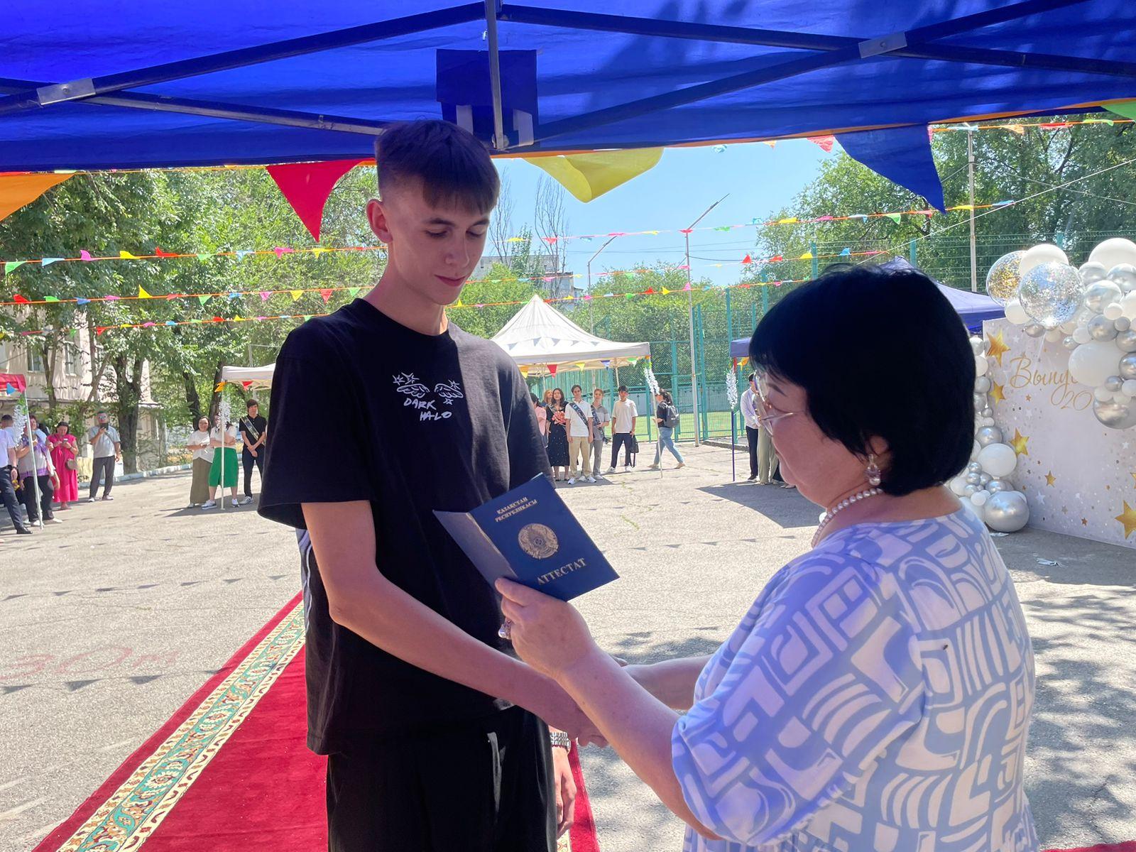 19 июня 2025 года в КГУ «Школа-лицей №28 им.М.Маметовой» состоялось торжественное мероприятие, посвящённое вручению аттестатов выпускникам 2025 года. Этот день – итог огромного пути, наполненного знаниями, трудами, победами и открытиями. Мы с гордостью провожаем наших учеников в новую, взрослую жизнь. Позади школьные годы, впереди – большие мечты, университеты, профессии и новые горизонты! С поздравительным словом к выпускникам обратилась директор Медетбекова А.Т.: «Құрметті мектеп бітіруші түлектер, қадірлі ата-аналар, ұстаздар, қонақтар! Бүгін ерекше салтанатты күн! Сіздерді үлкен өмірге шығарып салғалы отырмыз. Сегодня – особенный день, торжественный и волнительный. Мы провожаем в большую, самостоятельную жизнь наших выпускников – сильных, умных, талантливых и уже таких взрослых. Этот день – не просто итог ещё одного учебного года. Это завершение важного этапа в жизни каждого из вас, дорогие выпускники. За плечами — годы, наполненные трудами, открытиями, победами и, конечно, поддержкой близких. Мы вместе с вами проходили через трудности и радовались успехам. И сегодня вы стоите здесь — уверенные, с горящими глазами, готовые к новому пути. Позади осталась школьная пора – время, когда вы учились не только математике, физике и литературе, но и дружбе, взаимопомощи, ответственности.
