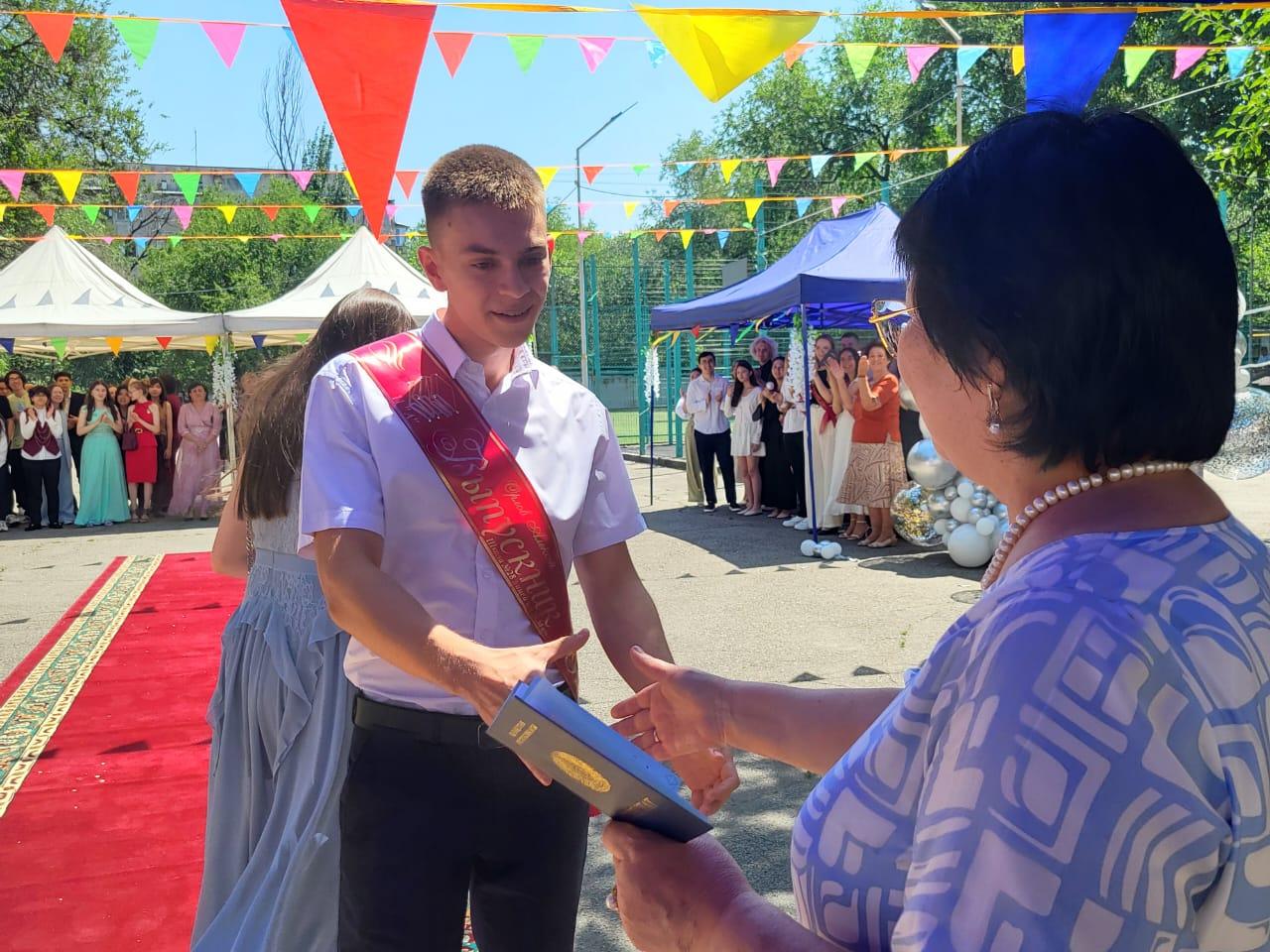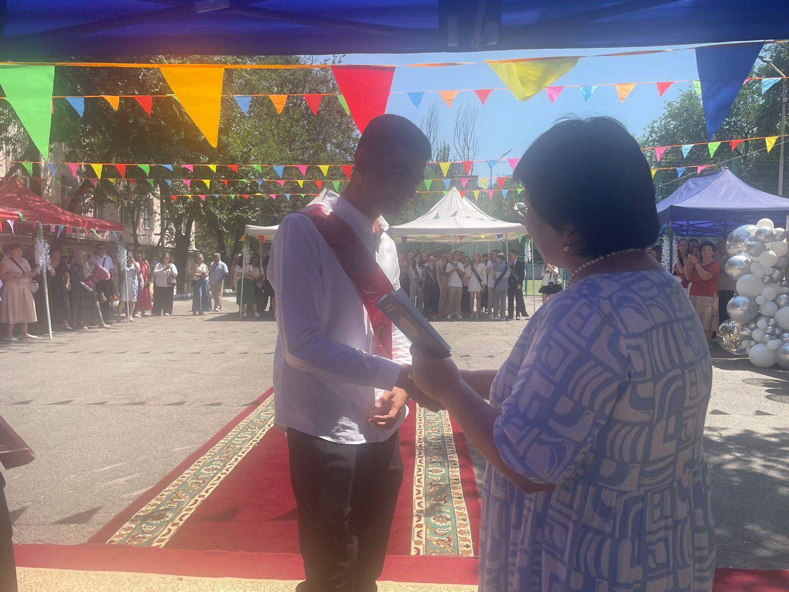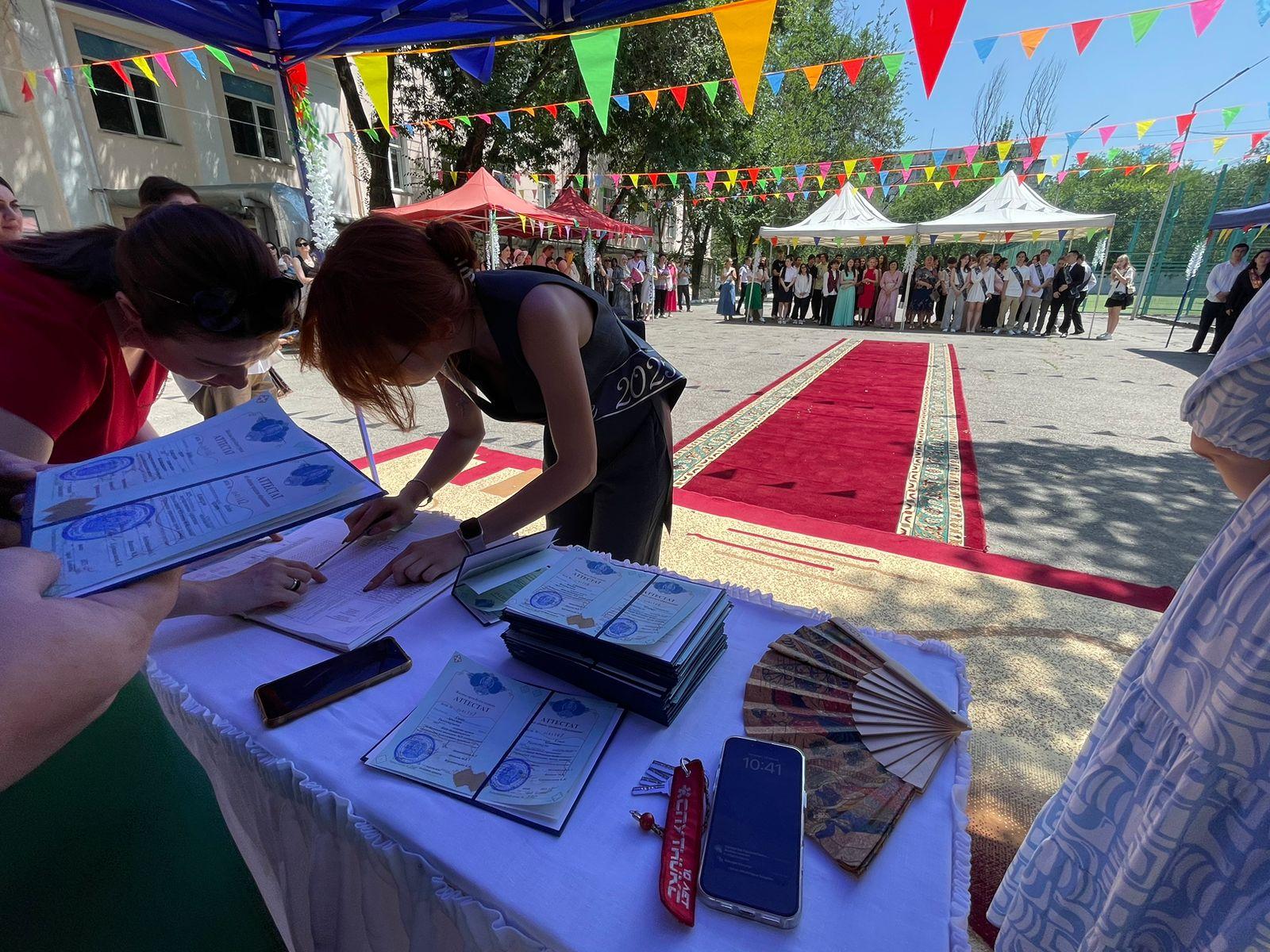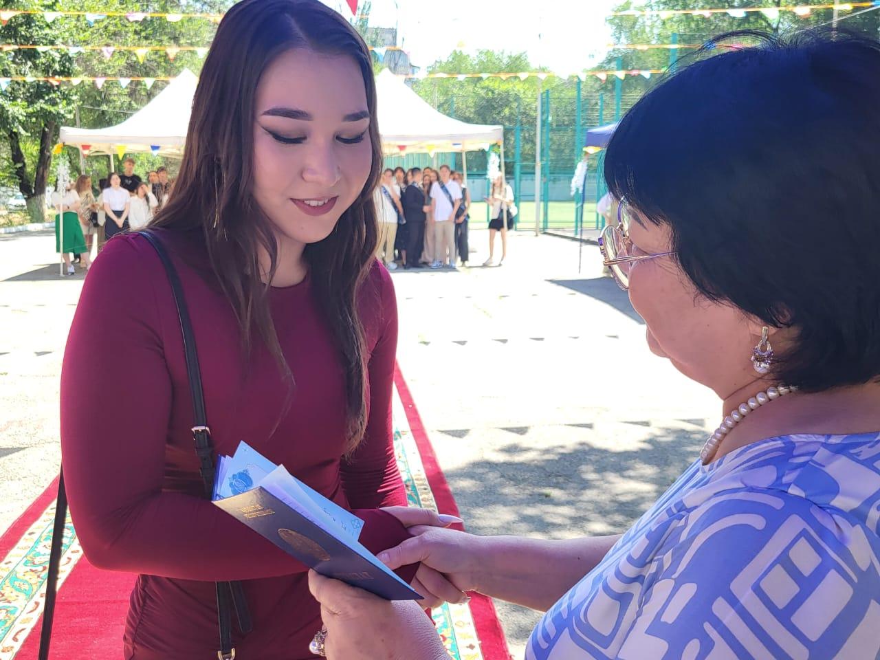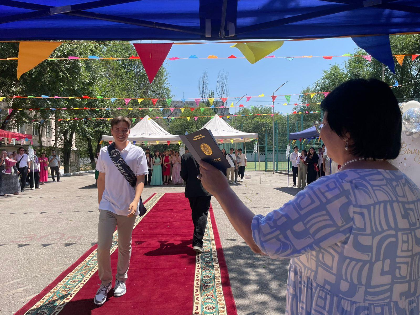 19 июня 2025 года в КГУ «Школа-лицей №28 им.М.Маметовой» состоялось торжественное мероприятие, посвящённое вручению аттестатов выпускникам 2025 года. Этот день – итог огромного пути, наполненного знаниями, трудами, победами и открытиями. Мы с гордостью провожаем наших учеников в новую, взрослую жизнь. Позади школьные годы, впереди – большие мечты, университеты, профессии и новые горизонты! С поздравительным словом к выпускникам обратилась директор Медетбекова А.Т.: «Құрметті мектеп бітіруші түлектер, қадірлі ата-аналар, ұстаздар, қонақтар! Бүгін ерекше салтанатты күн! Сіздерді үлкен өмірге шығарып салғалы отырмыз. Сегодня – особенный день, торжественный и волнительный. Мы провожаем в большую, самостоятельную жизнь наших выпускников – сильных, умных, талантливых и уже таких взрослых. Этот день – не просто итог ещё одного учебного года. Это завершение важного этапа в жизни каждого из вас, дорогие выпускники. За плечами — годы, наполненные трудами, открытиями, победами и, конечно, поддержкой близких. Мы вместе с вами проходили через трудности и радовались успехам. И сегодня вы стоите здесь — уверенные, с горящими глазами, готовые к новому пути. Позади осталась школьная пора – время, когда вы учились не только математике, физике и литературе, но и дружбе, взаимопомощи, ответственности.