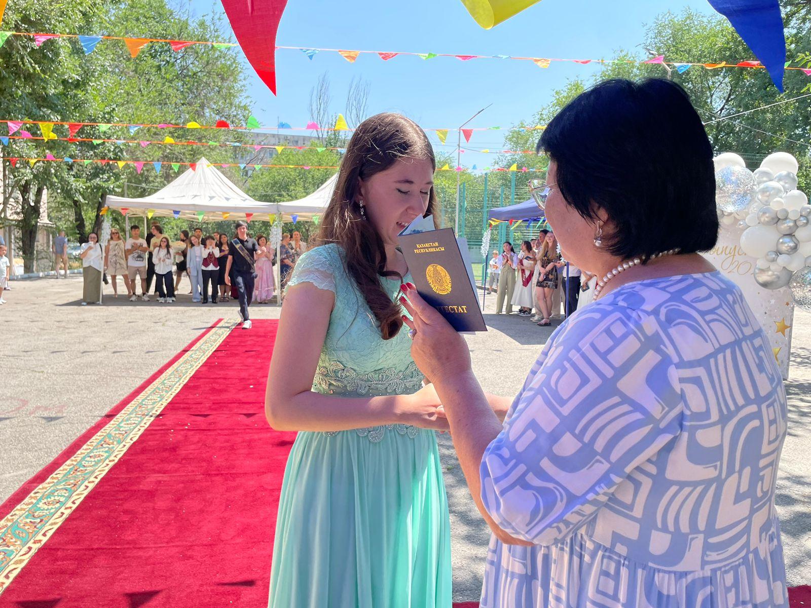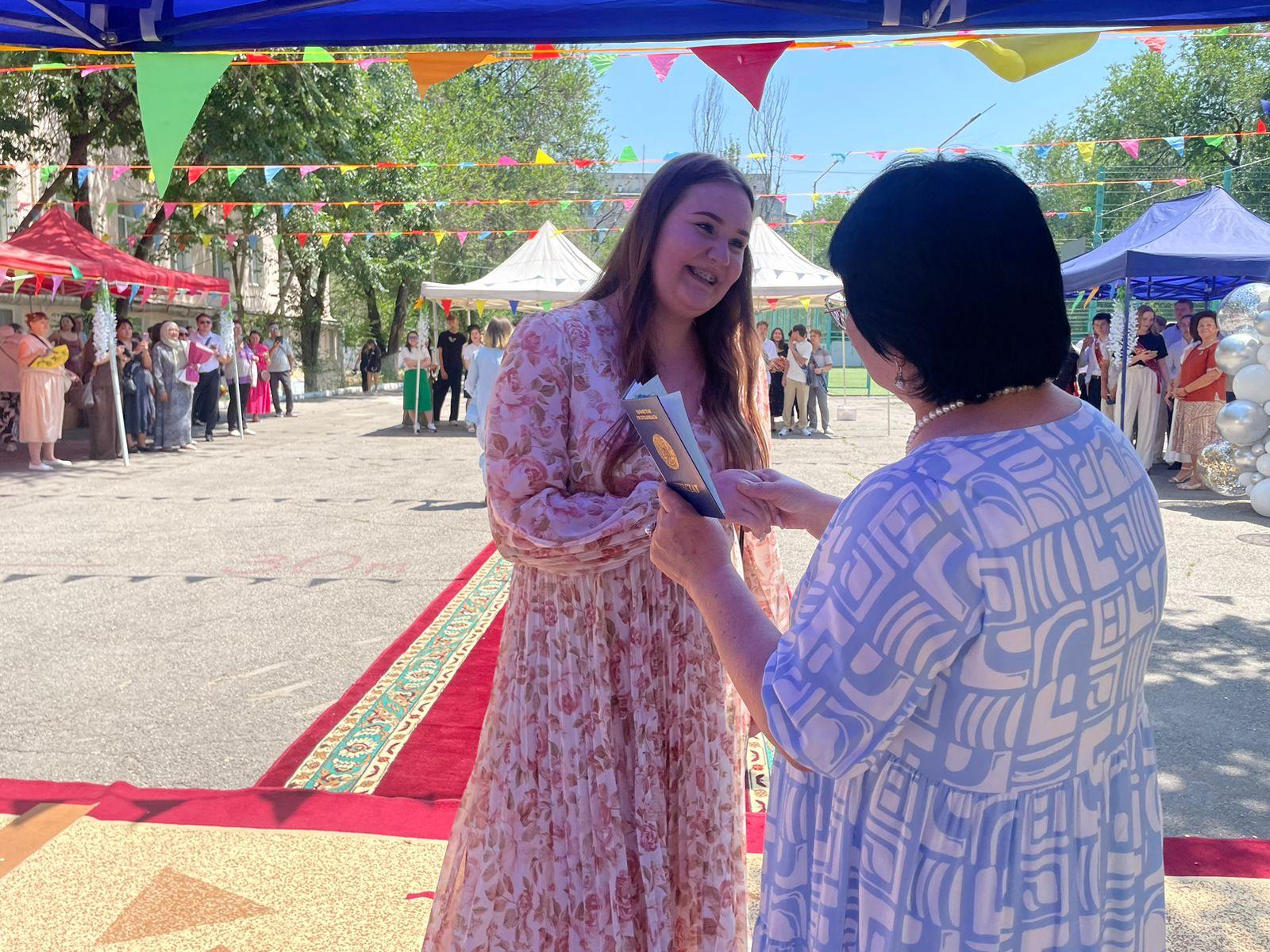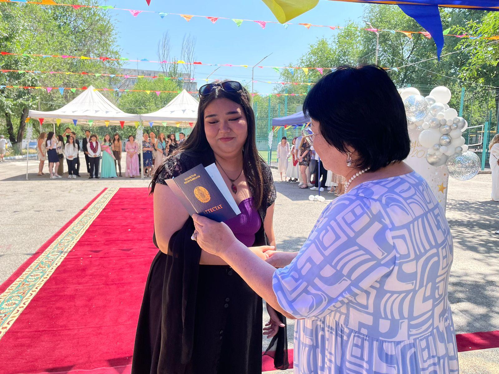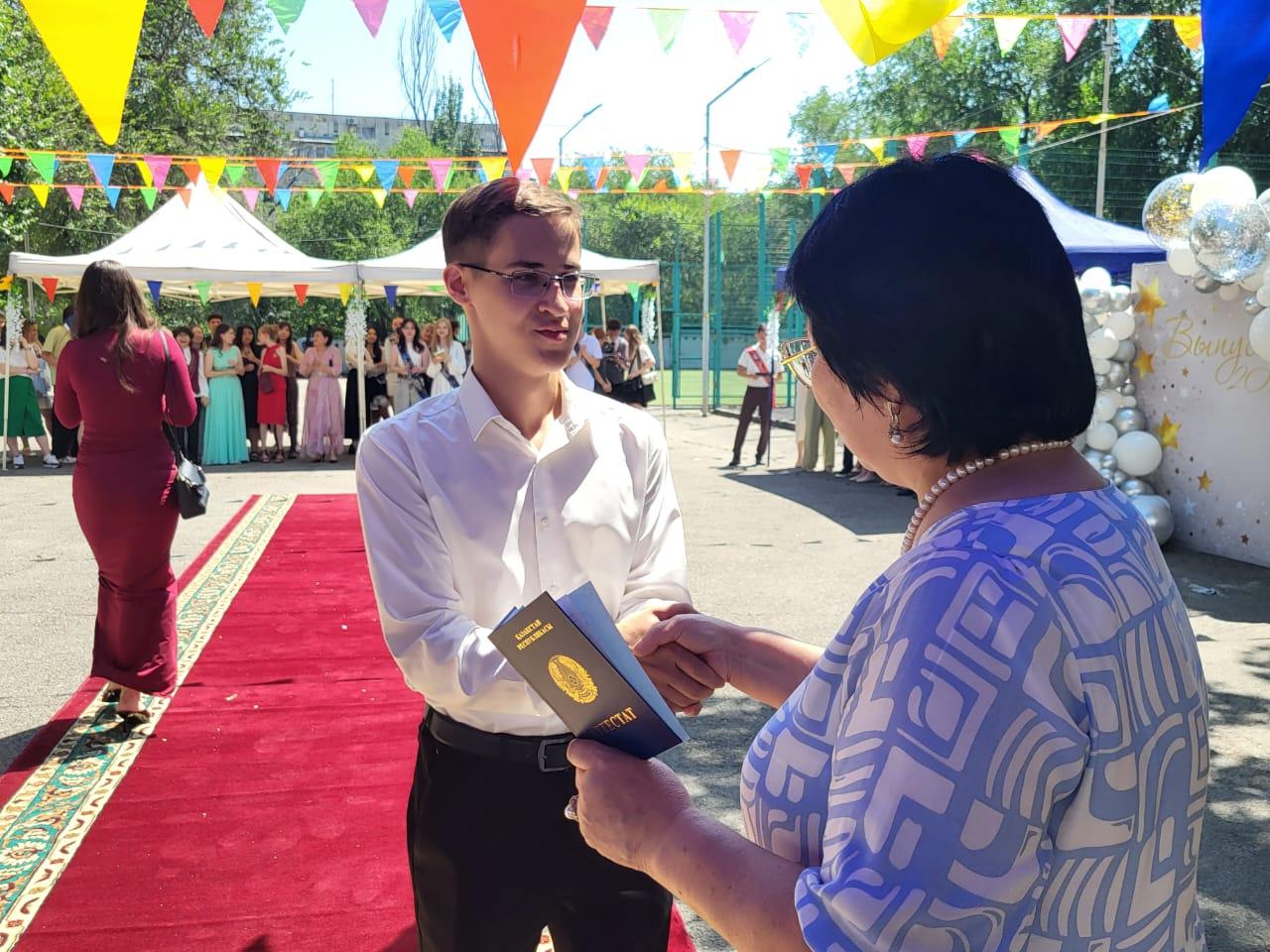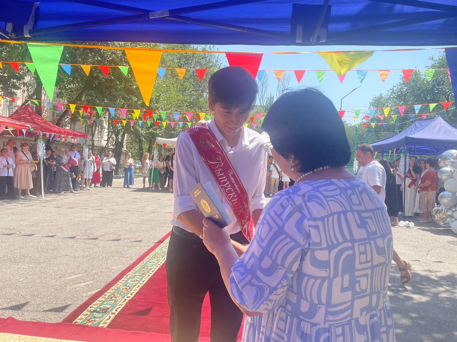 19 июня 2025 года в КГУ «Школа-лицей №28 им.М.Маметовой» состоялось торжественное мероприятие, посвящённое вручению аттестатов выпускникам 2025 года. Этот день – итог огромного пути, наполненного знаниями, трудами, победами и открытиями. Мы с гордостью провожаем наших учеников в новую, взрослую жизнь. Позади школьные годы, впереди – большие мечты, университеты, профессии и новые горизонты! С поздравительным словом к выпускникам обратилась директор Медетбекова А.Т.: «Құрметті мектеп бітіруші түлектер, қадірлі ата-аналар, ұстаздар, қонақтар! Бүгін ерекше салтанатты күн! Сіздерді үлкен өмірге шығарып салғалы отырмыз. Сегодня – особенный день, торжественный и волнительный. Мы провожаем в большую, самостоятельную жизнь наших выпускников – сильных, умных, талантливых и уже таких взрослых. Этот день – не просто итог ещё одного учебного года. Это завершение важного этапа в жизни каждого из вас, дорогие выпускники. За плечами — годы, наполненные трудами, открытиями, победами и, конечно, поддержкой близких. Мы вместе с вами проходили через трудности и радовались успехам. И сегодня вы стоите здесь — уверенные, с горящими глазами, готовые к новому пути. Позади осталась школьная пора – время, когда вы учились не только математике, физике и литературе, но и дружбе, взаимопомощи, ответственности.