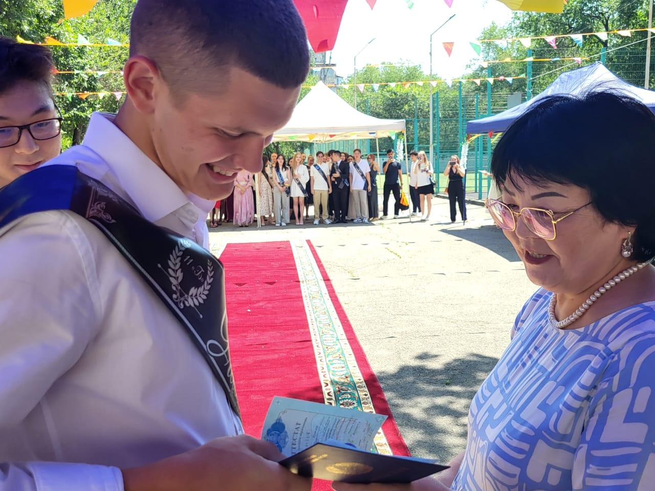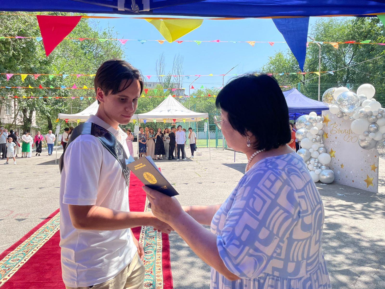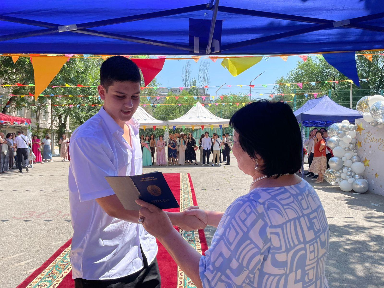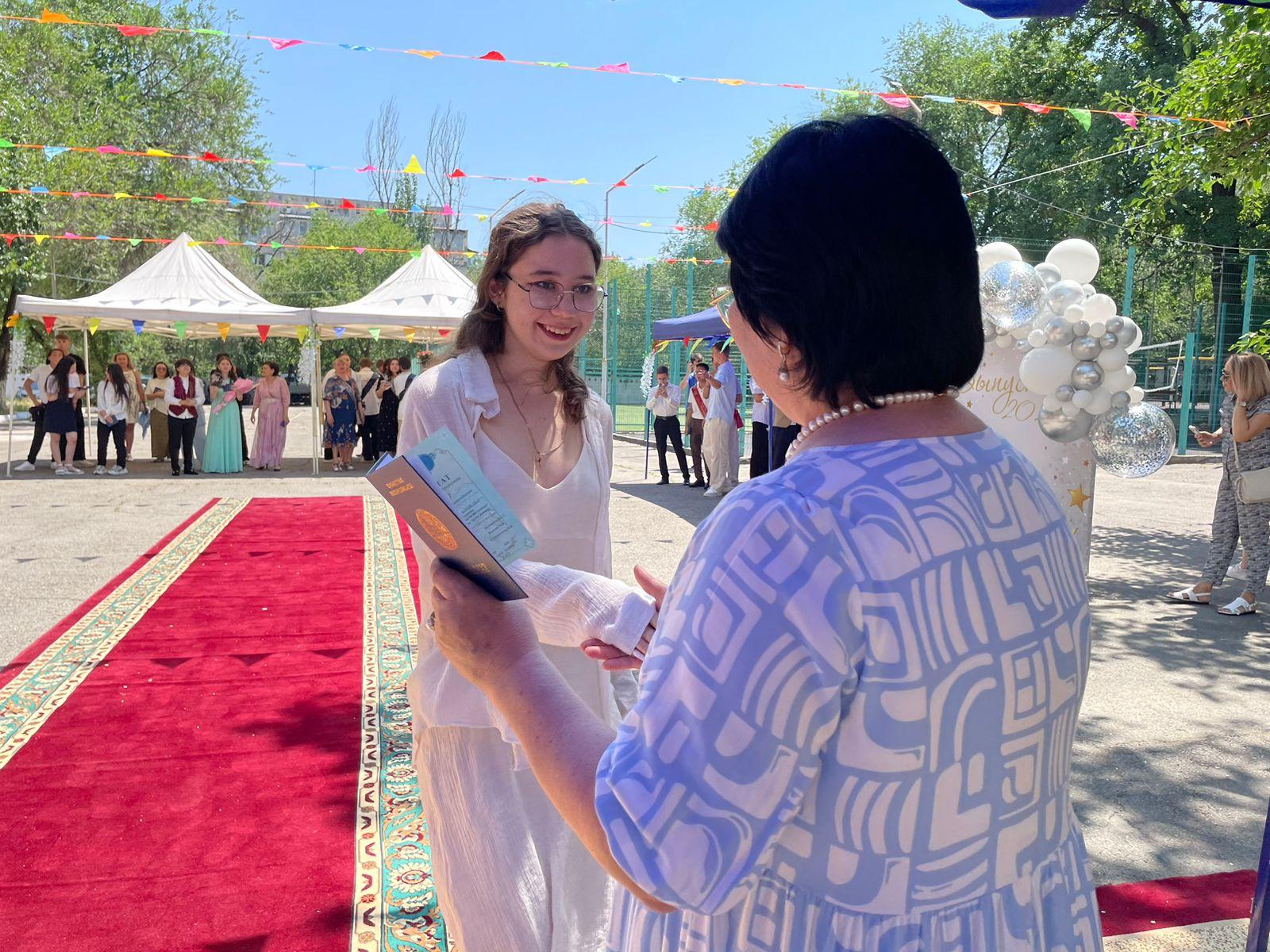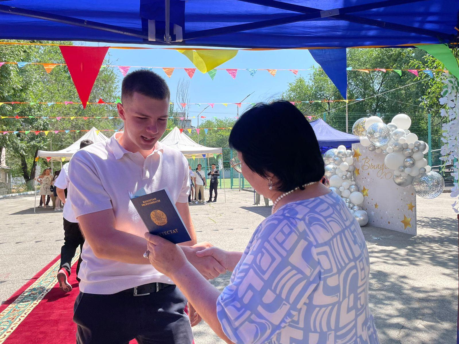 19 июня 2025 года в КГУ «Школа-лицей №28 им.М.Маметовой» состоялось торжественное мероприятие, посвящённое вручению аттестатов выпускникам 2025 года. Этот день – итог огромного пути, наполненного знаниями, трудами, победами и открытиями. Мы с гордостью провожаем наших учеников в новую, взрослую жизнь. Позади школьные годы, впереди – большие мечты, университеты, профессии и новые горизонты! С поздравительным словом к выпускникам обратилась директор Медетбекова А.Т.: «Құрметті мектеп бітіруші түлектер, қадірлі ата-аналар, ұстаздар, қонақтар! Бүгін ерекше салтанатты күн! Сіздерді үлкен өмірге шығарып салғалы отырмыз. Сегодня – особенный день, торжественный и волнительный. Мы провожаем в большую, самостоятельную жизнь наших выпускников – сильных, умных, талантливых и уже таких взрослых. Этот день – не просто итог ещё одного учебного года. Это завершение важного этапа в жизни каждого из вас, дорогие выпускники. За плечами — годы, наполненные трудами, открытиями, победами и, конечно, поддержкой близких. Мы вместе с вами проходили через трудности и радовались успехам. И сегодня вы стоите здесь — уверенные, с горящими глазами, готовые к новому пути. Позади осталась школьная пора – время, когда вы учились не только математике, физике и литературе, но и дружбе, взаимопомощи, ответственности.