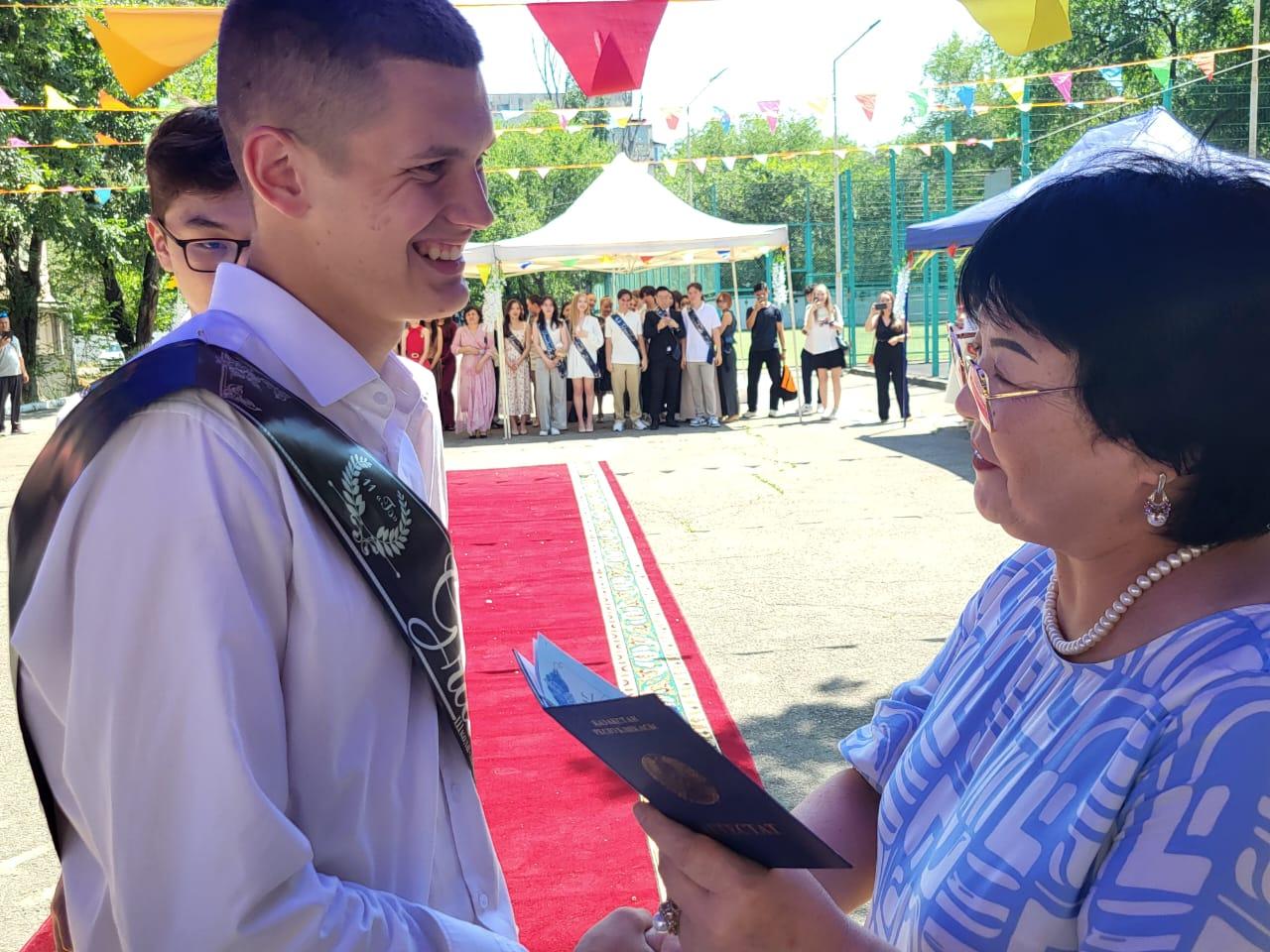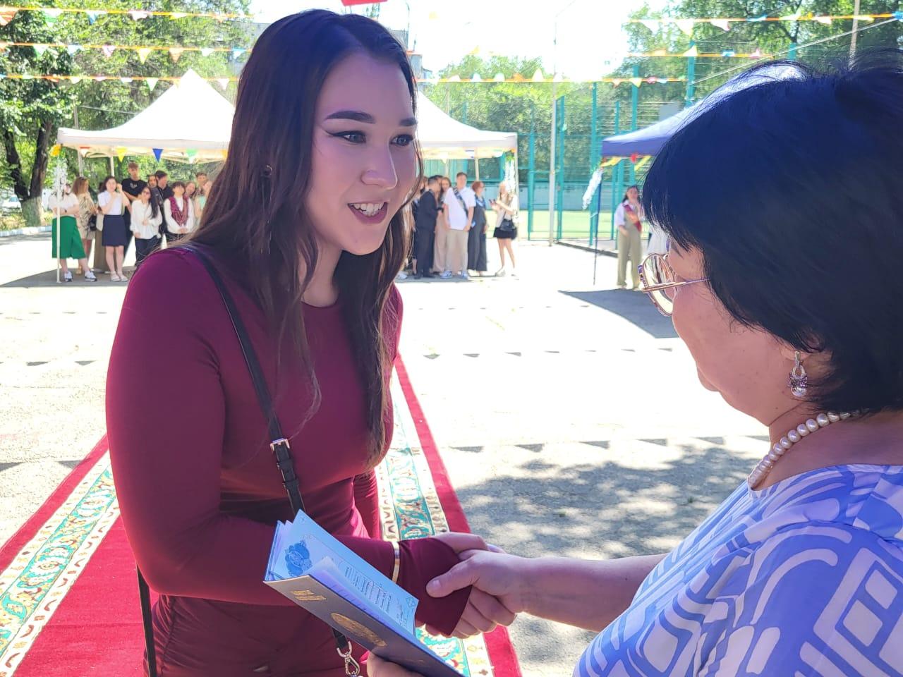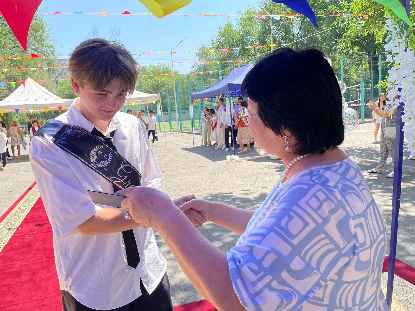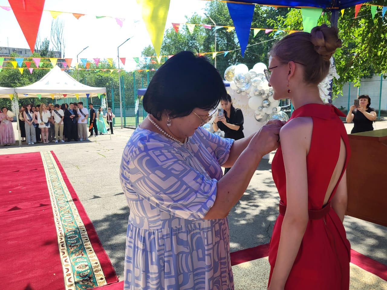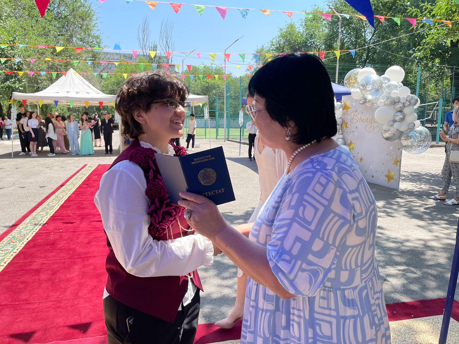 19 июня 2025 года в КГУ «Школа-лицей №28 им.М.Маметовой» состоялось торжественное мероприятие, посвящённое вручению аттестатов выпускникам 2025 года. Этот день – итог огромного пути, наполненного знаниями, трудами, победами и открытиями. Мы с гордостью провожаем наших учеников в новую, взрослую жизнь. Позади школьные годы, впереди – большие мечты, университеты, профессии и новые горизонты! С поздравительным словом к выпускникам обратилась директор Медетбекова А.Т.: «Құрметті мектеп бітіруші түлектер, қадірлі ата-аналар, ұстаздар, қонақтар! Бүгін ерекше салтанатты күн! Сіздерді үлкен өмірге шығарып салғалы отырмыз. Сегодня – особенный день, торжественный и волнительный. Мы провожаем в большую, самостоятельную жизнь наших выпускников – сильных, умных, талантливых и уже таких взрослых. Этот день – не просто итог ещё одного учебного года. Это завершение важного этапа в жизни каждого из вас, дорогие выпускники. За плечами — годы, наполненные трудами, открытиями, победами и, конечно, поддержкой близких. Мы вместе с вами проходили через трудности и радовались успехам. И сегодня вы стоите здесь — уверенные, с горящими глазами, готовые к новому пути. Позади осталась школьная пора – время, когда вы учились не только математике, физике и литературе, но и дружбе, взаимопомощи, ответственности.