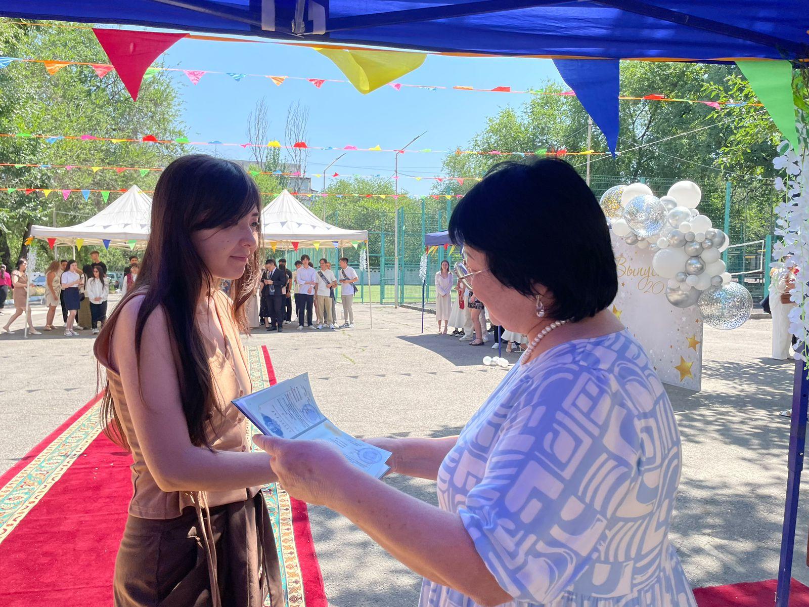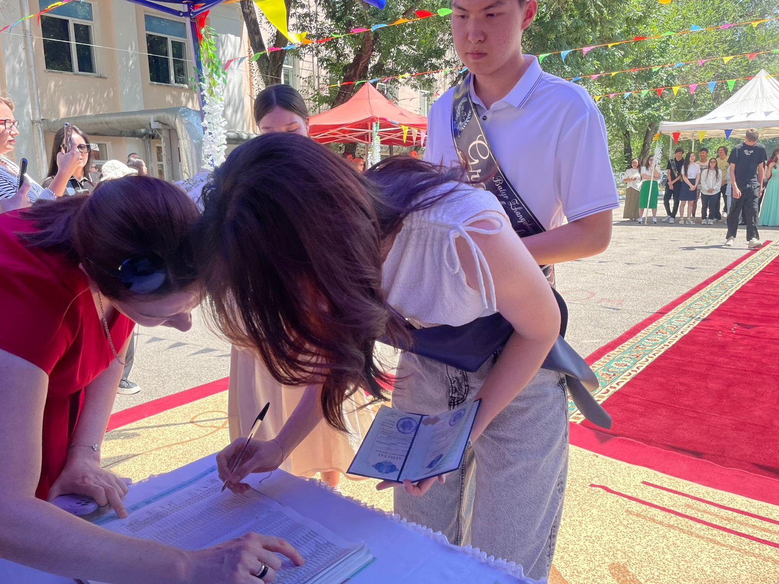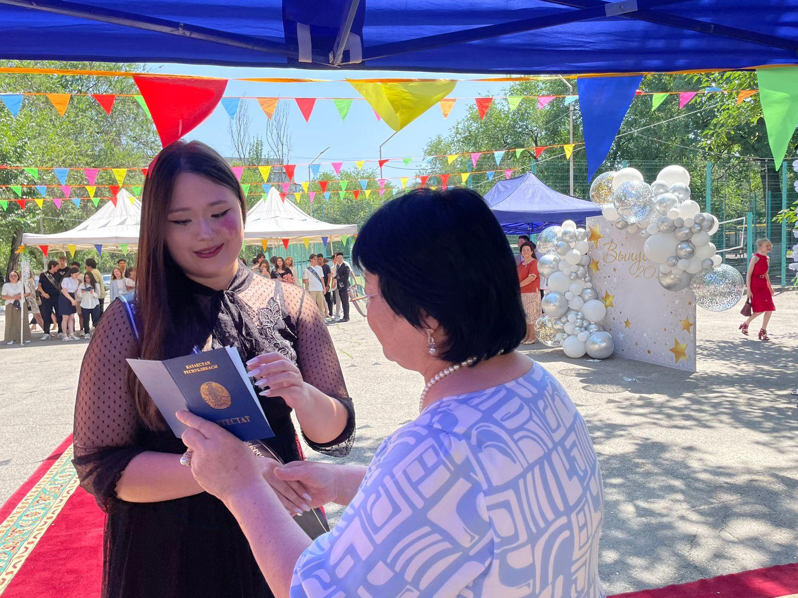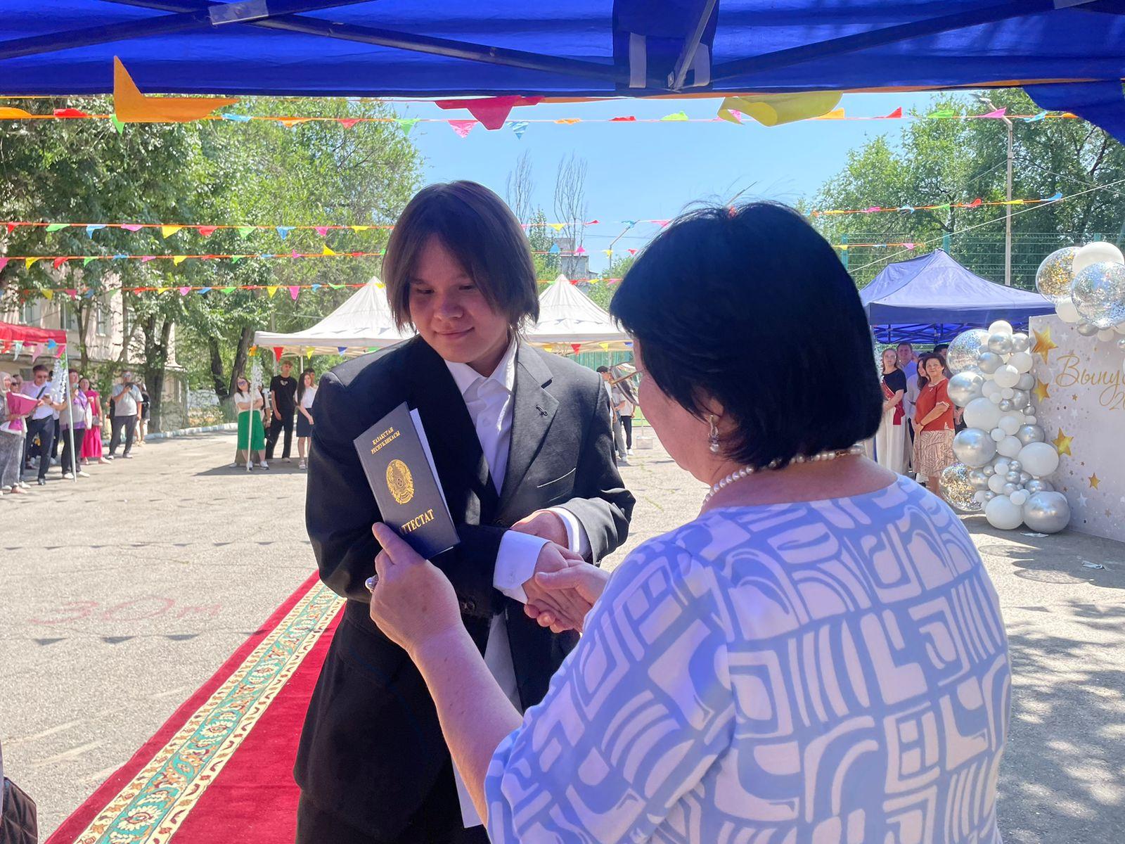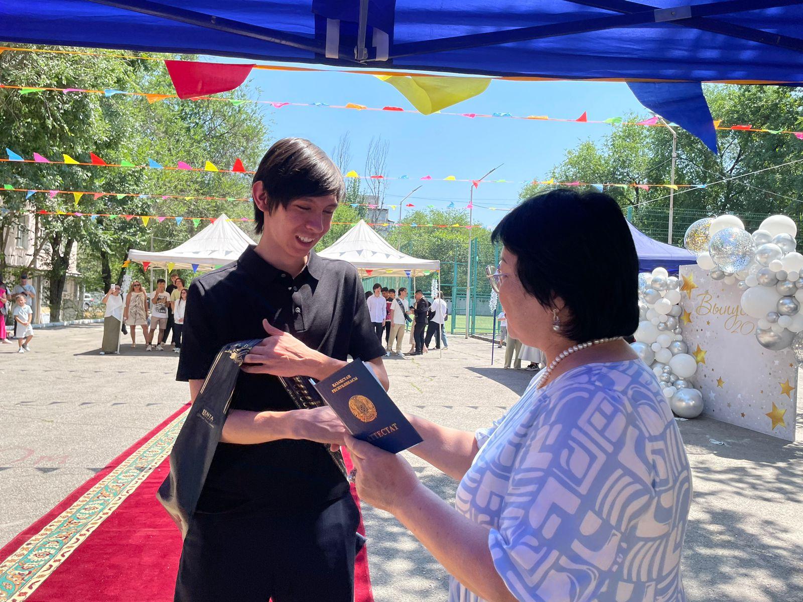 19 июня 2025 года в КГУ «Школа-лицей №28 им.М.Маметовой» состоялось торжественное мероприятие, посвящённое вручению аттестатов выпускникам 2025 года. Этот день – итог огромного пути, наполненного знаниями, трудами, победами и открытиями. Мы с гордостью провожаем наших учеников в новую, взрослую жизнь. Позади школьные годы, впереди – большие мечты, университеты, профессии и новые горизонты! С поздравительным словом к выпускникам обратилась директор Медетбекова А.Т.: «Құрметті мектеп бітіруші түлектер, қадірлі ата-аналар, ұстаздар, қонақтар! Бүгін ерекше салтанатты күн! Сіздерді үлкен өмірге шығарып салғалы отырмыз. Сегодня – особенный день, торжественный и волнительный. Мы провожаем в большую, самостоятельную жизнь наших выпускников – сильных, умных, талантливых и уже таких взрослых. Этот день – не просто итог ещё одного учебного года. Это завершение важного этапа в жизни каждого из вас, дорогие выпускники. За плечами — годы, наполненные трудами, открытиями, победами и, конечно, поддержкой близких. Мы вместе с вами проходили через трудности и радовались успехам. И сегодня вы стоите здесь — уверенные, с горящими глазами, готовые к новому пути. Позади осталась школьная пора – время, когда вы учились не только математике, физике и литературе, но и дружбе, взаимопомощи, ответственности.