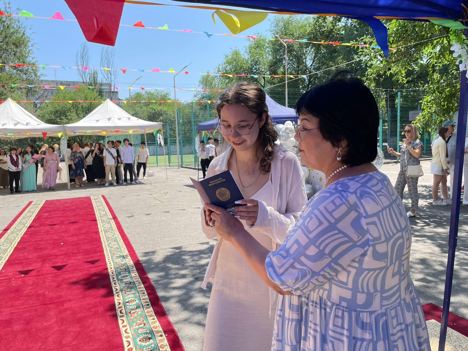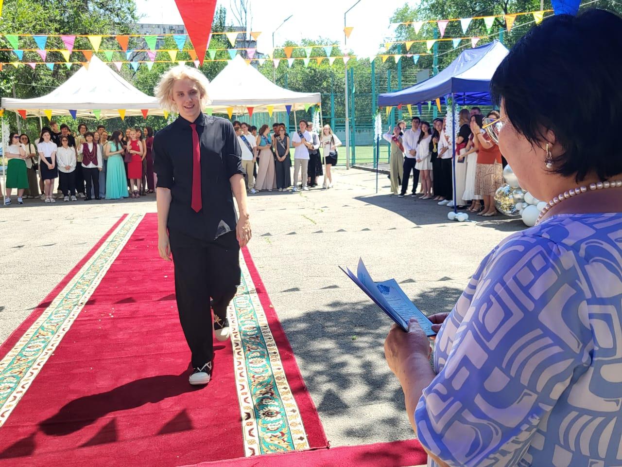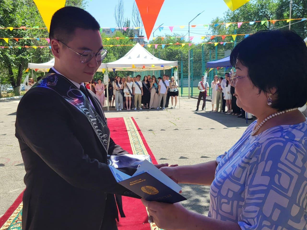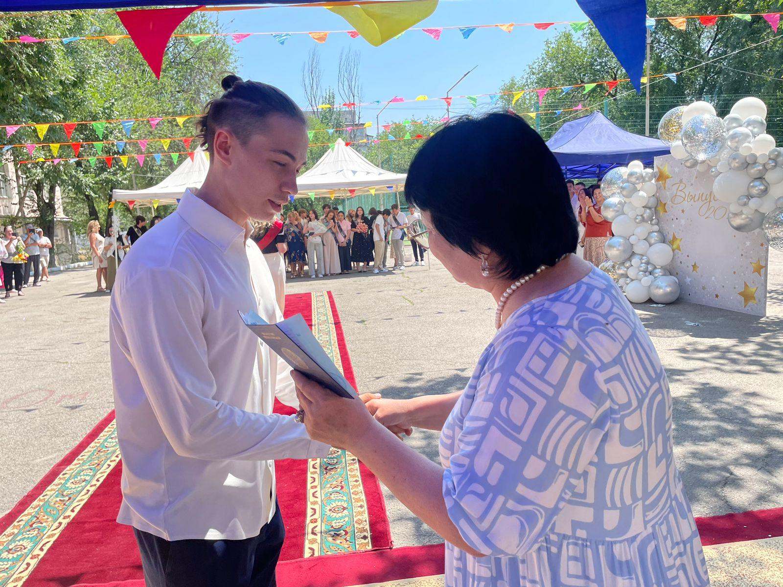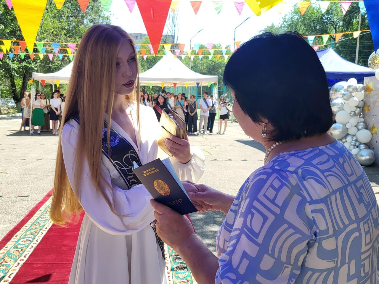19 июня 2025 года в КГУ «Школа-лицей №28 им.М.Маметовой» состоялось торжественное мероприятие, посвящённое вручению аттестатов выпускникам 2025 года. Этот день – итог огромного пути, наполненного знаниями, трудами, победами и открытиями. Мы с гордостью провожаем наших учеников в новую, взрослую жизнь. Позади школьные годы, впереди – большие мечты, университеты, профессии и новые горизонты! С поздравительным словом к выпускникам обратилась директор Медетбекова А.Т.: «Құрметті мектеп бітіруші түлектер, қадірлі ата-аналар, ұстаздар, қонақтар! Бүгін ерекше салтанатты күн! Сіздерді үлкен өмірге шығарып салғалы отырмыз. Сегодня – особенный день, торжественный и волнительный. Мы провожаем в большую, самостоятельную жизнь наших выпускников – сильных, умных, талантливых и уже таких взрослых. Этот день – не просто итог ещё одного учебного года. Это завершение важного этапа в жизни каждого из вас, дорогие выпускники. За плечами — годы, наполненные трудами, открытиями, победами и, конечно, поддержкой близких. Мы вместе с вами проходили через трудности и радовались успехам. И сегодня вы стоите здесь — уверенные, с горящими глазами, готовые к новому пути. Позади осталась школьная пора – время, когда вы учились не только математике, физике и литературе, но и дружбе, взаимопомощи, ответственности.