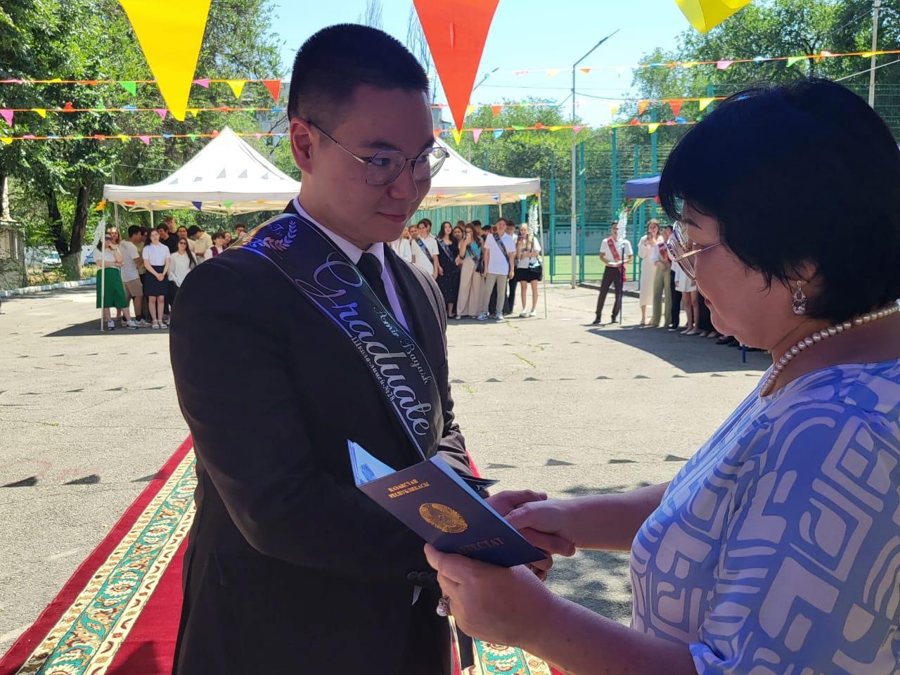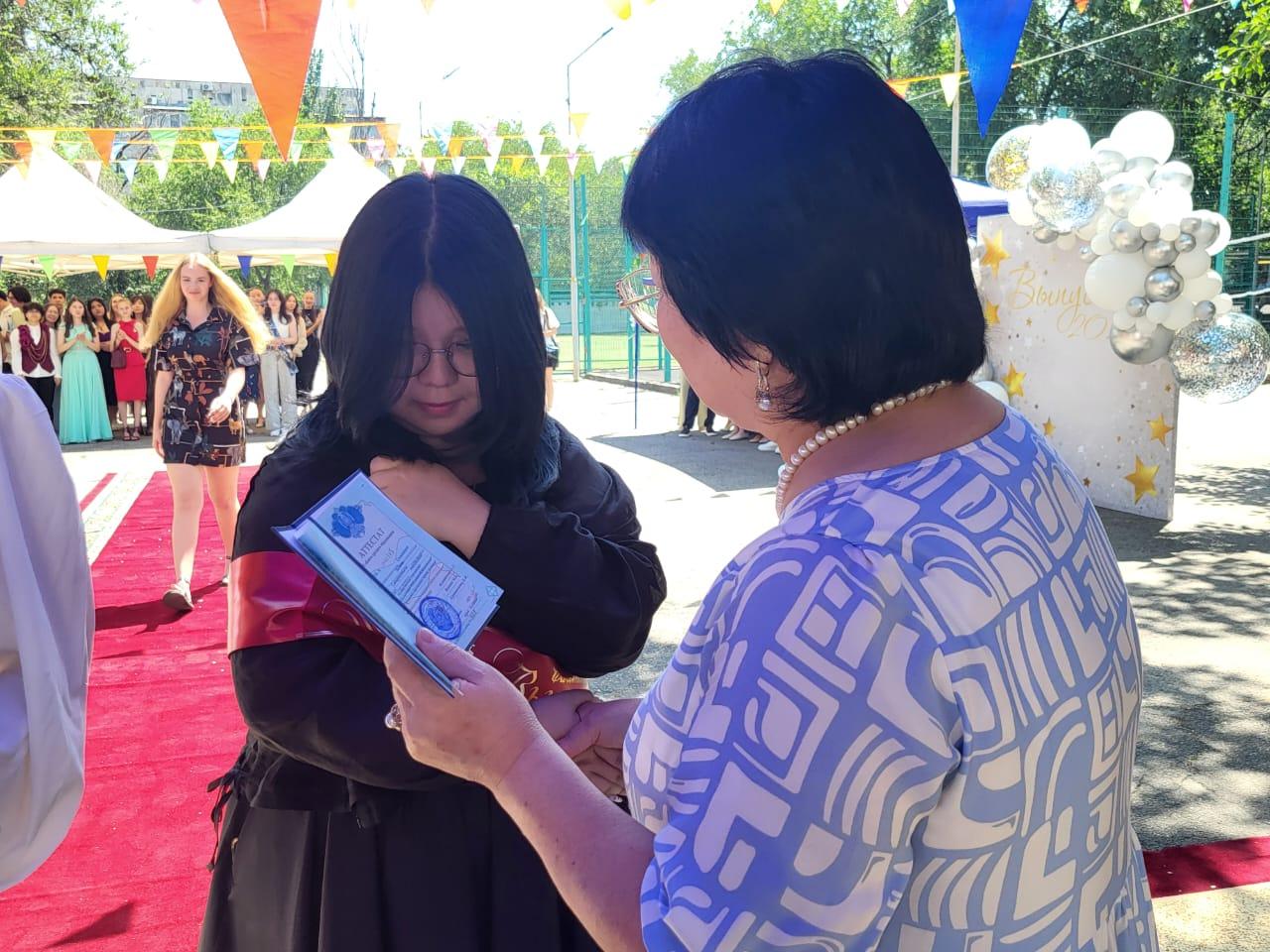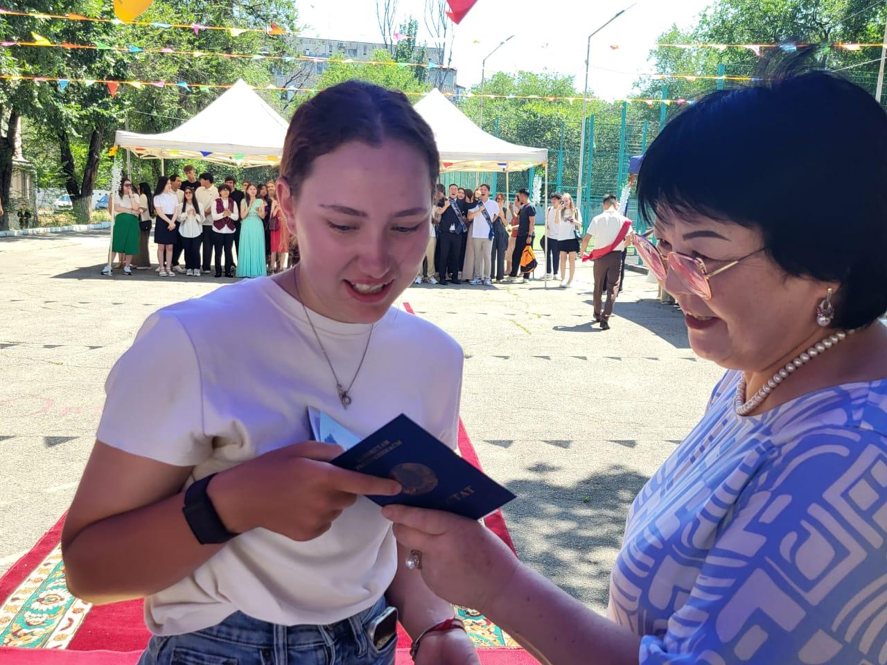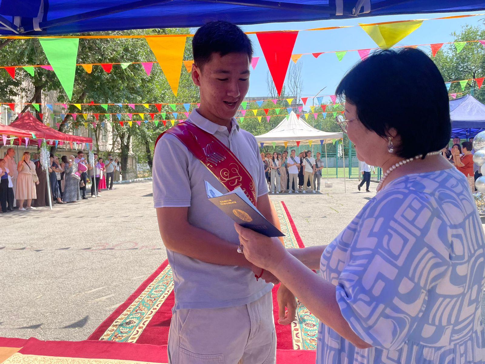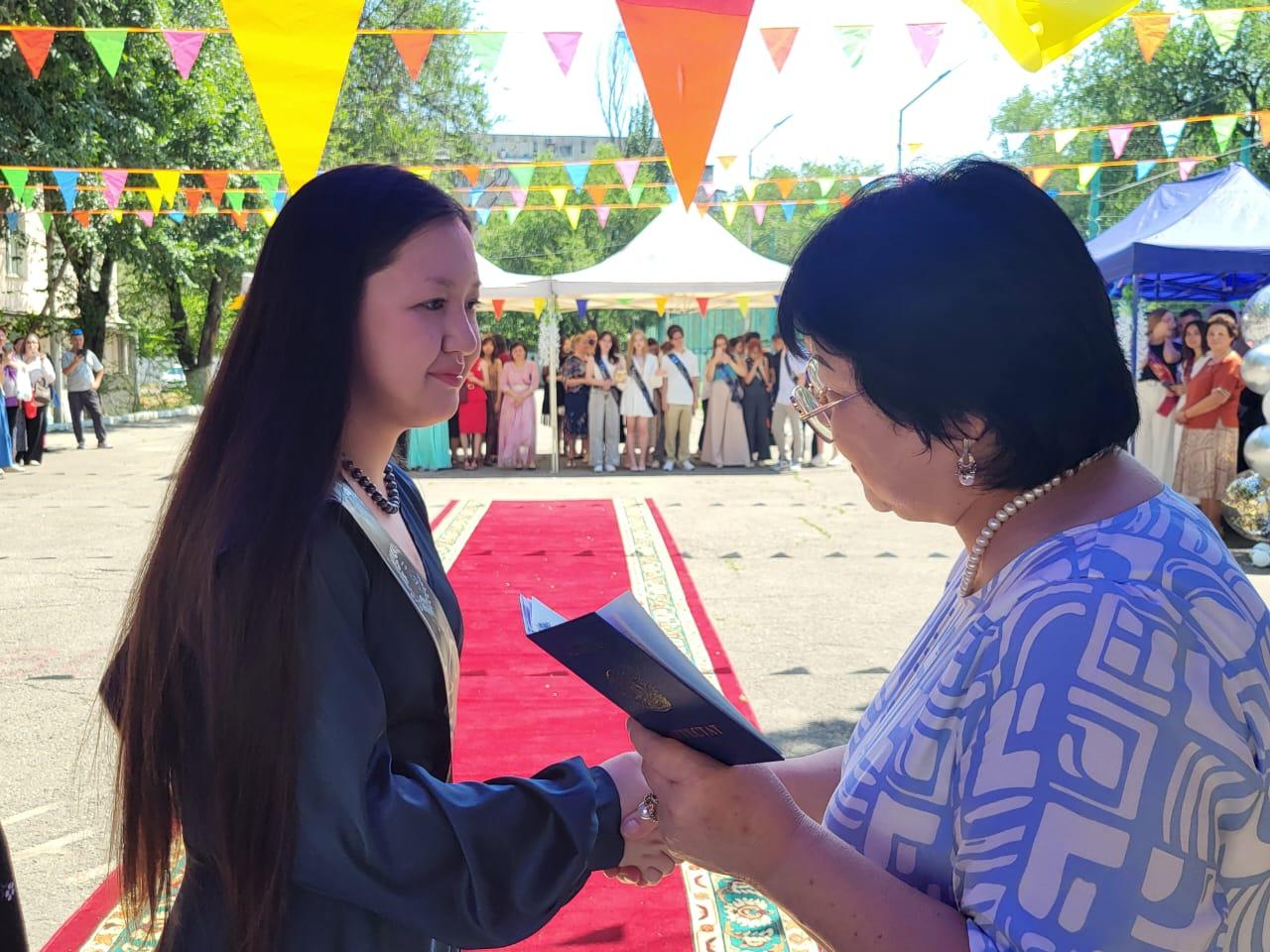 19 июня 2025 года в КГУ «Школа-лицей №28 им.М.Маметовой» состоялось торжественное мероприятие, посвящённое вручению аттестатов выпускникам 2025 года. Этот день – итог огромного пути, наполненного знаниями, трудами, победами и открытиями. Мы с гордостью провожаем наших учеников в новую, взрослую жизнь. Позади школьные годы, впереди – большие мечты, университеты, профессии и новые горизонты! С поздравительным словом к выпускникам обратилась директор Медетбекова А.Т.: «Құрметті мектеп бітіруші түлектер, қадірлі ата-аналар, ұстаздар, қонақтар! Бүгін ерекше салтанатты күн! Сіздерді үлкен өмірге шығарып салғалы отырмыз. Сегодня – особенный день, торжественный и волнительный. Мы провожаем в большую, самостоятельную жизнь наших выпускников – сильных, умных, талантливых и уже таких взрослых. Этот день – не просто итог ещё одного учебного года. Это завершение важного этапа в жизни каждого из вас, дорогие выпускники. За плечами — годы, наполненные трудами, открытиями, победами и, конечно, поддержкой близких. Мы вместе с вами проходили через трудности и радовались успехам. И сегодня вы стоите здесь — уверенные, с горящими глазами, готовые к новому пути. Позади осталась школьная пора – время, когда вы учились не только математике, физике и литературе, но и дружбе, взаимопомощи, ответственности.