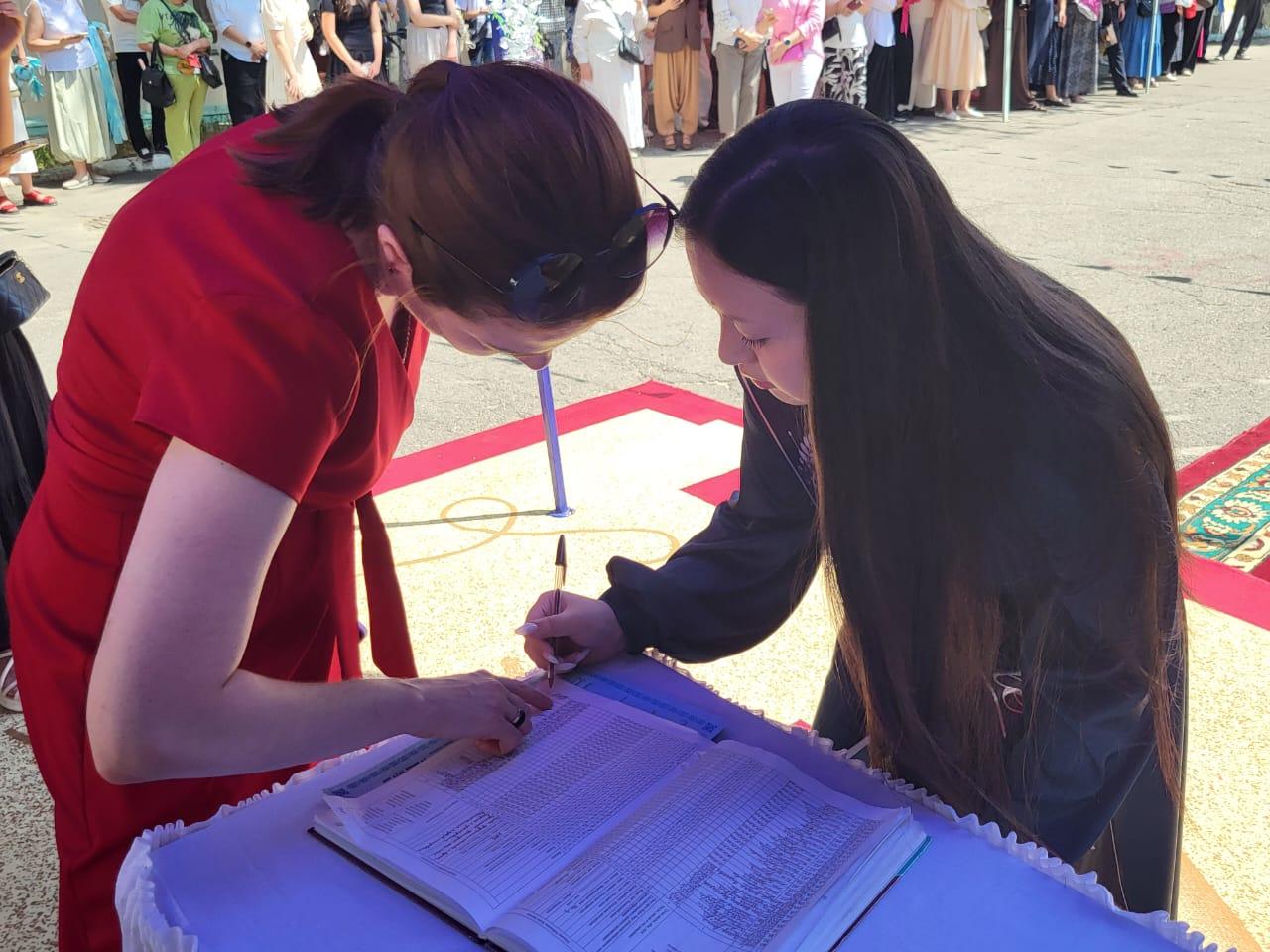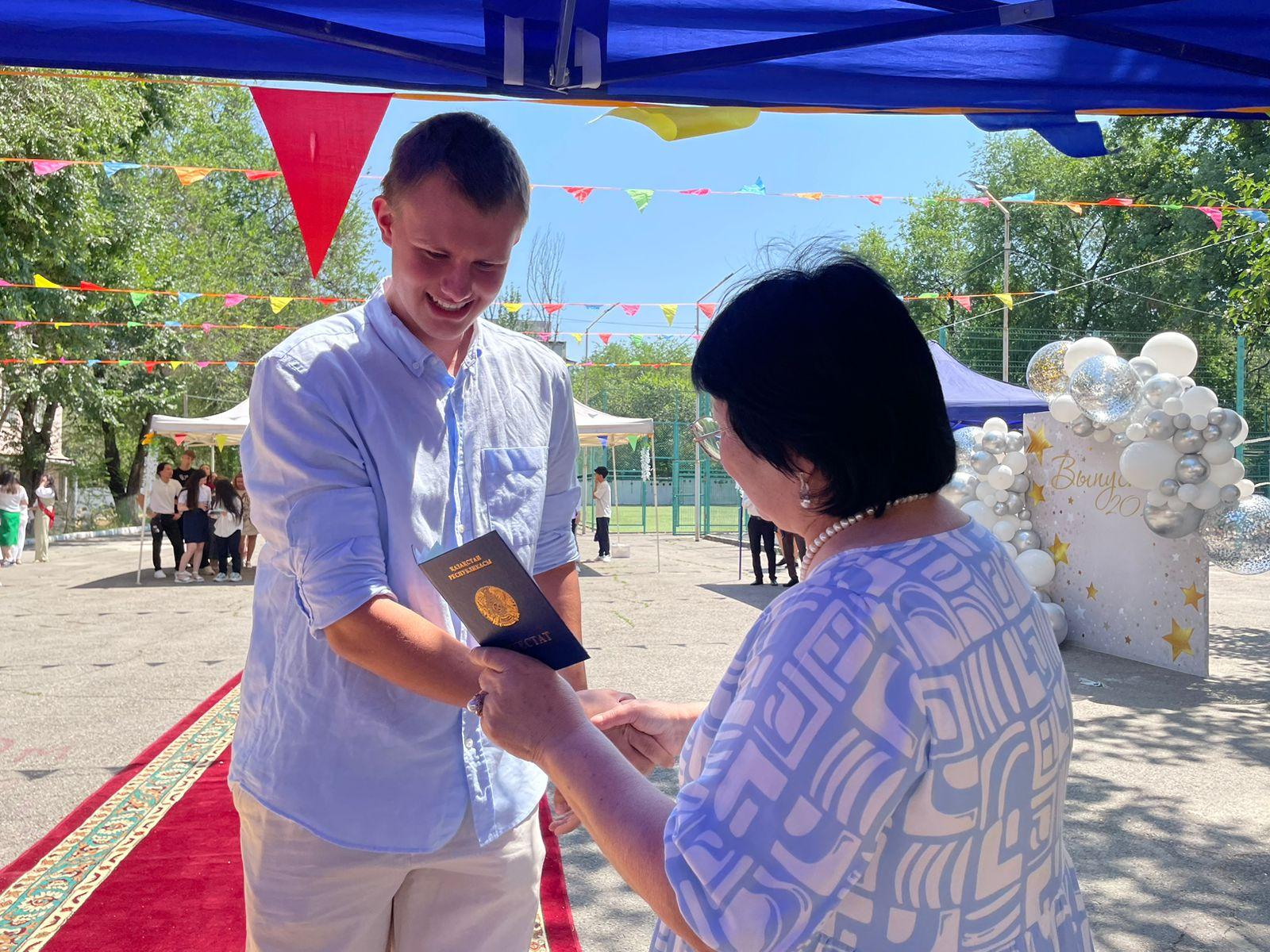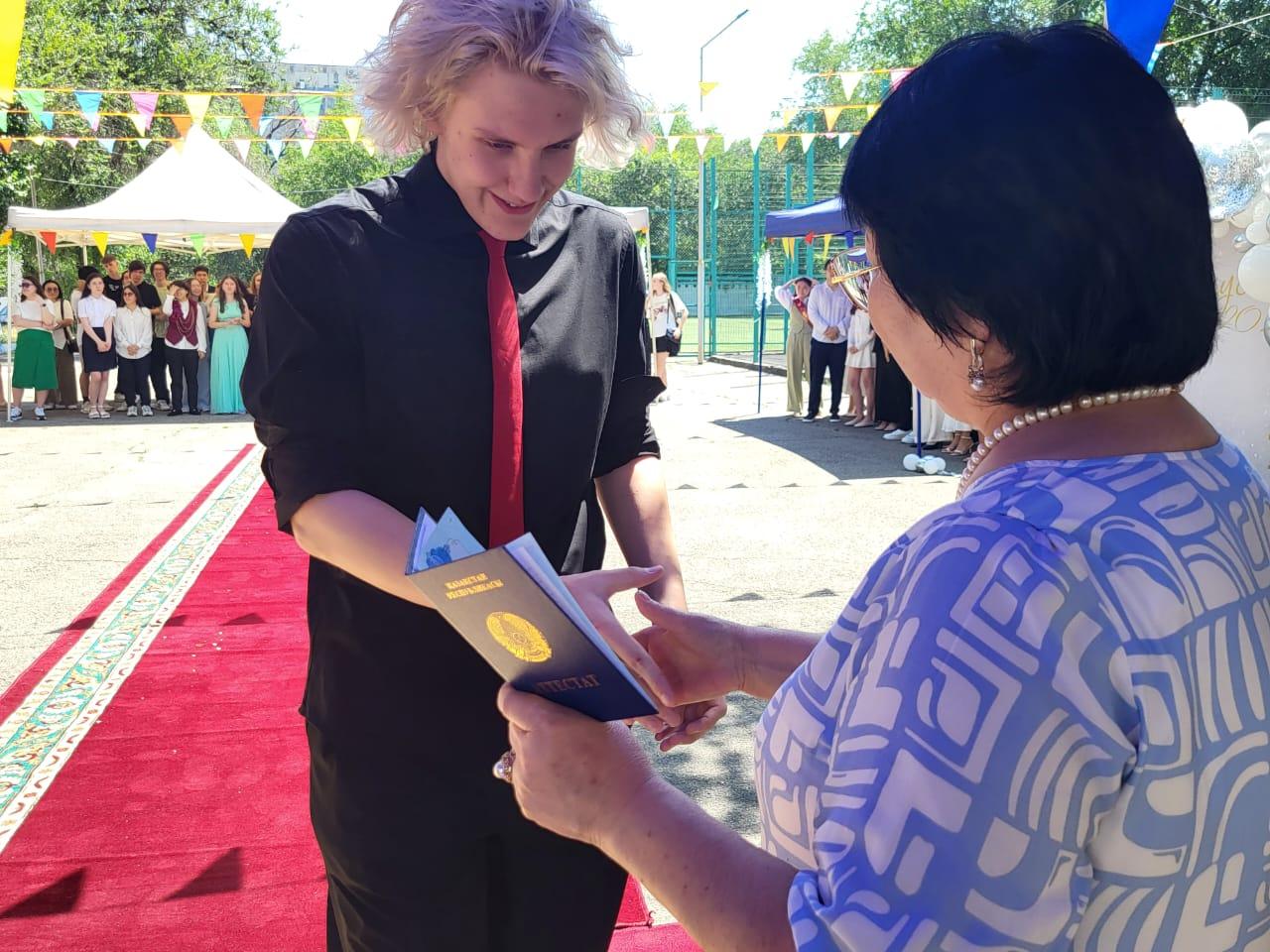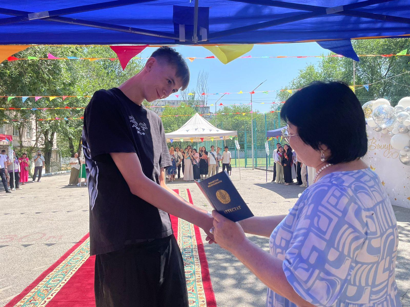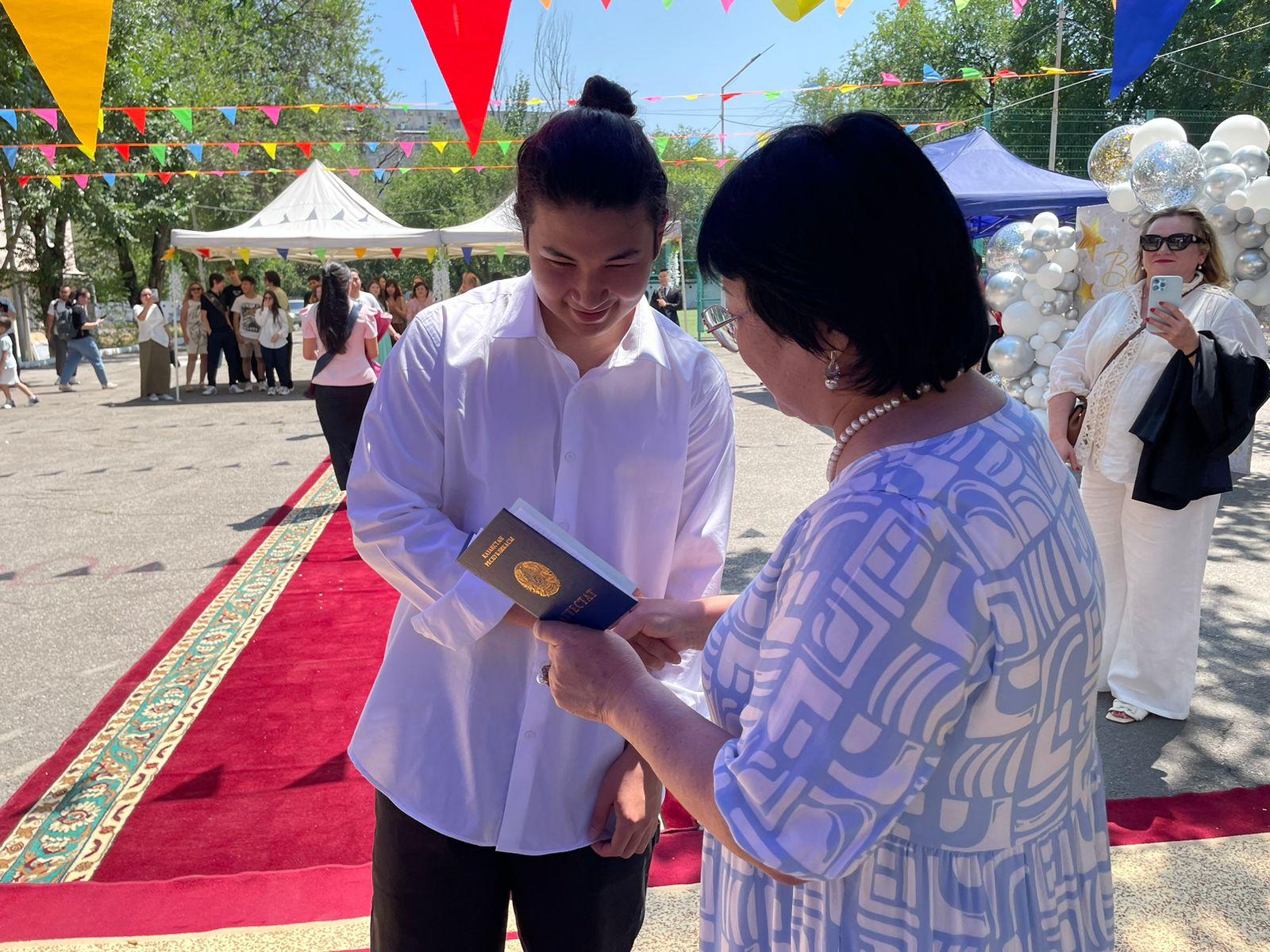 19 июня 2025 года в КГУ «Школа-лицей №28 им.М.Маметовой» состоялось торжественное мероприятие, посвящённое вручению аттестатов выпускникам 2025 года. Этот день – итог огромного пути, наполненного знаниями, трудами, победами и открытиями. Мы с гордостью провожаем наших учеников в новую, взрослую жизнь. Позади школьные годы, впереди – большие мечты, университеты, профессии и новые горизонты! С поздравительным словом к выпускникам обратилась директор Медетбекова А.Т.: «Құрметті мектеп бітіруші түлектер, қадірлі ата-аналар, ұстаздар, қонақтар! Бүгін ерекше салтанатты күн! Сіздерді үлкен өмірге шығарып салғалы отырмыз. Сегодня – особенный день, торжественный и волнительный. Мы провожаем в большую, самостоятельную жизнь наших выпускников – сильных, умных, талантливых и уже таких взрослых. Этот день – не просто итог ещё одного учебного года. Это завершение важного этапа в жизни каждого из вас, дорогие выпускники. За плечами — годы, наполненные трудами, открытиями, победами и, конечно, поддержкой близких. Мы вместе с вами проходили через трудности и радовались успехам. И сегодня вы стоите здесь — уверенные, с горящими глазами, готовые к новому пути. Позади осталась школьная пора – время, когда вы учились не только математике, физике и литературе, но и дружбе, взаимопомощи, ответственности.