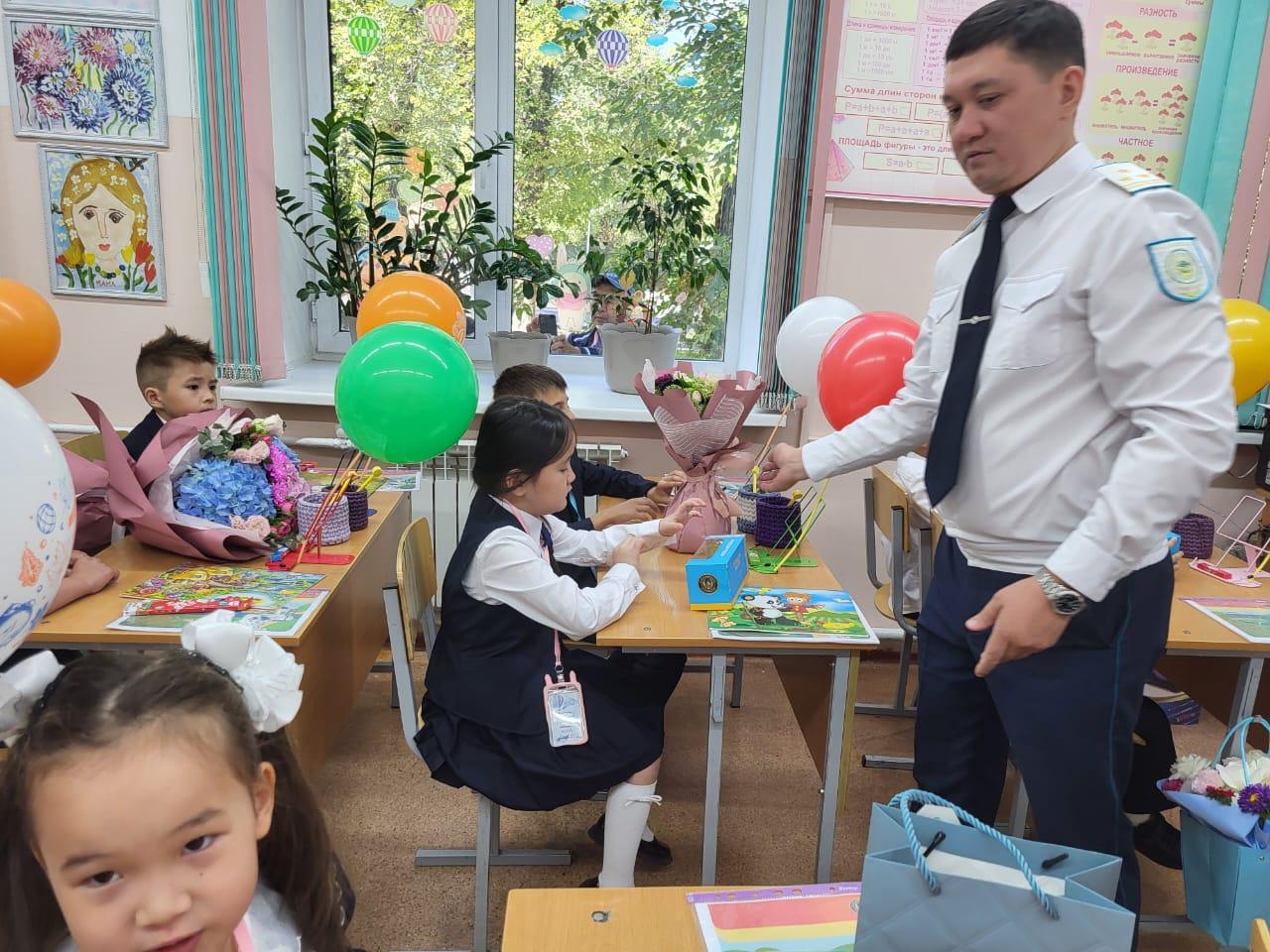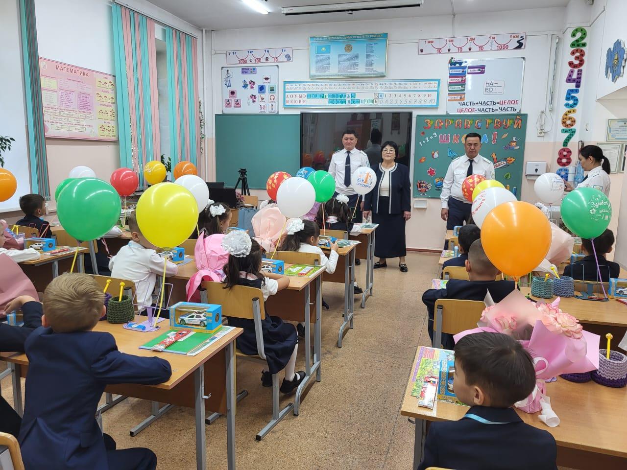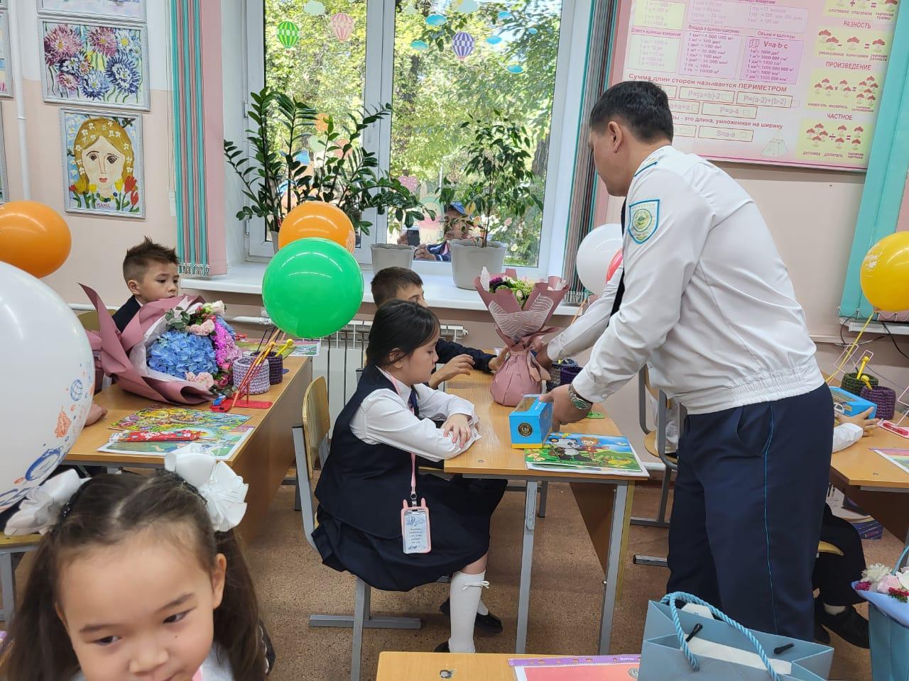 Сегодня в КГУ «Школа-лицей №28 им. М.Маметовой» прошёл первый урок – классный час, посвящённый Дню знаний под тёплой темой «Мектебім – мейірім мекені». Для наших первоклассников этот день стал особенно волнительным и значимым: они впервые познакомились со школой, со своим классом и учителем, сделали первый шаг в мир знаний! В этот день к нам в гости пришли сотрудники отдела ювенальной полиции и дорожной полиции. Они провели беседу о правилах дорожного движения, напомнив, как важно соблюдать ПДД с самого начала учебного года. Кроме того, ребята получили подарки — красочные раскраски "ПОЛИЦИЯ ЖӘНЕ БАЛАЛАР / ПОЛИЦИЯ И ДЕТИ. ҚАУІПСІЗДІКТІҢ НЕГІЗГІ ЕРЕЖЕЛЕРІ / ОСНОВНЫЕ ПРАВИЛА БЕЗОПАСНОСТИ", в которых главный герой и его друг Барсенок в простой и понятной форме объясняют детям, как правильно вести себя на дороге и в повседневной жизни, чтобы быть в безопасности. Мы благодарим сотрудников полиции за внимание, заботу и поддержку наших самых юных учеников. Такие уроки остаются в памяти и помогают формировать правильное отношение к безопасности с самого детства. С началом учебного года, дорогие первоклассники! Пусть ваш путь к знаниям будет интересным, добрым и безопасным!