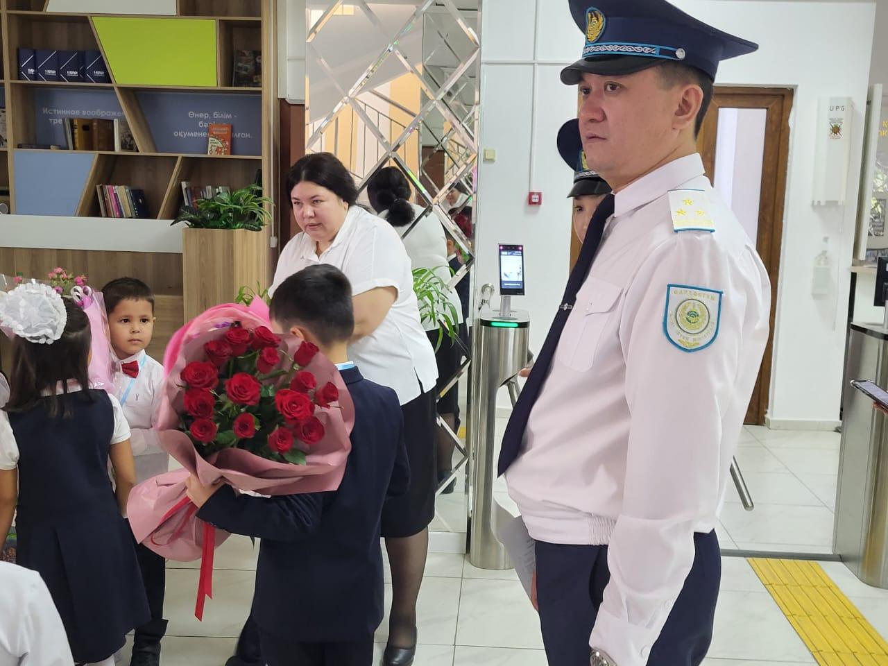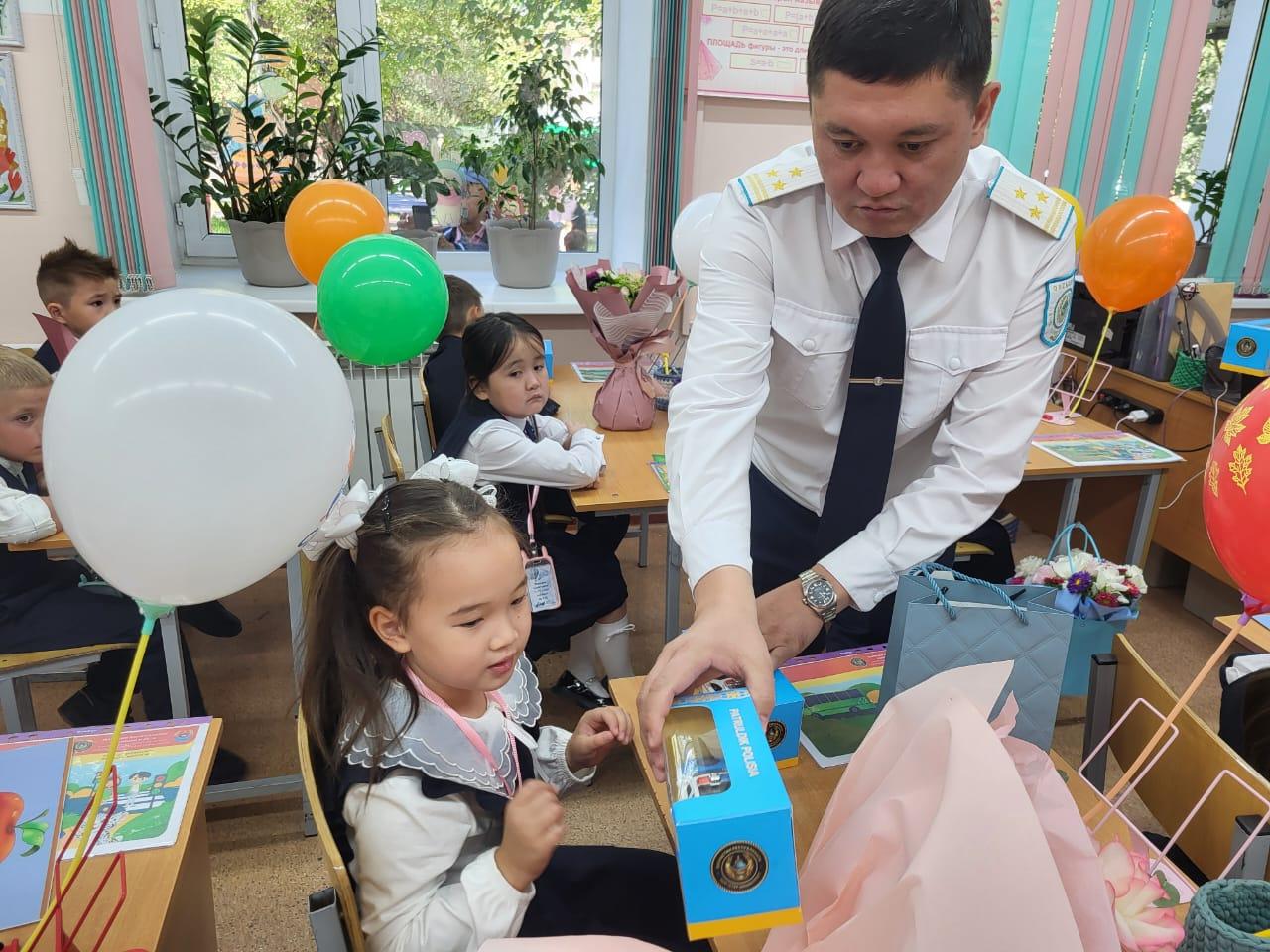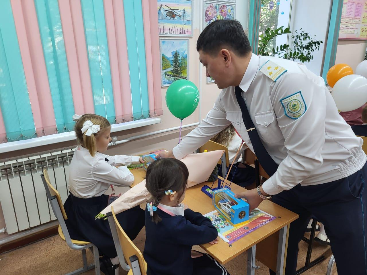 Сегодня в КГУ «Школа-лицей №28 им. М.Маметовой» прошёл первый урок – классный час, посвящённый Дню знаний под тёплой темой «Мектебім – мейірім мекені». Для наших первоклассников этот день стал особенно волнительным и значимым: они впервые познакомились со школой, со своим классом и учителем, сделали первый шаг в мир знаний! В этот день к нам в гости пришли сотрудники отдела ювенальной полиции и дорожной полиции. Они провели беседу о правилах дорожного движения, напомнив, как важно соблюдать ПДД с самого начала учебного года. Кроме того, ребята получили подарки — красочные раскраски "ПОЛИЦИЯ ЖӘНЕ БАЛАЛАР / ПОЛИЦИЯ И ДЕТИ. ҚАУІПСІЗДІКТІҢ НЕГІЗГІ ЕРЕЖЕЛЕРІ / ОСНОВНЫЕ ПРАВИЛА БЕЗОПАСНОСТИ", в которых главный герой и его друг Барсенок в простой и понятной форме объясняют детям, как правильно вести себя на дороге и в повседневной жизни, чтобы быть в безопасности. Мы благодарим сотрудников полиции за внимание, заботу и поддержку наших самых юных учеников. Такие уроки остаются в памяти и помогают формировать правильное отношение к безопасности с самого детства. С началом учебного года, дорогие первоклассники! Пусть ваш путь к знаниям будет интересным, добрым и безопасным!