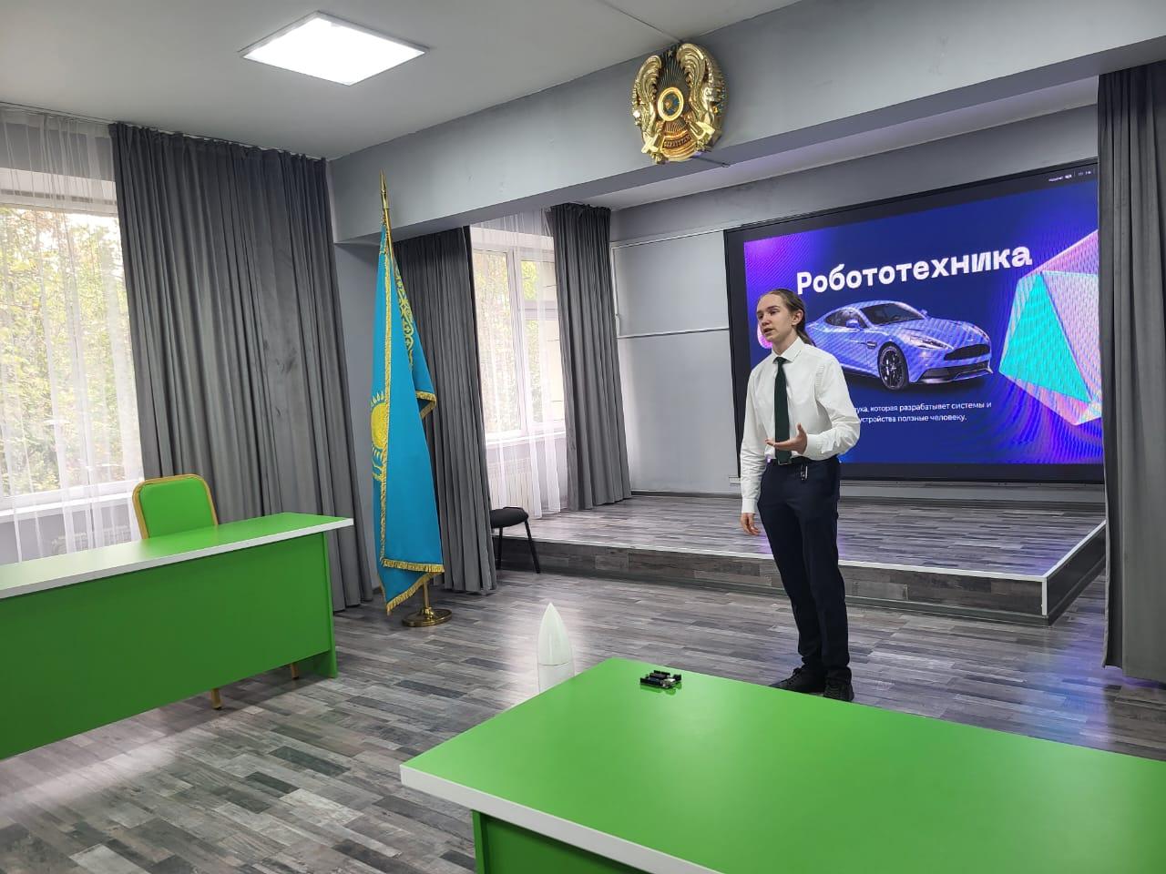 Андрей бесінші сынып оқушыларын мектептік зерттеу жобаларының мысалдарымен таныстырып, зерттеулерге идеялардың қалай пайда болатынын, сұрақ қоюдың және оларға жауап іздеудің маңыздылығын түсіндірді. Балалардың ерекше қызығушылығын робототехника мен жасанды интеллект тақырыбы тудырды: жоғары сынып оқушысы қазіргі технологиялардың қалай ақылды машиналар мен бағдарламалар жасауға көмектесетінін көрсетті, олар оқу мен өмірде көмекші бола алады.