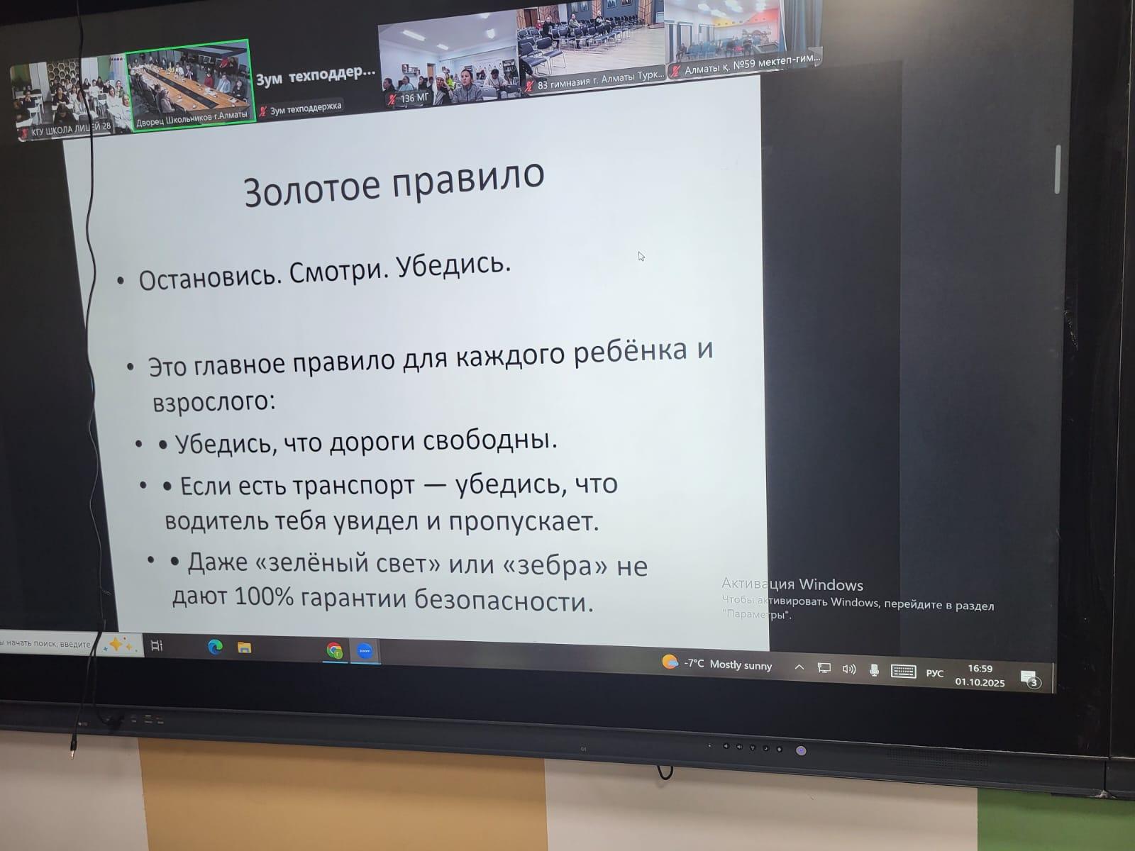 2025 жылғы 1 қазан күні балалардың қауіпсіздігі мәселелеріне арналған «Балалардың қауіпсіздігі – бәрімізге ортақ міндет» атты қалалық онлайн ата-аналар жиналысы өтті.