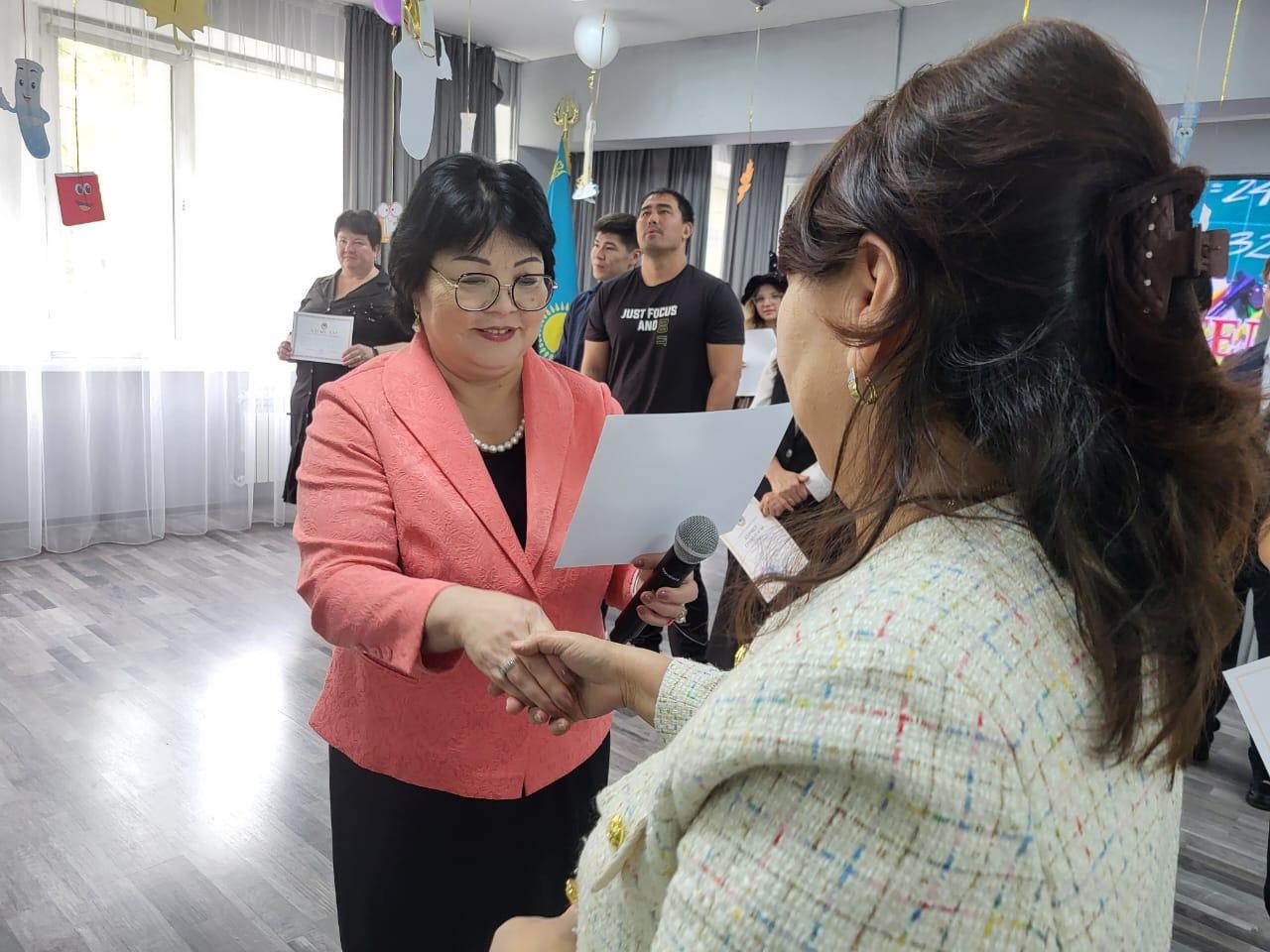 Құттықтаудан кейін марапаттау рәсімі өтті. Білім беру саласындағы жоғары жетістіктері, мамандыққа адалдығы мен білімге қосқан үлесі үшін мектептің үздік мұғалімдері Білім басқармасы, Аудандық білім бөлімі және «AMANAT» партиясы тарапынан Құрмет грамоталарымен және Алғыс хаттармен марапатталды.