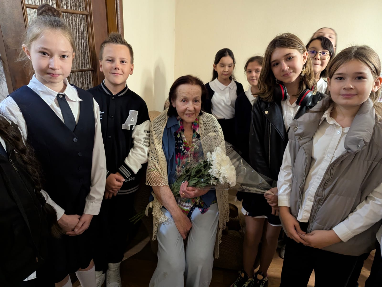 Ученики 6 «В» класса вместе с классным руководителем поздравили с Днём пожилых людей и с Днём учителя уважаемого педагога, ветерана труда – Базильскую Галину Владимировну! 🌸Мы выражаем глубокую благодарность за её многолетний труд, мудрость и доброту, подаренные детям. 🙏 Благодаря таким учителям, как Галина Владимировна, в сердцах учеников живёт любовь к знаниям и уважение к школе.