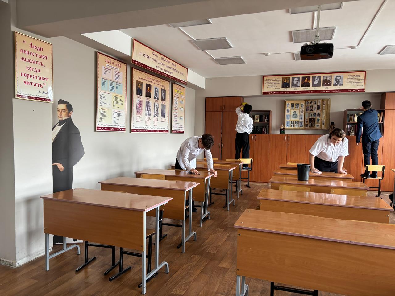 🧹 Акция барысында оқушылар мен ұстаздар оқу кабинеттерін жинап, тазалық жұмыстарын жүргізді.