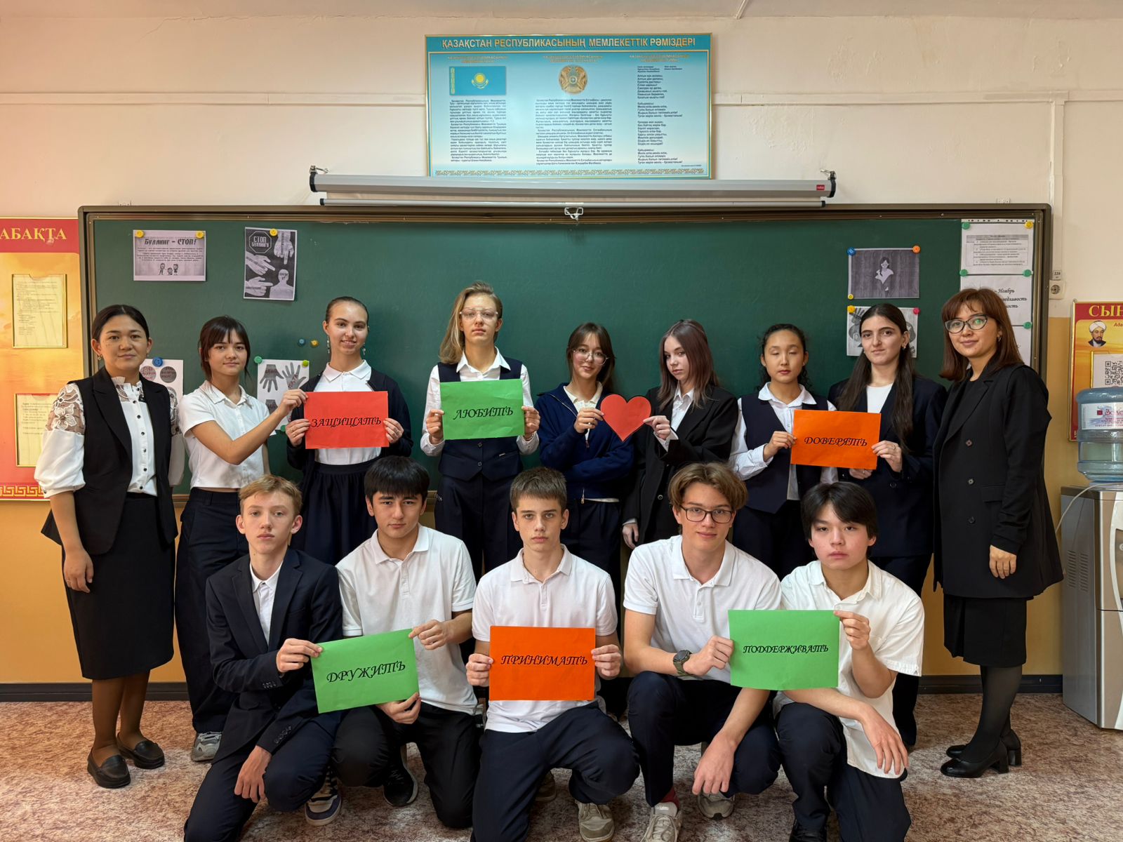 Кездесу соңында оқушылар #СТОПБуллинг челленджіне қатысып, ауыр сөздерді қолдаушы сөздерге алмастырды: