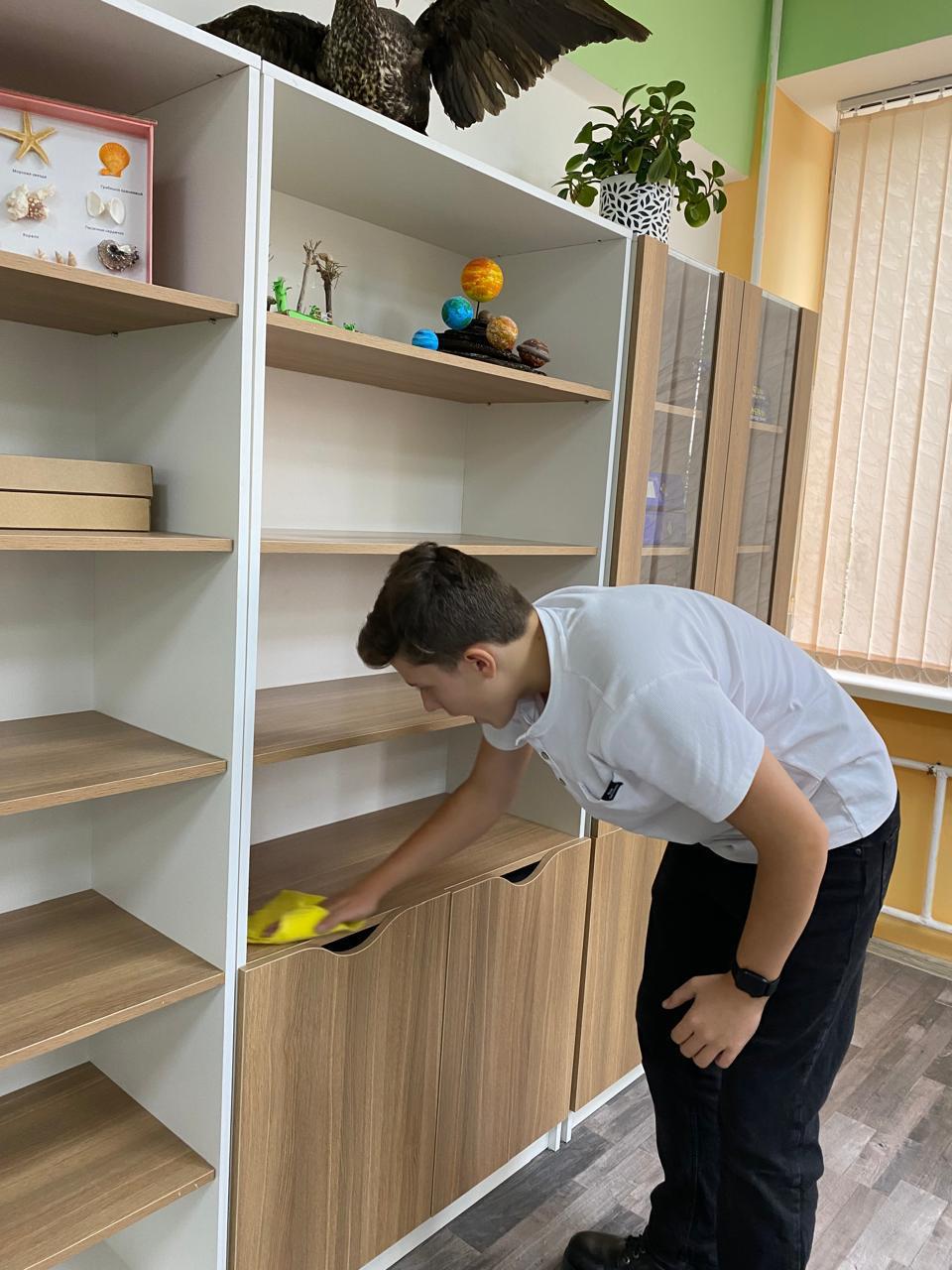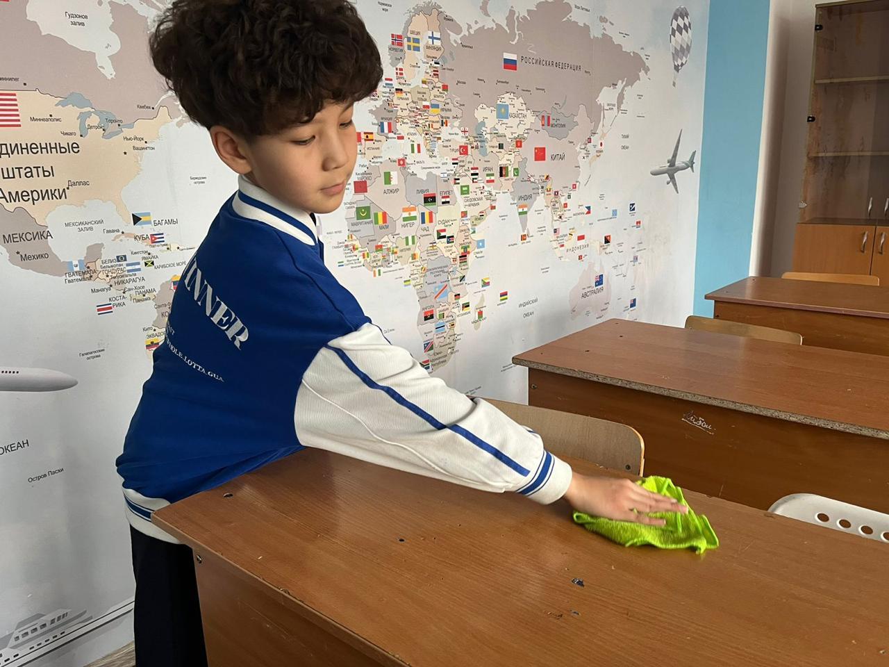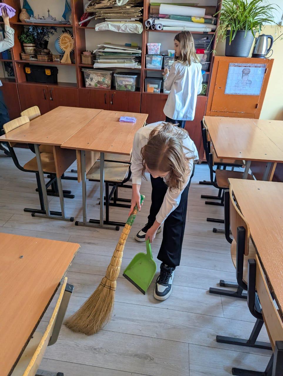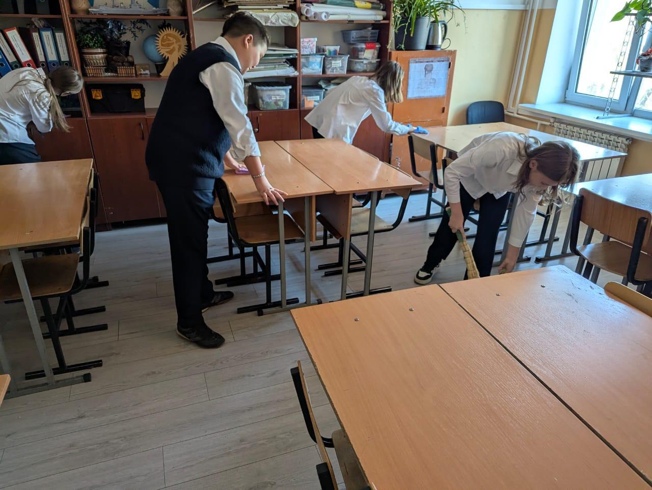 Ученики убирали свои учебные кабинеты, демонстрируя важность организованности и чистоты.