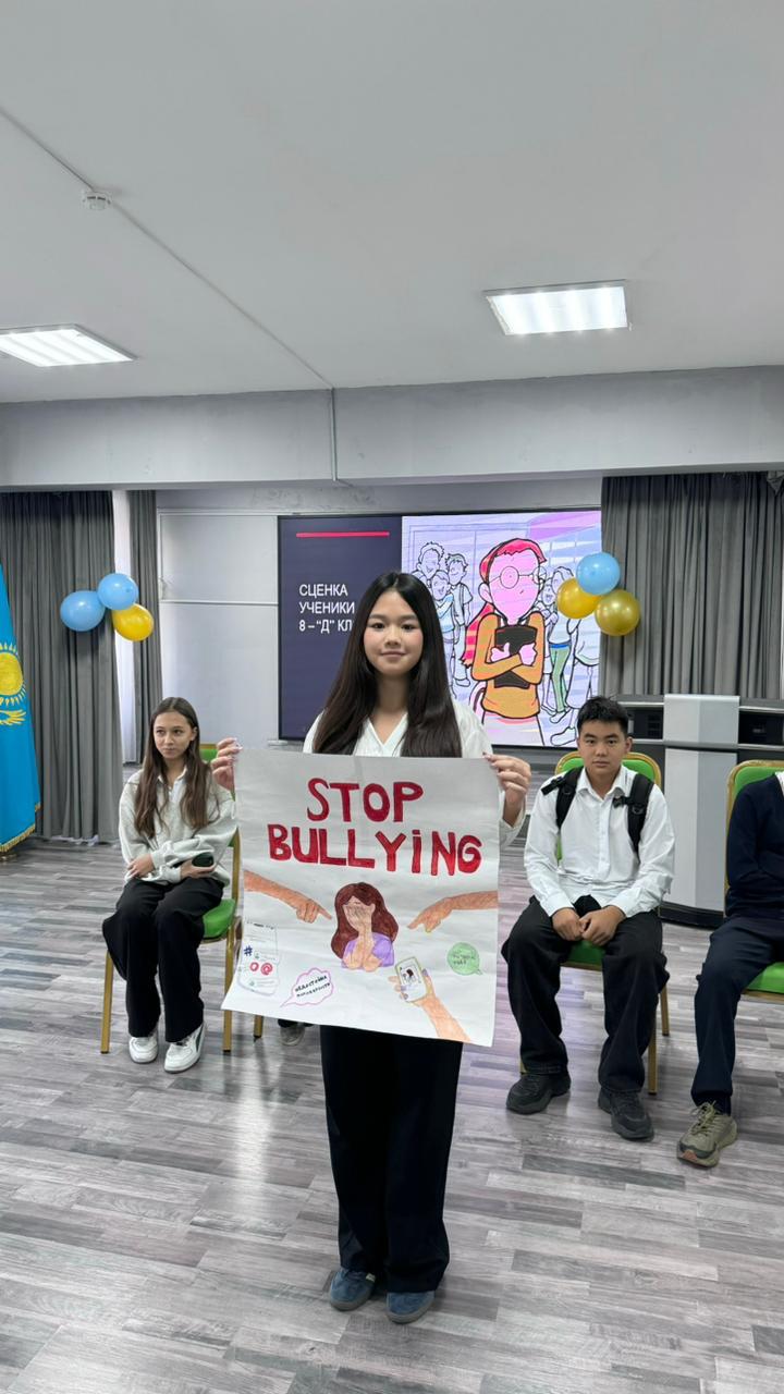 Балалар буллингтің себептері мен салдарын көрсететін плакат жасап, қорғады. Іс-шара соңында әркімнің буллингтің алдын алуда өз рөлі бар екені түсіндірілді.
