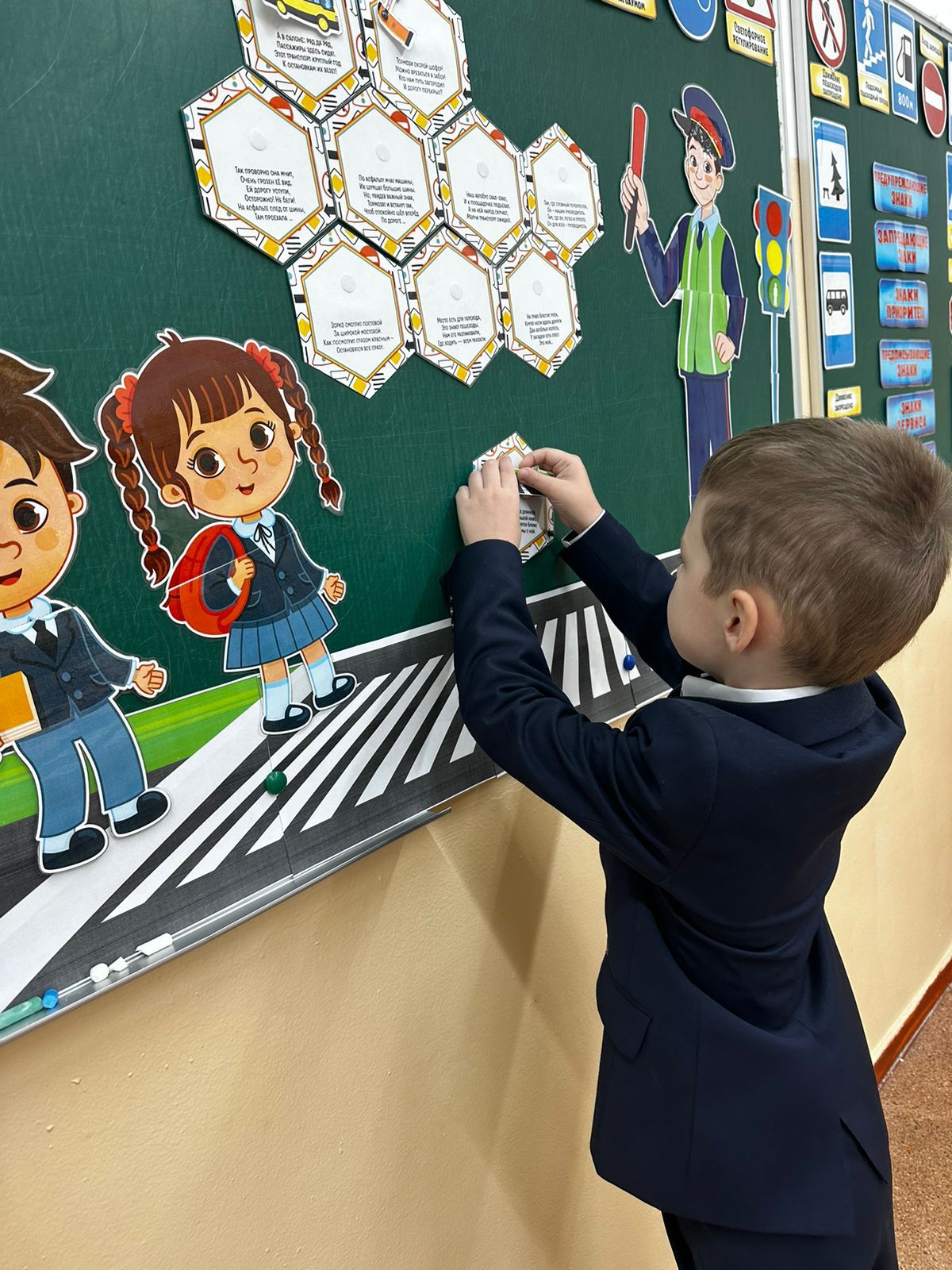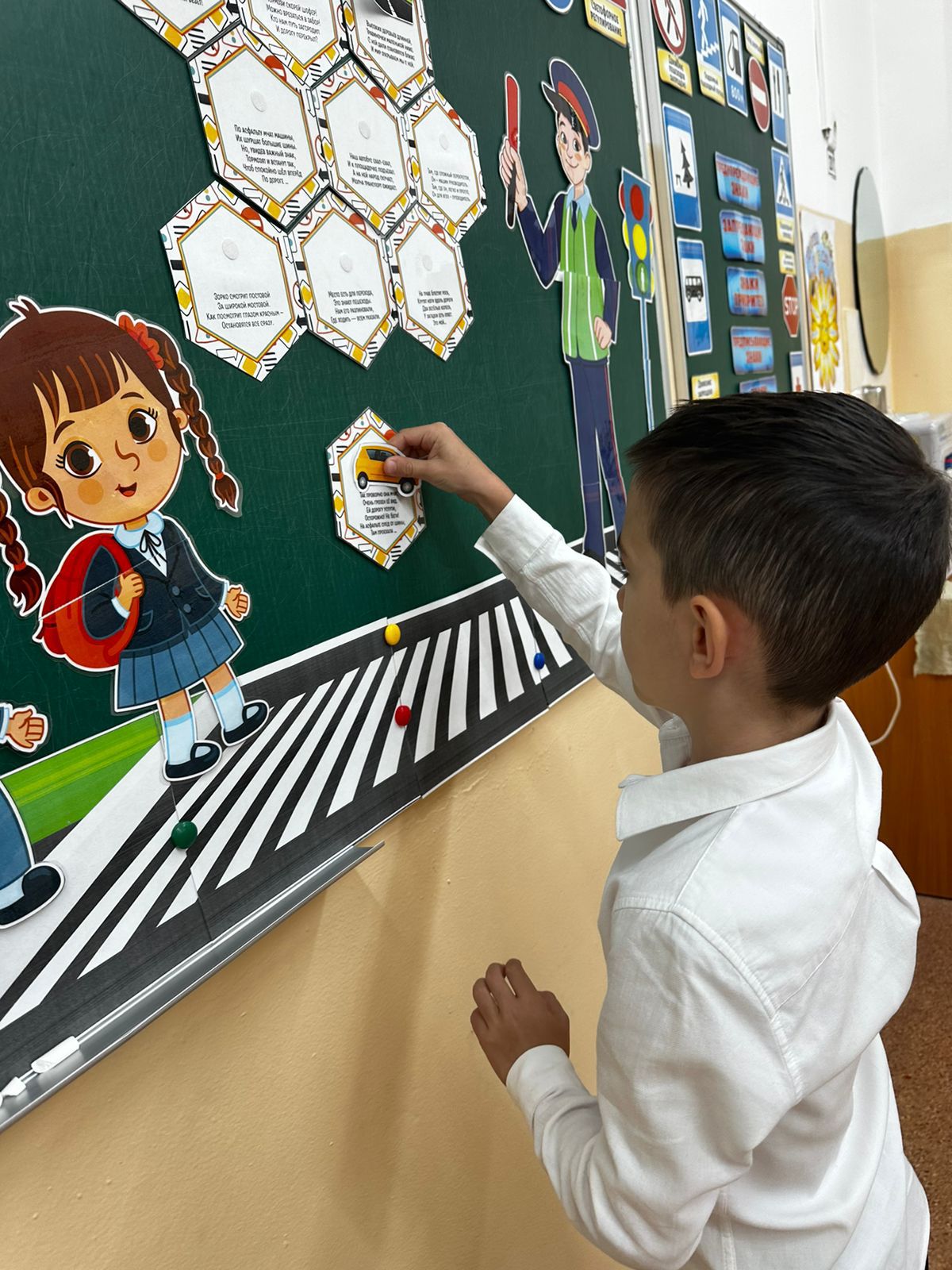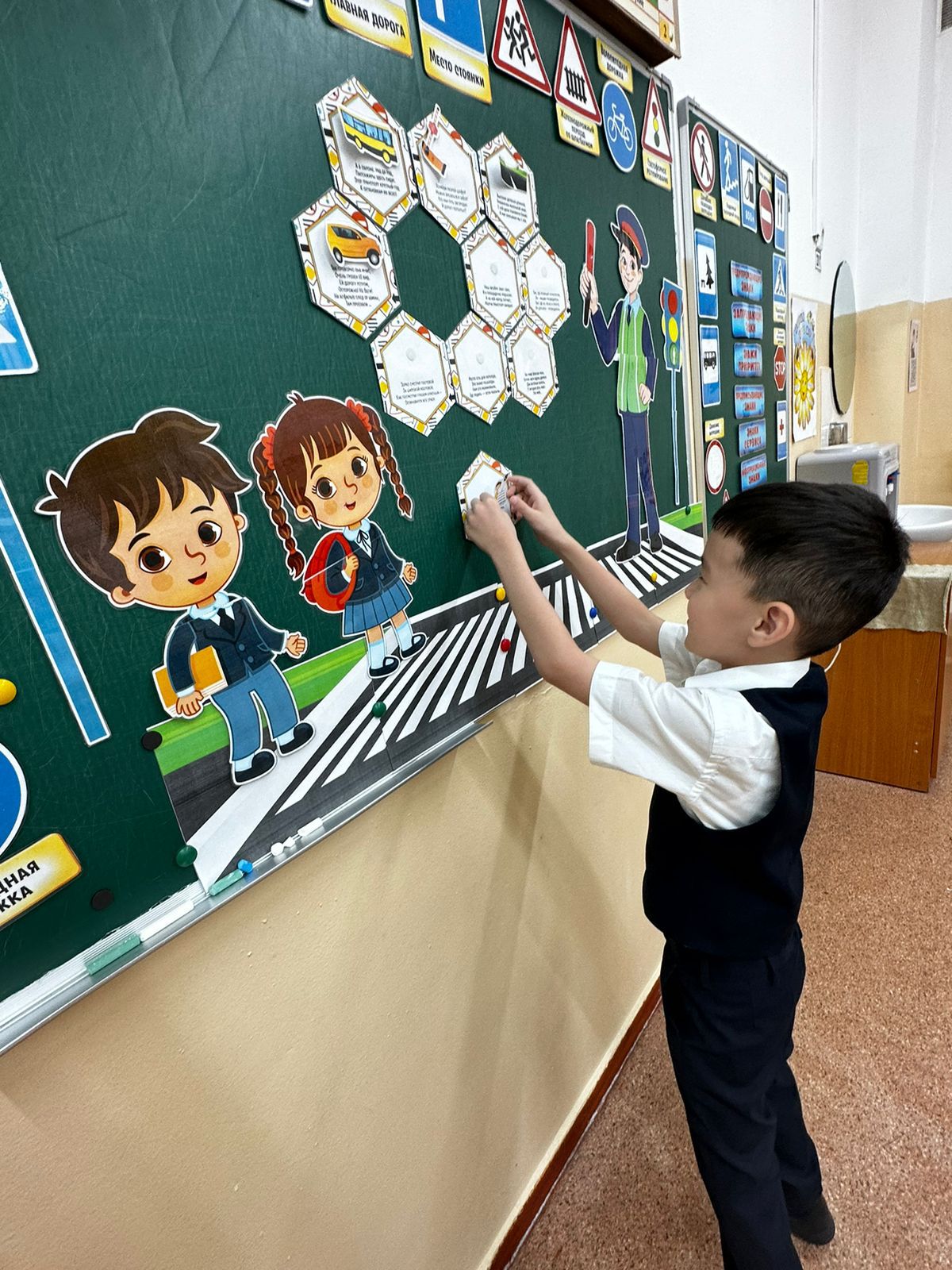 * Балалар негізгі жол белгілерімен 🚦 және жаяу жүргіншілерге арналған ережелермен танысты.