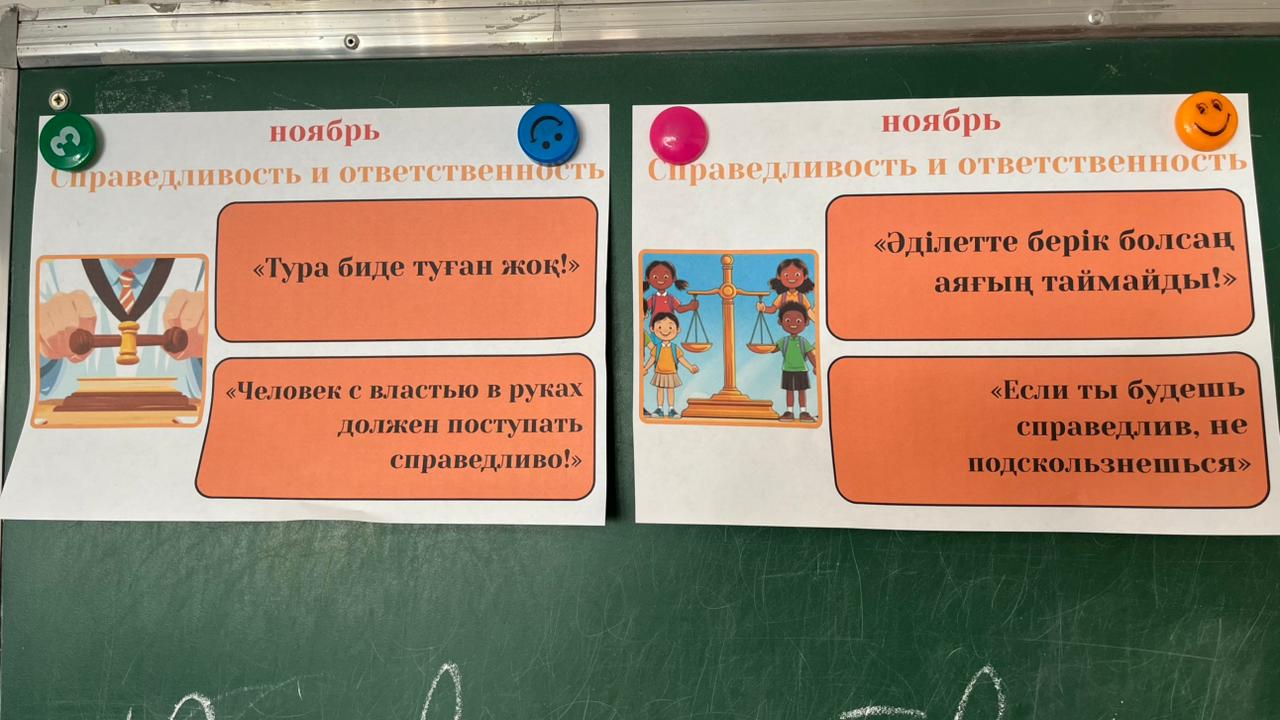 Іс-шараның мақсаты — оқушыларға адалдық, жауапкершілік және азаматтық ұстаным туралы түсінік беру, сондай-ақ дұрыс шешім қабылдаудың маңызын көрсету болды.