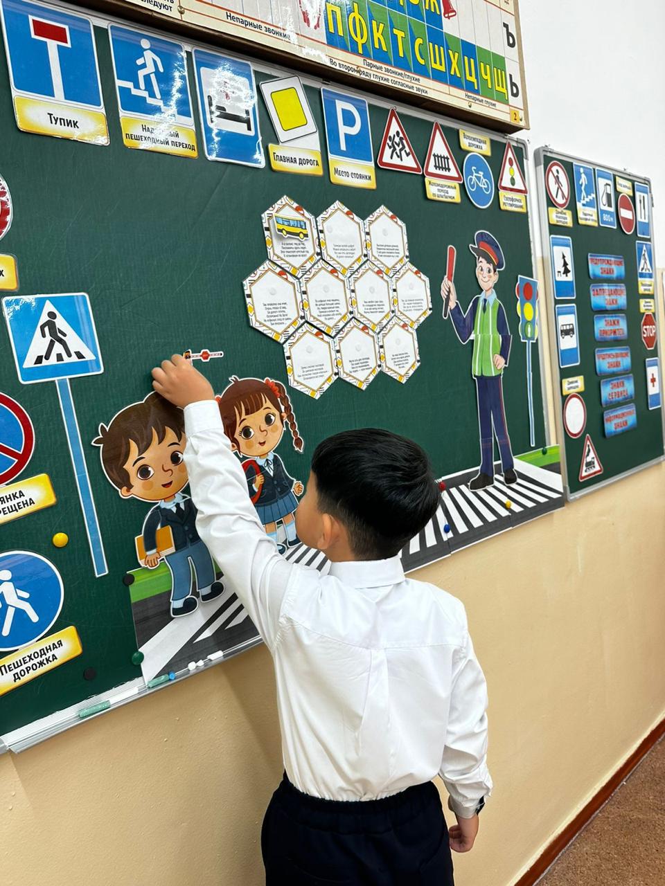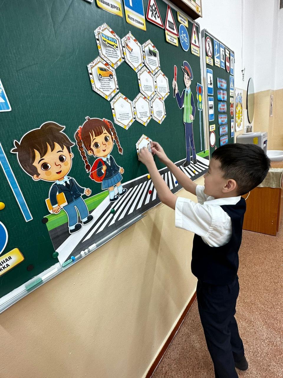 🚶♂️ Жол қозғалысы ережелері: оқушылар жол белгілерін үйреніп, жолдан қалай дұрыс өту керегін және қоғамдық көлікте қалай мінез-құлық таныту керегін меңгерді, алған білімдерін ойындар мен практикалық тапсырмалар арқылы бекітті.