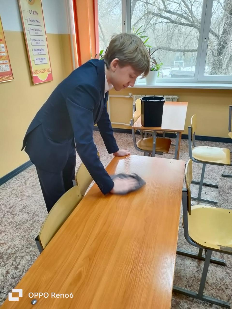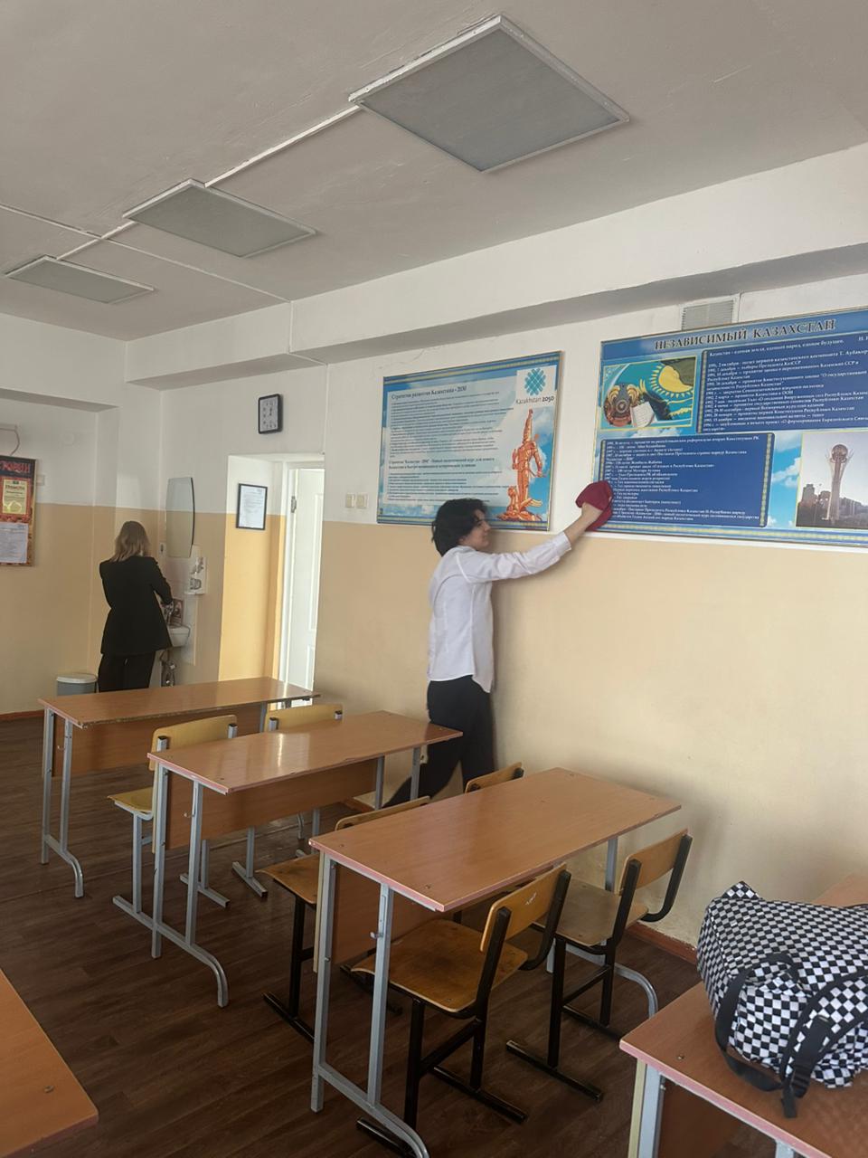 Мұғалімдер мен оқушылар бірлесіп кабинеттер мен дәліздерді тәртіпке келтіріп, оқу үшін жайлы және таза орта қалыптастырды.